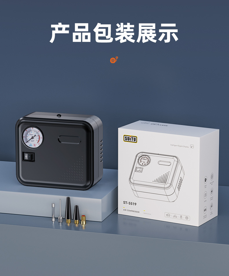 【产品包装清单】:主机1个,充气嘴4件套,说明书1份,彩盒1个