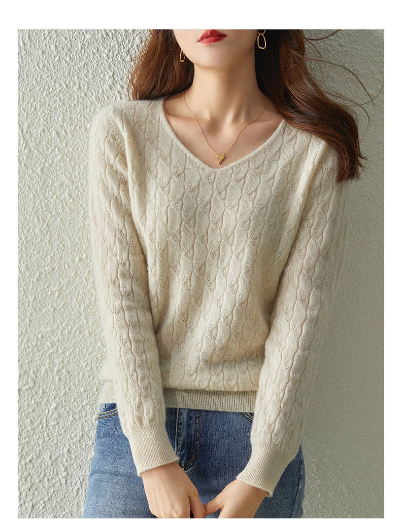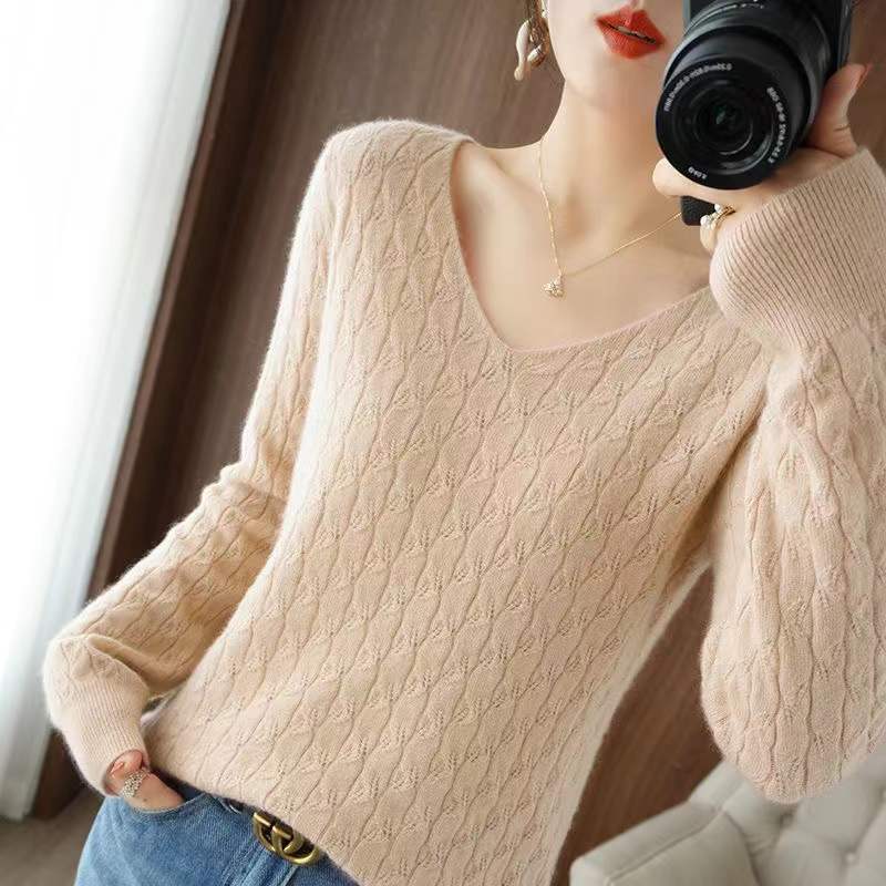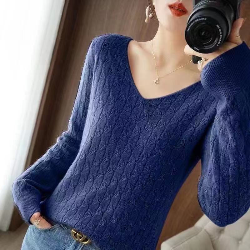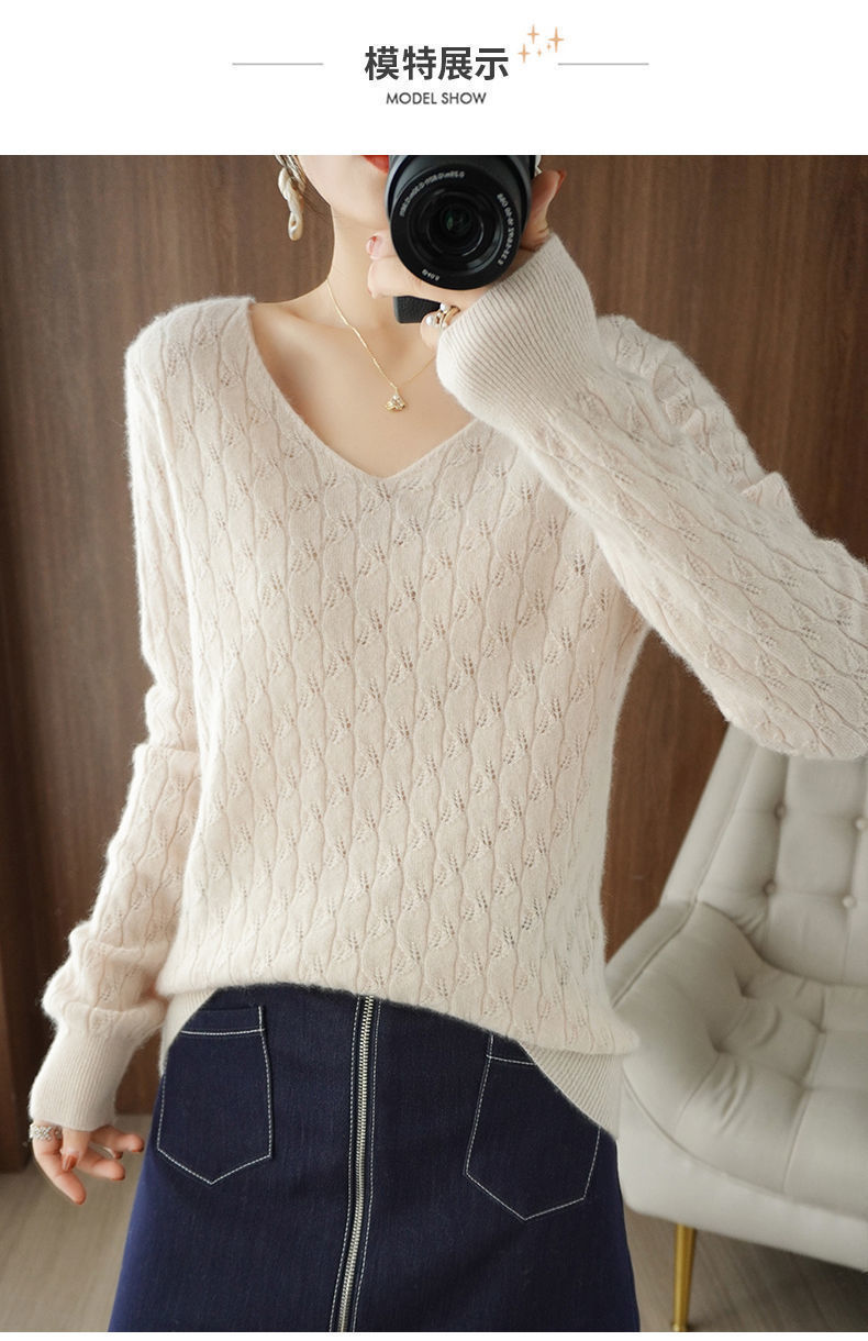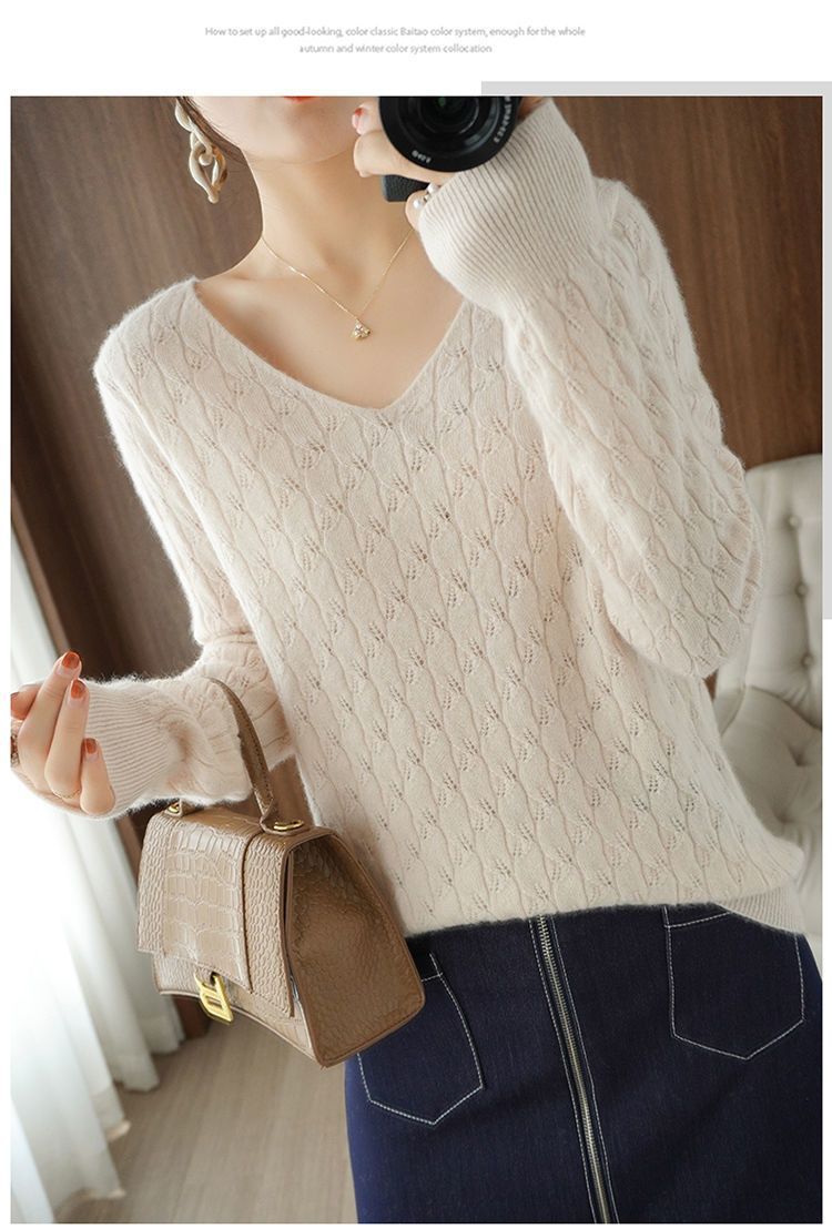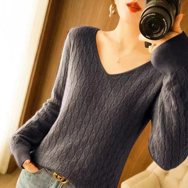 Иностранный свободный вязаный свитер с V-образным вырезом женский тонкий осенний и зимний темперамент