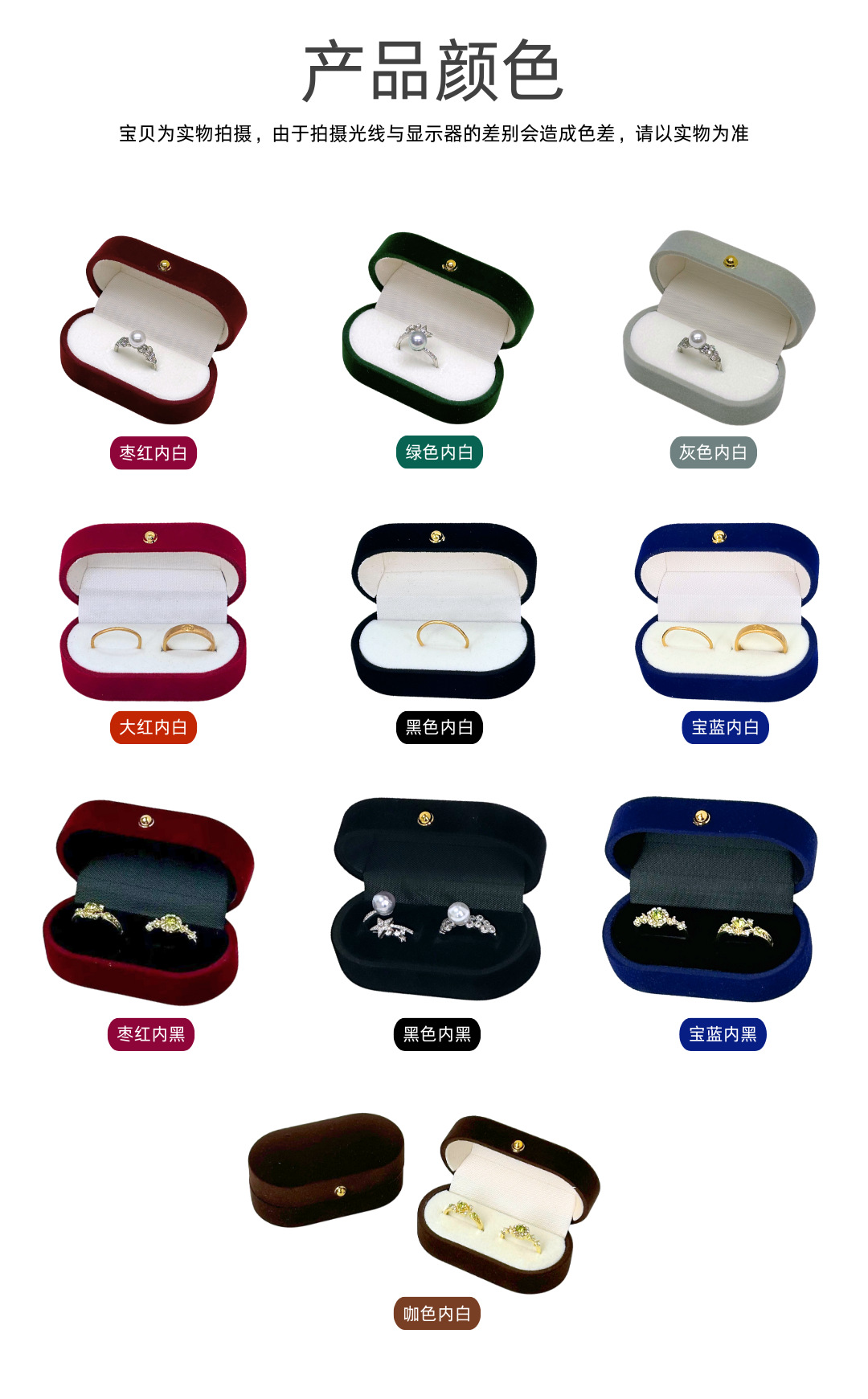 Серая коробка для одного кольца; Серая коробка с двойным кольцом; Светло-серая коробка с одним кольцом; Светло-серая коробка с двойным кольцом; Зеленая коробка с одним кольцом; Зеленая коробка с двойным кольцом; Коричневая коробочка для одного кольца; Коричневая коробка с двумя кольцами; Большая красная коробочка для одного кольца; Большая красная коробочка с двойным кольцом; Черный интерьер Черный - Коробка с одним кольцом; Черный интерьер Черный - Коробка с двойным кольцом; Черный интерьер, белый экстерьер — Коробка с одним кольцом; Черный интерьер, белый экстерьер — коробка с двумя кольцами.; Темно-синяя внутренняя черная коробка с одним кольцом; Темно-синяя внутренняя коробка с двойным кольцом черного цвета; Темно-кофейная коробочка с одним кольцом; Темно-кофейная коробочка с двойным кольцом; Коричнево-красная и черная коробка с одним кольцом внутри; Коричнево-красная внутри и черная коробка с двойным кольцом.