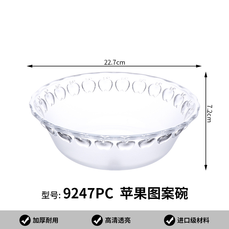 Миска для салата с рисунком яблока 22,7 см*7,2 см 9247; Миска для салатов с яблочным узором 20 см * 6,8 см 9248; Миска для салатов с яблочным узором 17см*6,2см 9249