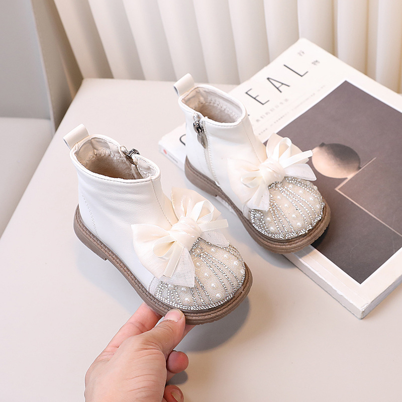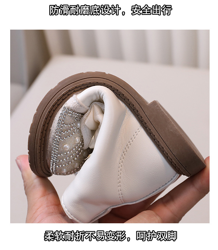 Принцесса сапоги для девочек 2024 осень-зима новые детские сапоги Мартин девушка короткие кожаные сапоги противоскользящие и бархат теплые два хлопка