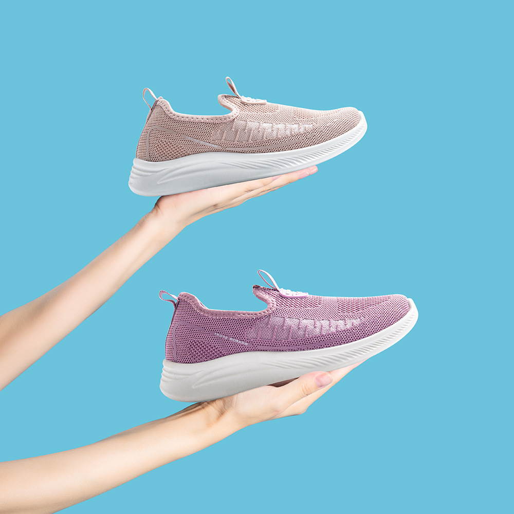 2024 Осень дышащая пожилая мама обувь летающая ходка обувь трансграничная мягкая подошва досуг один педаль обувь женщина
