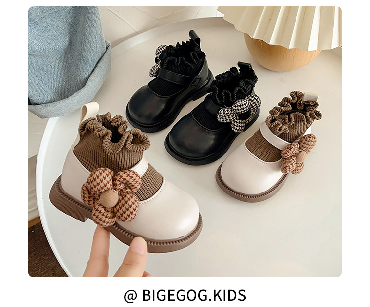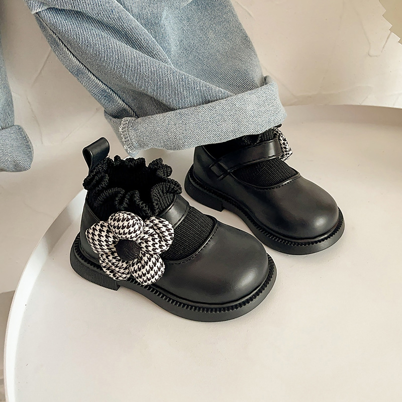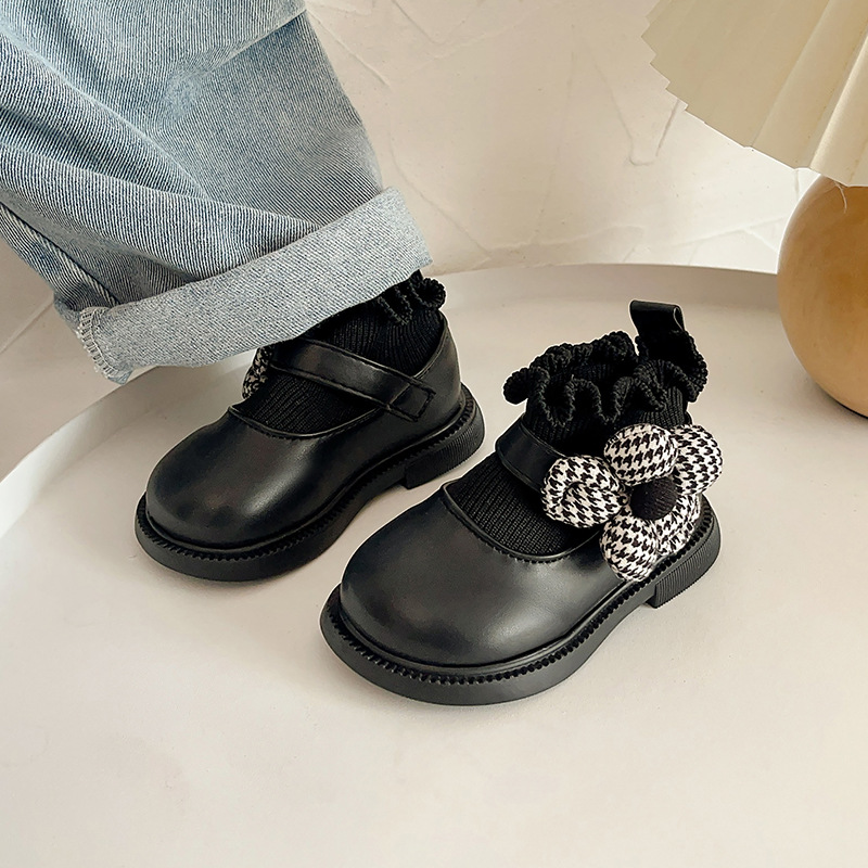 Корейская детская обувь 2024 для девочек осень новая манера ретро кожаная обувь детская повседневная кожаная обувь одиночная обувь бобовая обувь