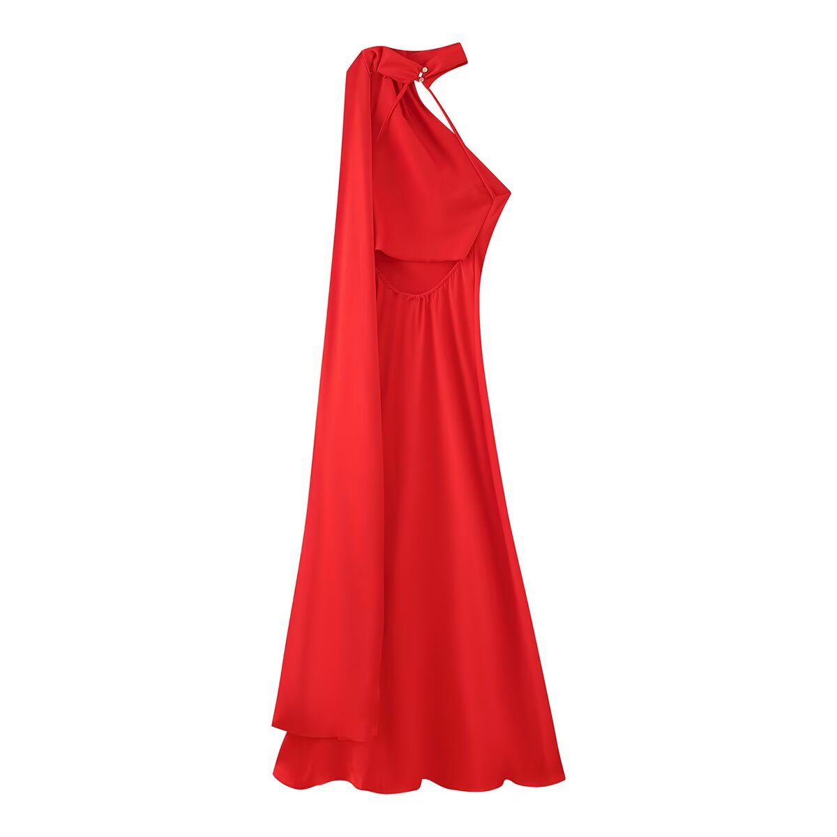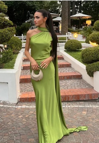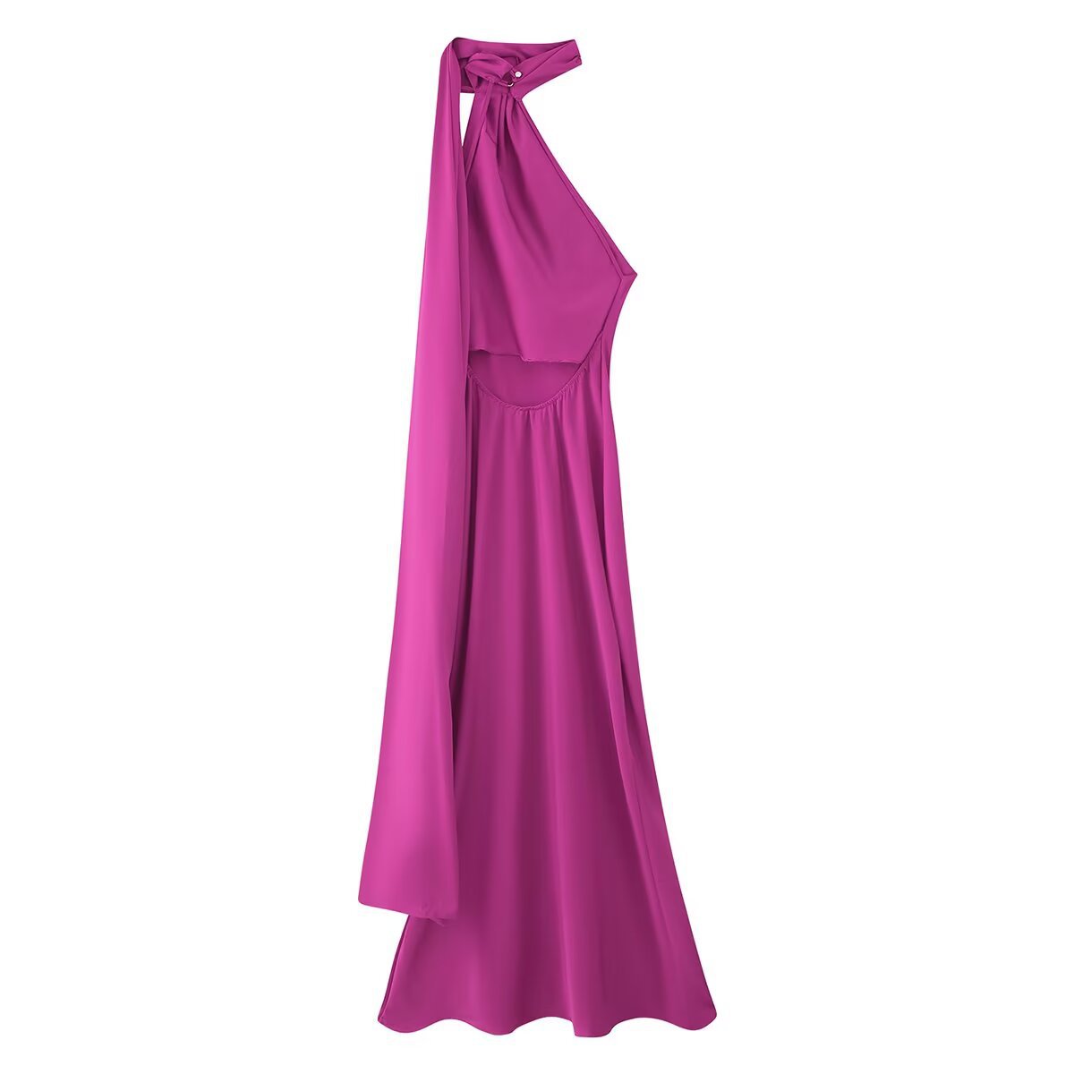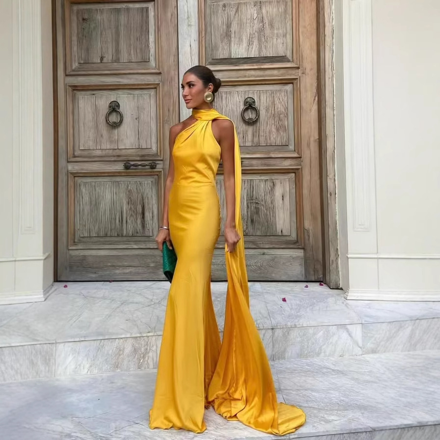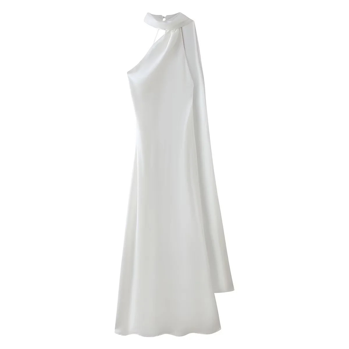 Трансграничная европейская и американская женская одежда AliExpress взрывное шелковое атласное платье с шеей
