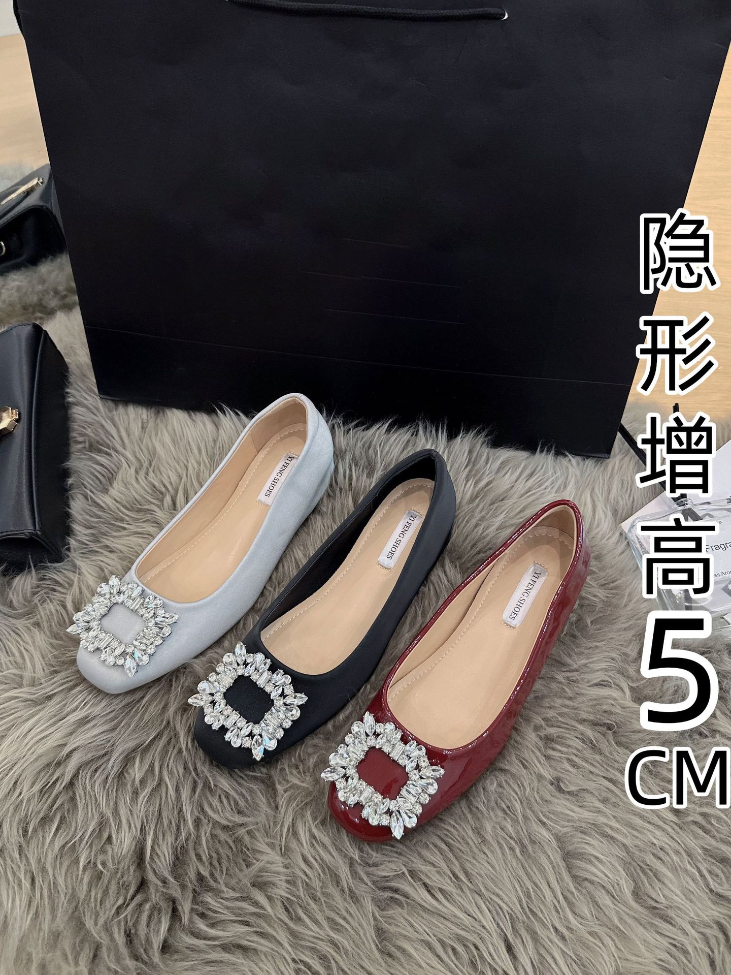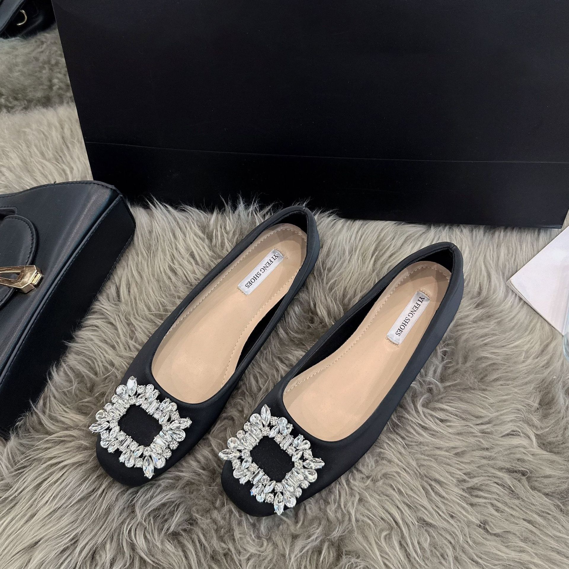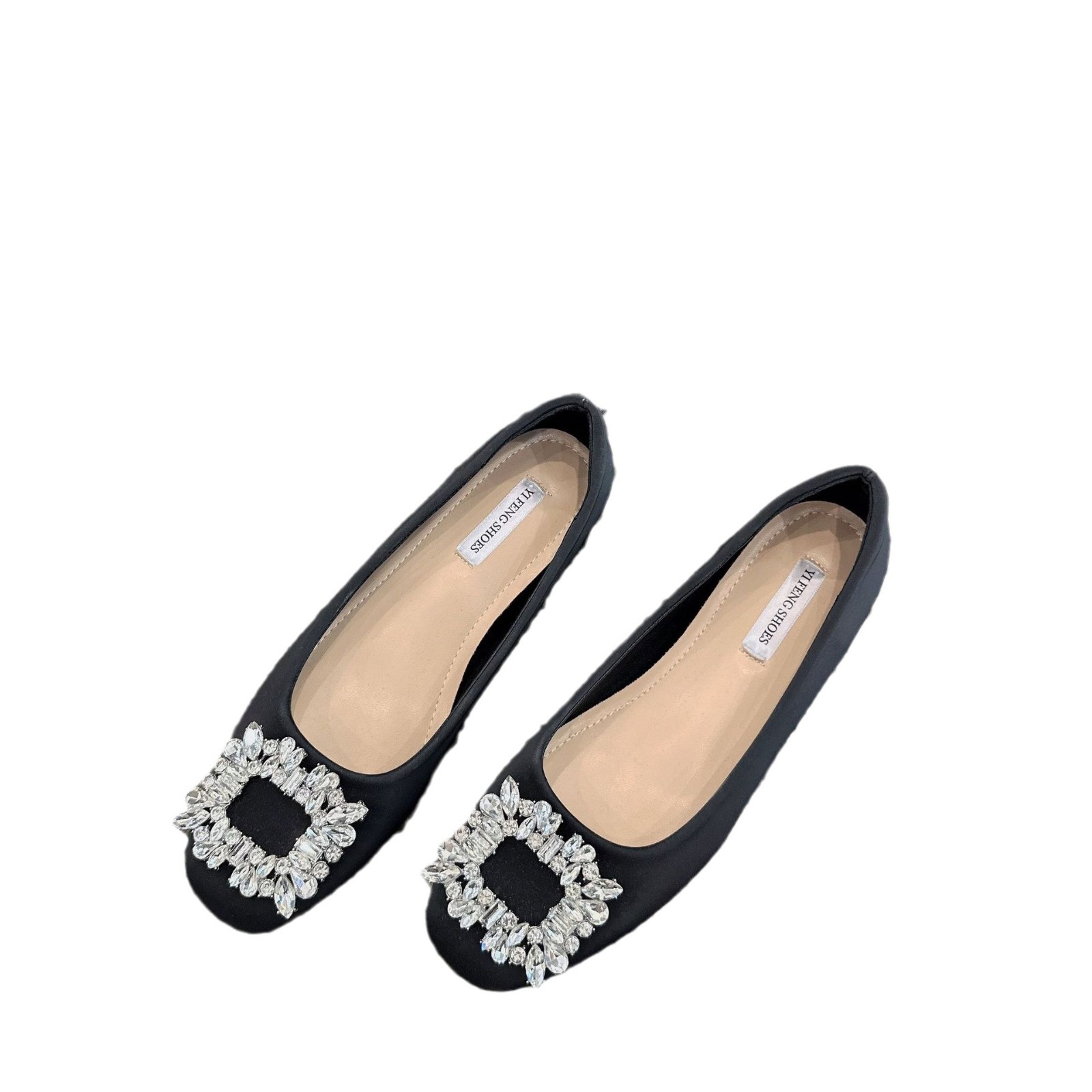 Маленькие женские туфли увеличены внутри, французские бриллианты, атласные одиночные туфли, женские пригородные темпераменты, французские мягкие одиночные туфли