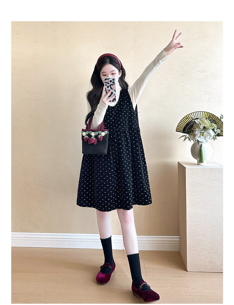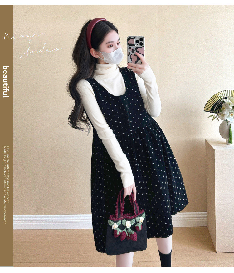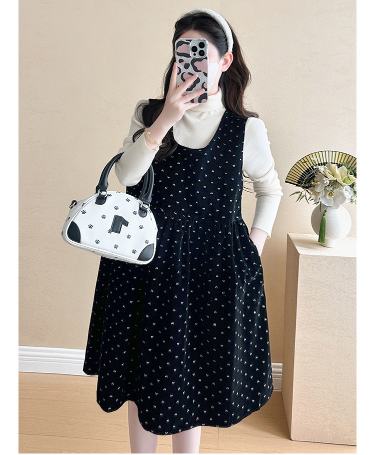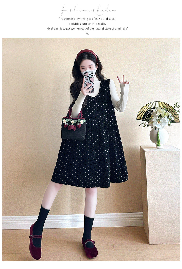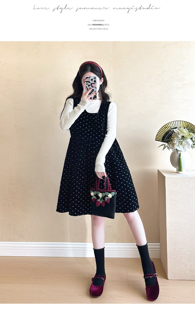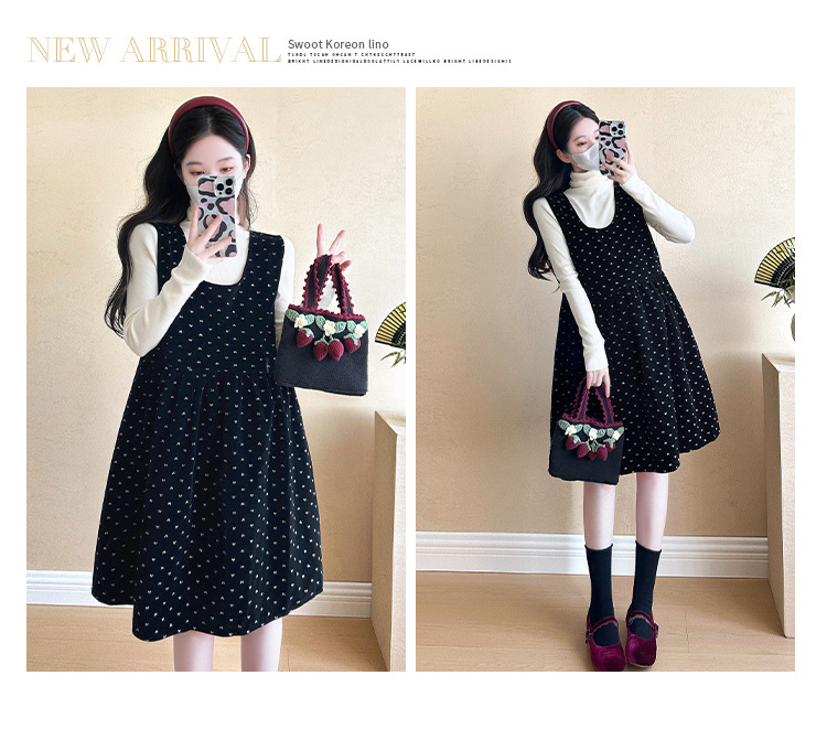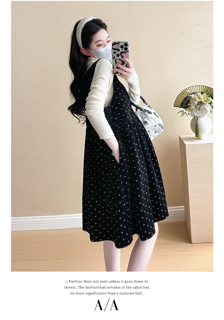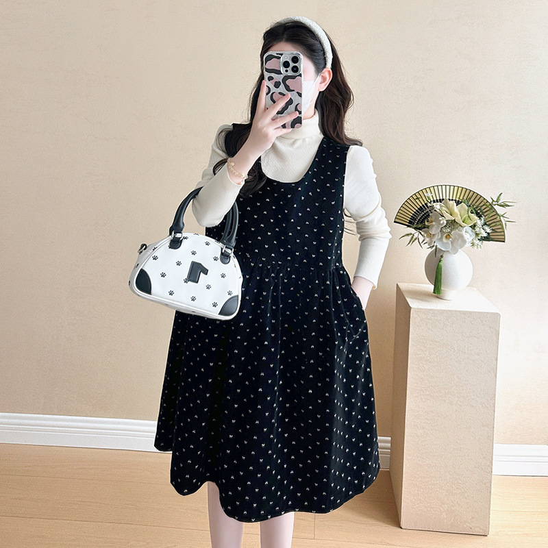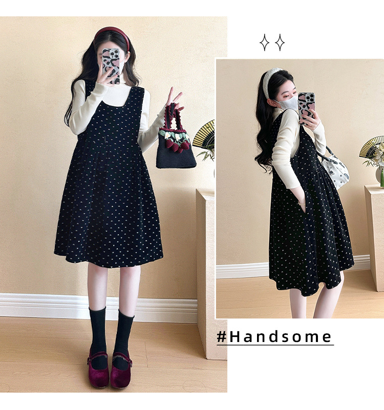 В наличии! Реальные фото: комплект для беременных в стиле Chanel на осень 2025 – блестящая бархатная юбка на бретелях + базовый свитер.