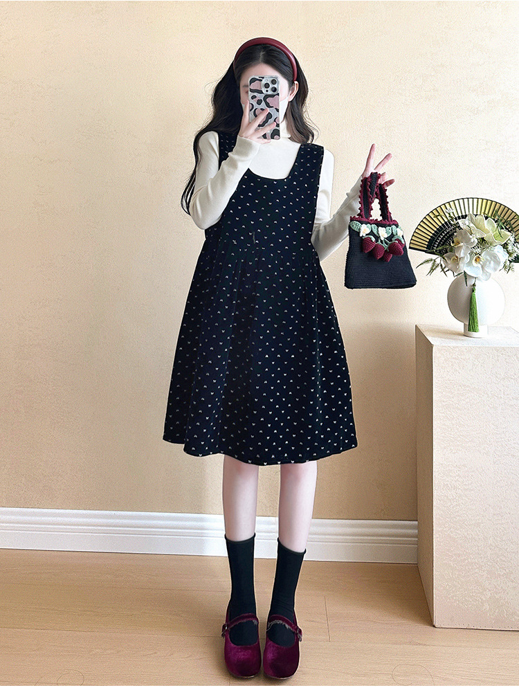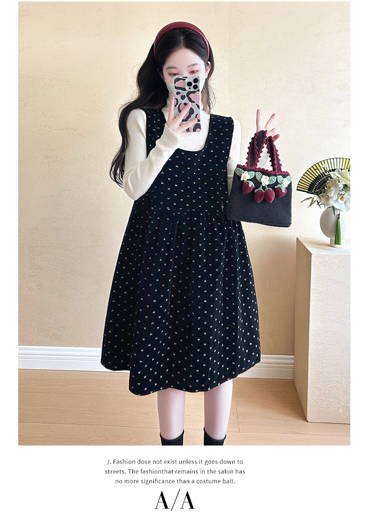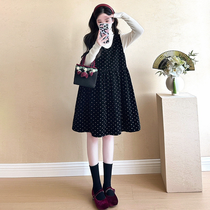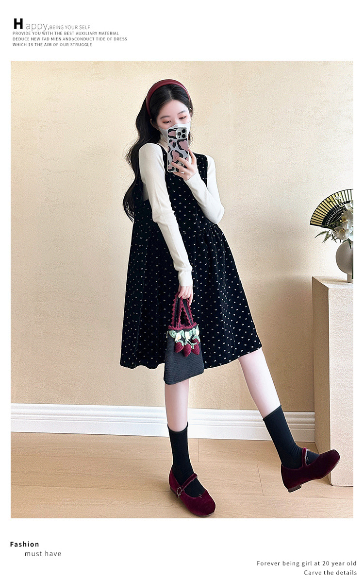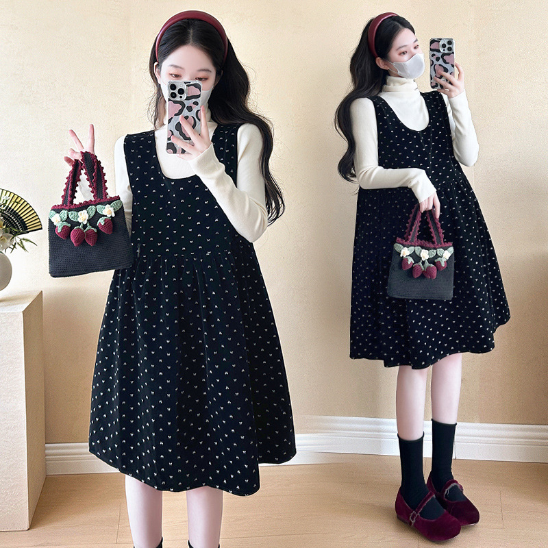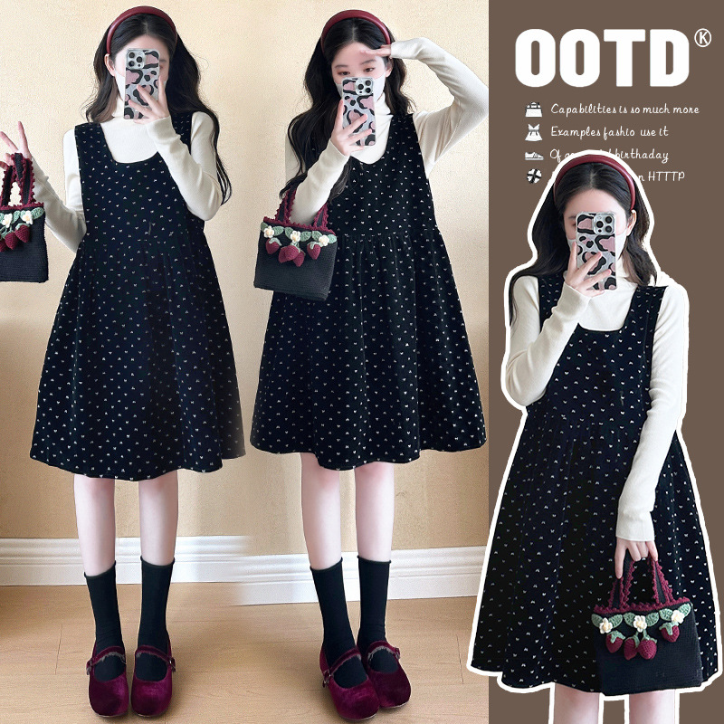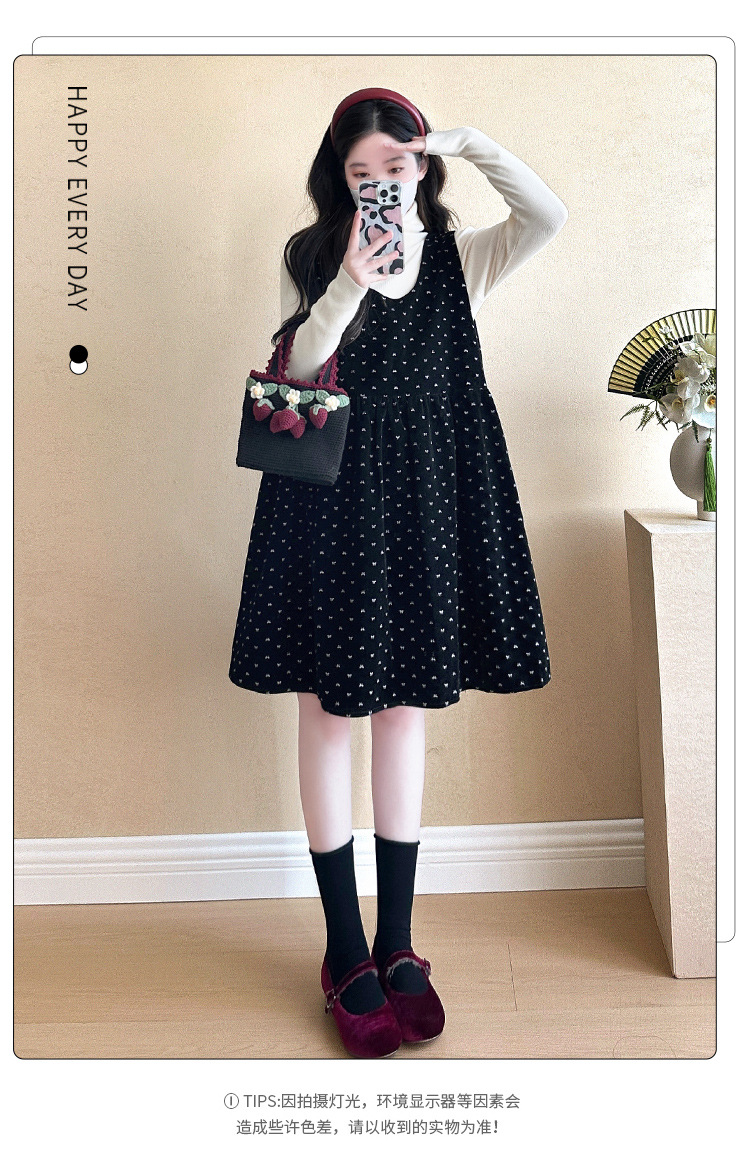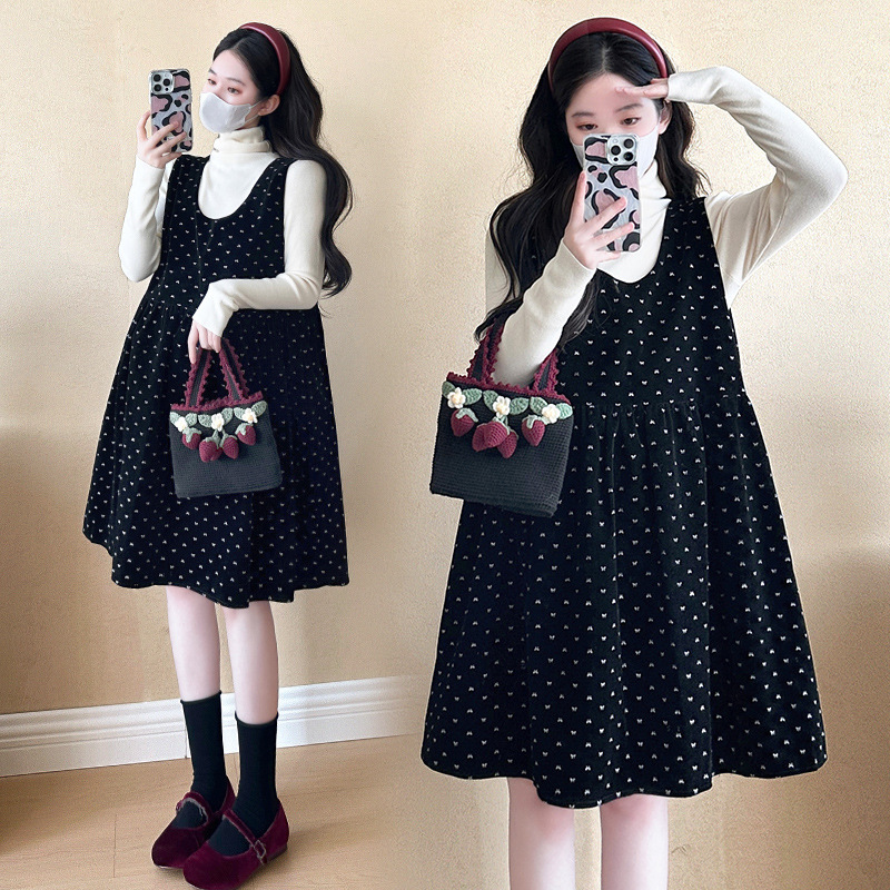 В наличии! Реальные фото: комплект для беременных в стиле Chanel на осень 2025 – блестящая бархатная юбка на бретелях + базовый свитер.