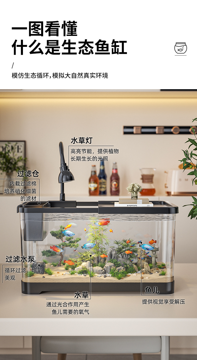 Широкий фильтр аквариум для домашнего домашнего небольшого экологического ландшафта