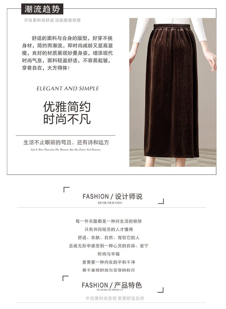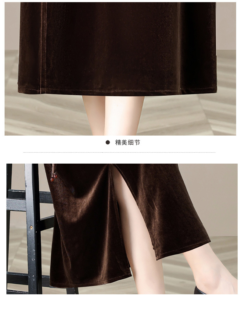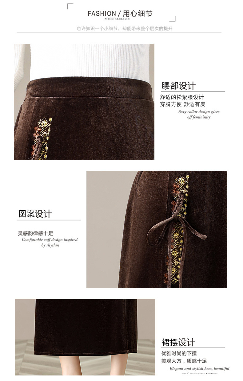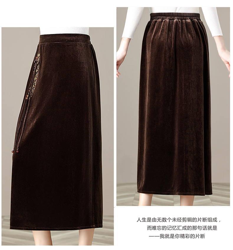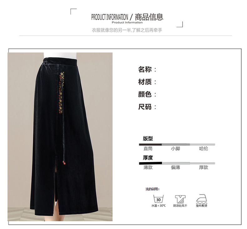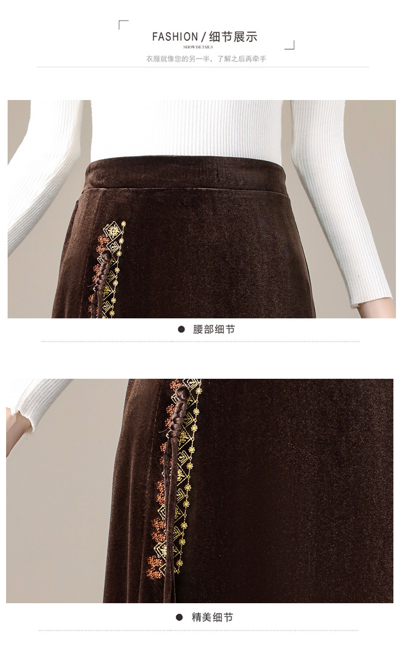 Новый китайский стиль ретро с открытой вилкой юбка среднего возраста мама темперамент вышитая золотая бархатная юбка с высокой талией