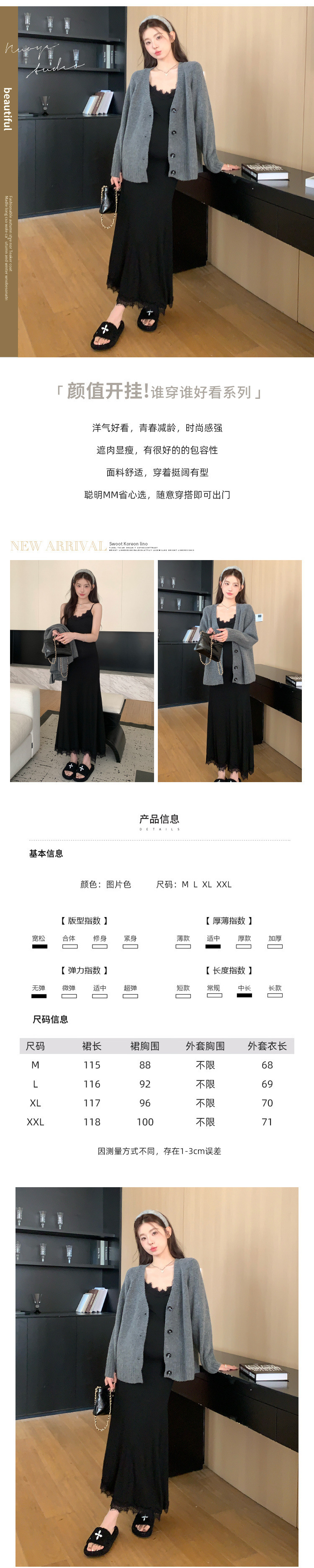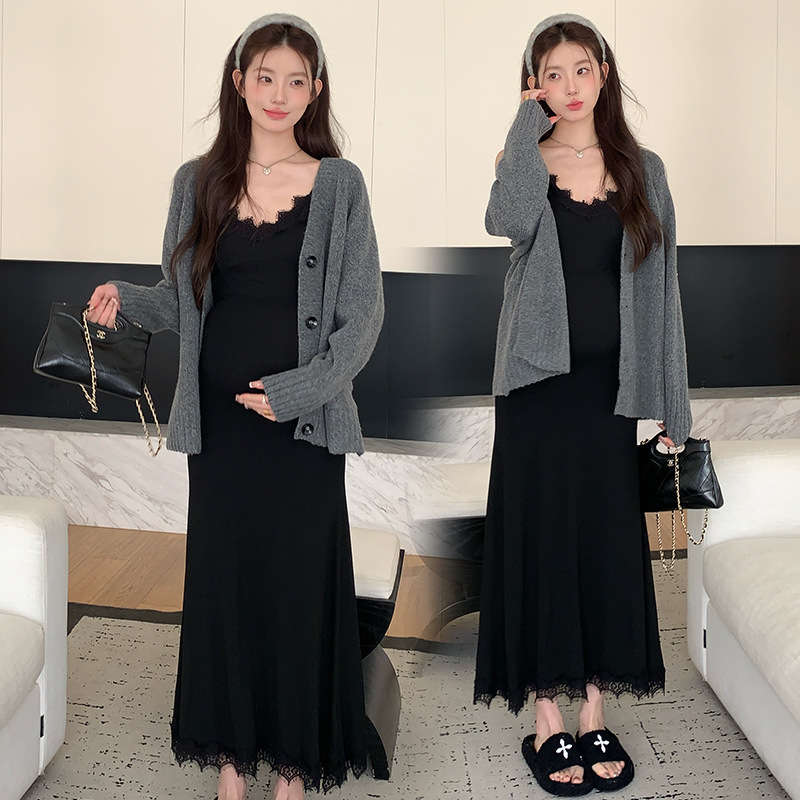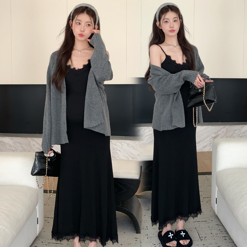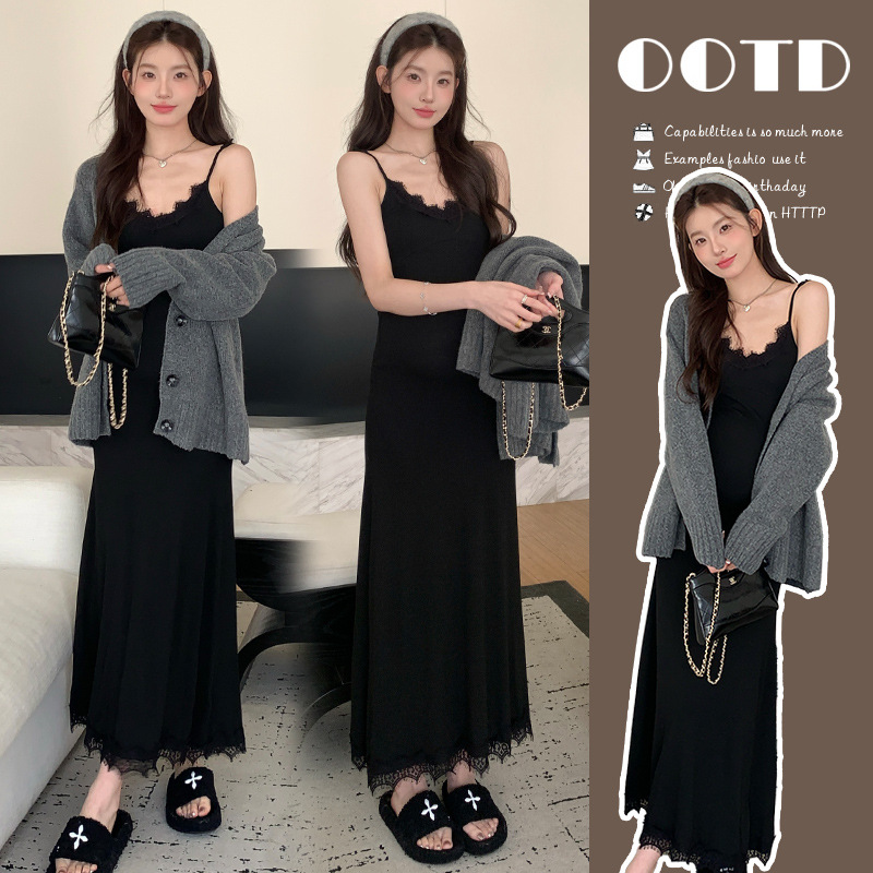 Снимок спот ~ 2024 осенний и зимний набор корейская мода эластичная кружевная подтяжка свитер куртка из двух частей