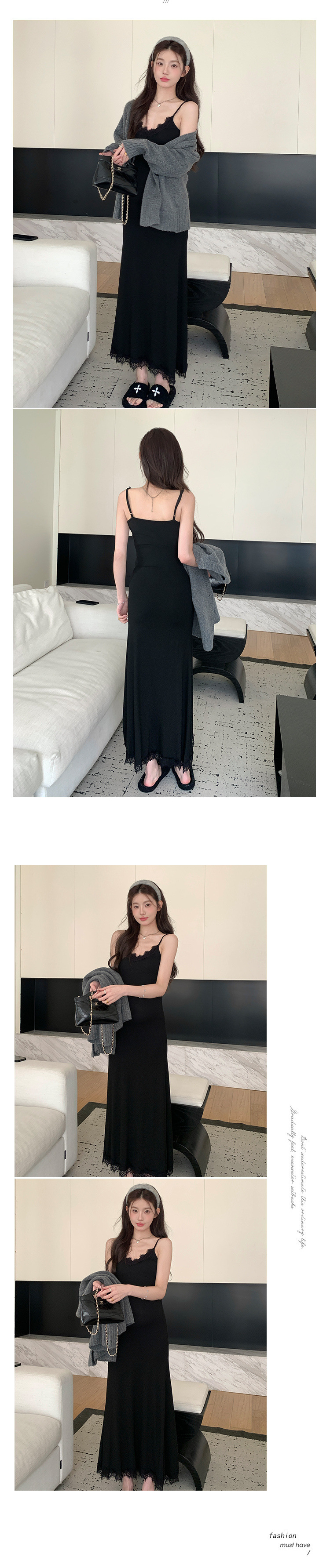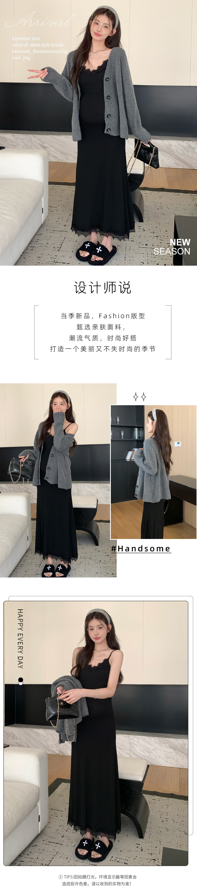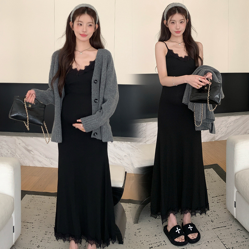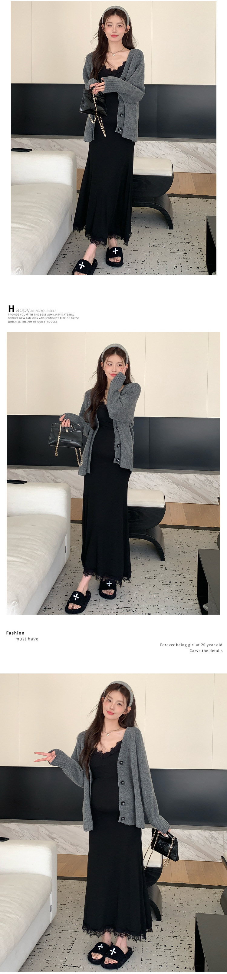 Снимок спот ~ 2024 осенний и зимний набор корейская мода эластичная кружевная подтяжка свитер куртка из двух частей
