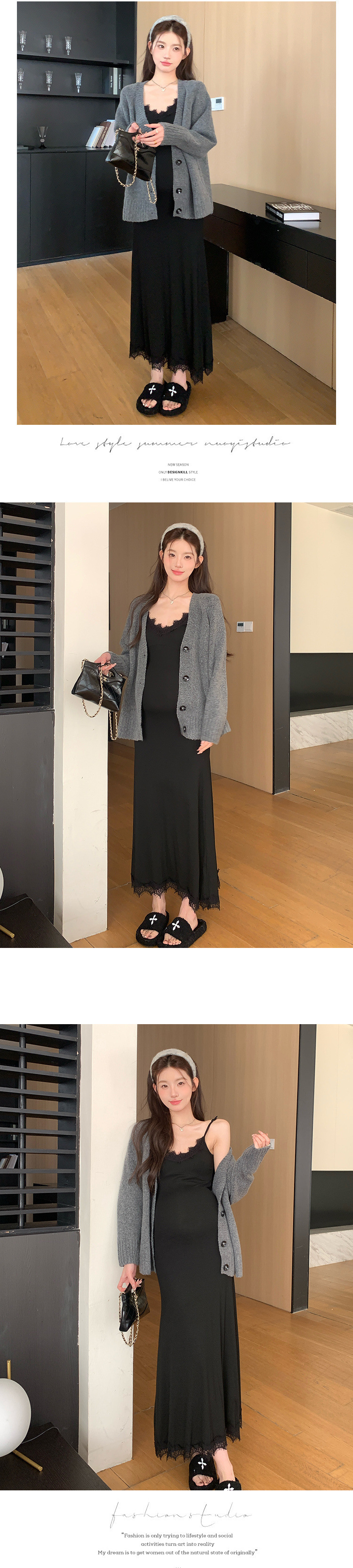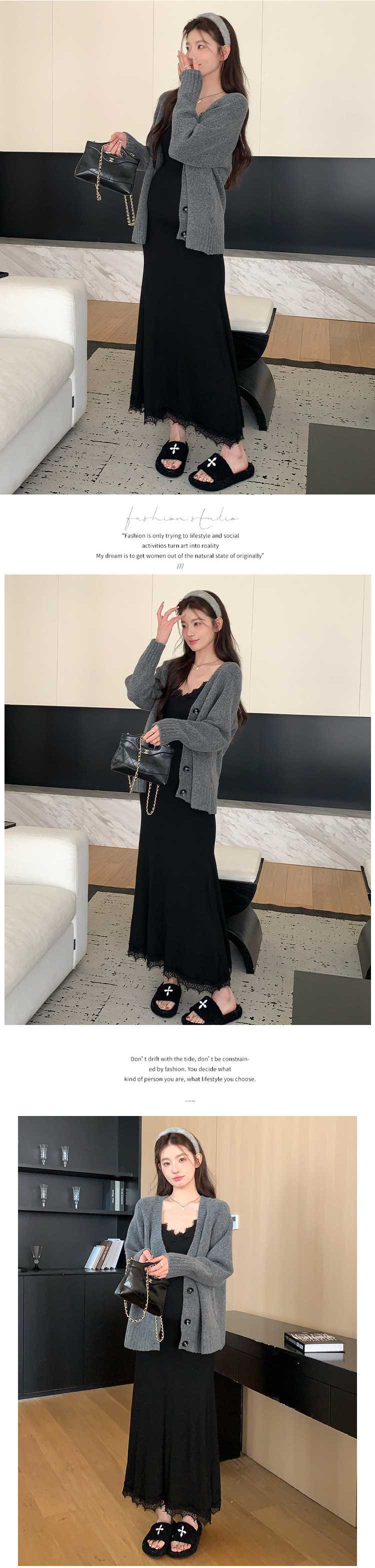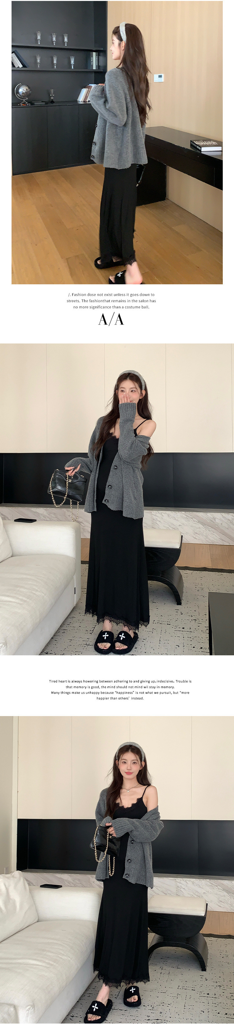 черная юбка на подтяжках; Серый свитер-кардиган; Серый свитер-кардиган + черная юбка на подтяжках.