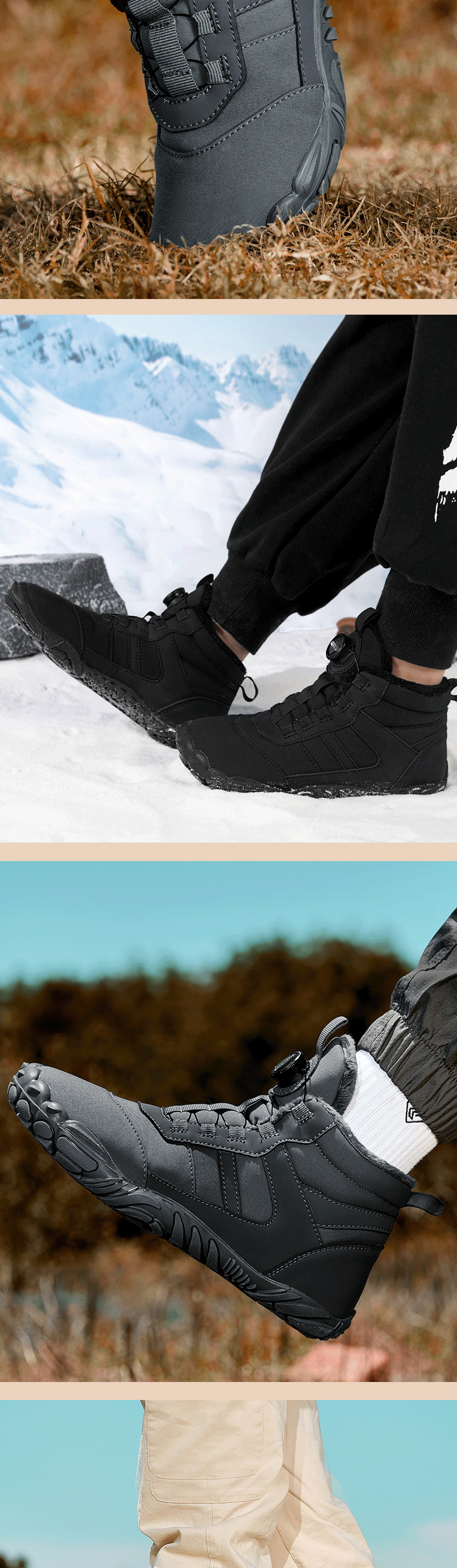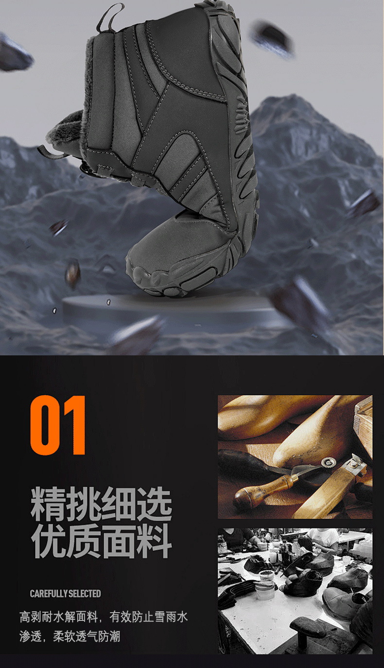 Трансграничная наружная обувь для походов с пятью пальцами пара плюс бархатные теплые хлопчатобумажные ботинки водонепроницаемые противоскользящие вращающиеся ботинки для детей