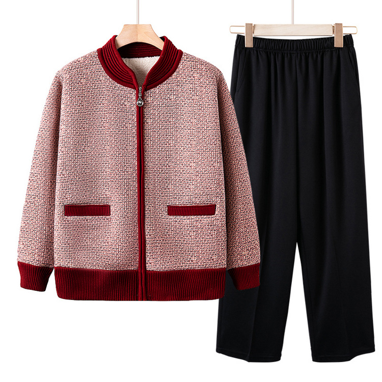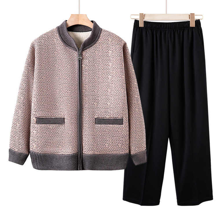 Средние и пожилые люди осенью и зимой плюс бархатный толстый свитер набор бабушка новый кардиган пальто мама осенний вязаный свитер