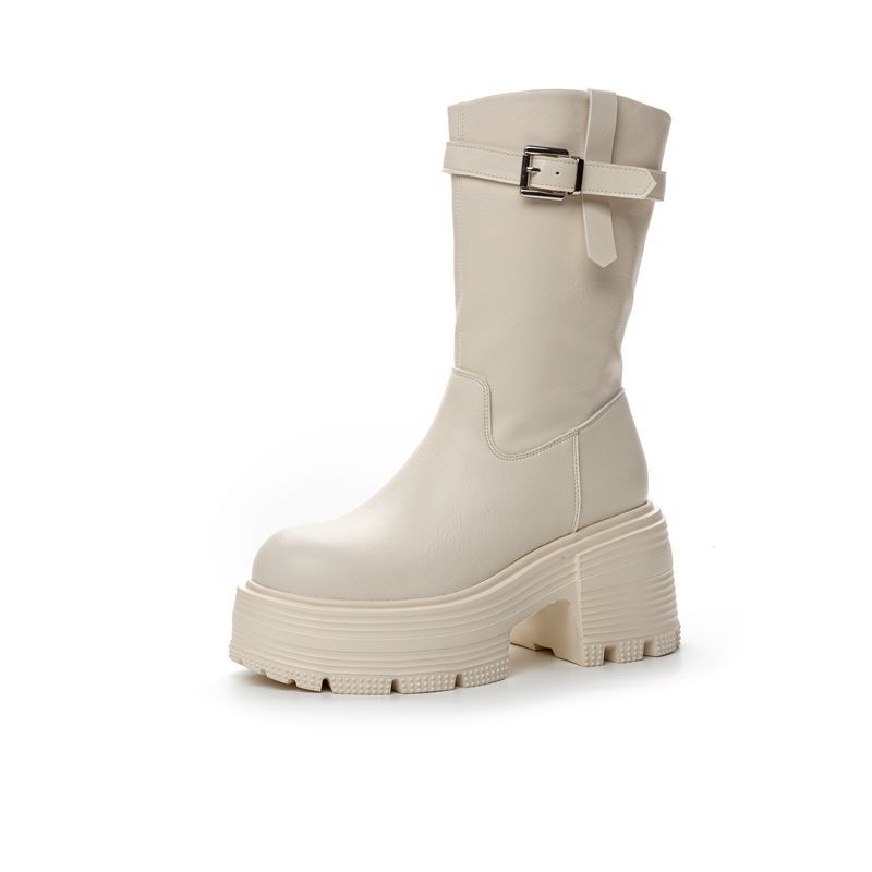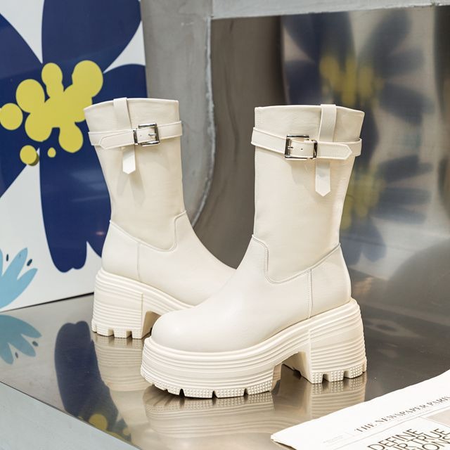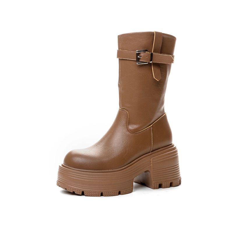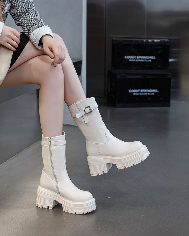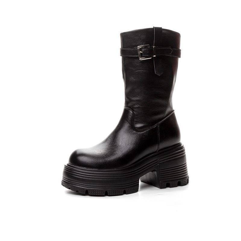 Толстые женские ботинки с высоким каблуком и толстой подошвы