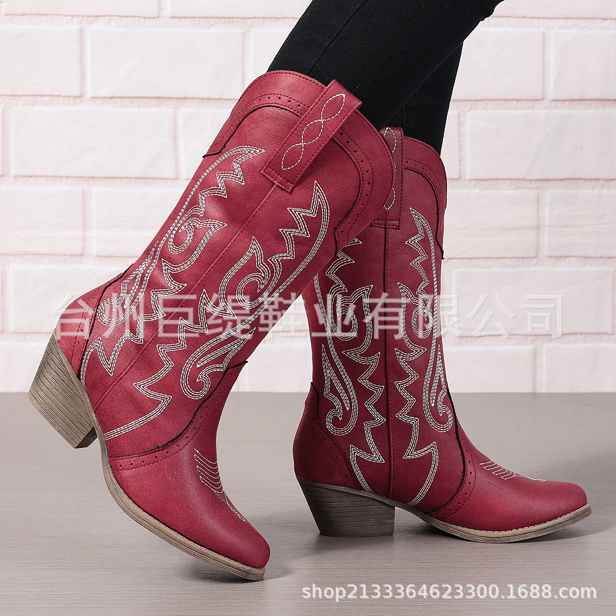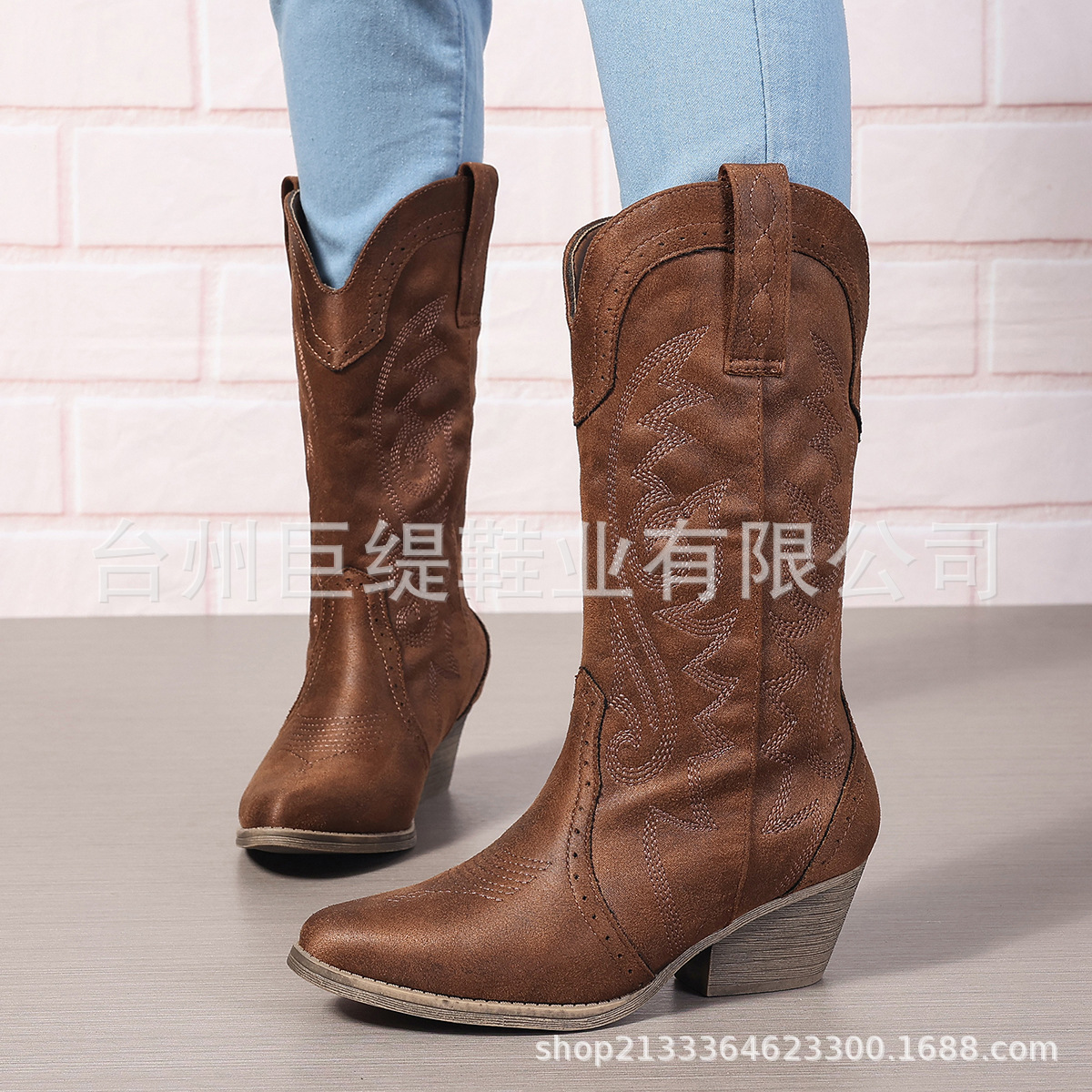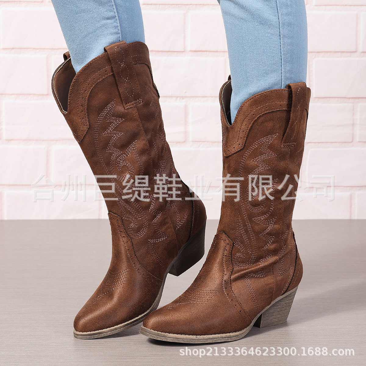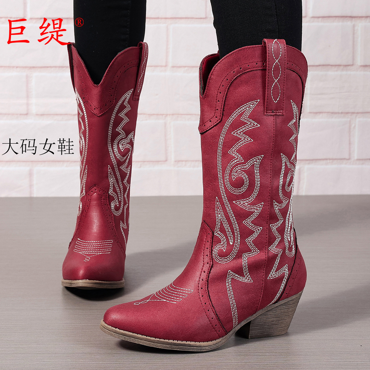 Женские кожаные ботинки Juti Export 2024, новая модель, европейский и американский экспорт, ботинки средней высоты, низкий каблук, большие размеры.