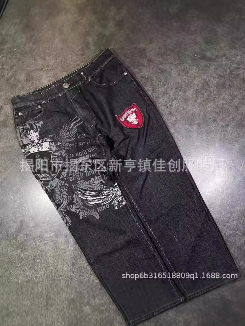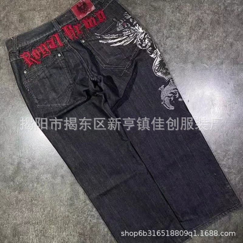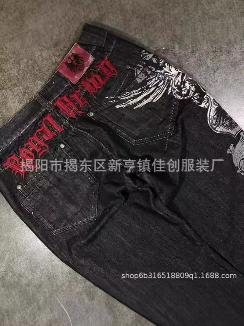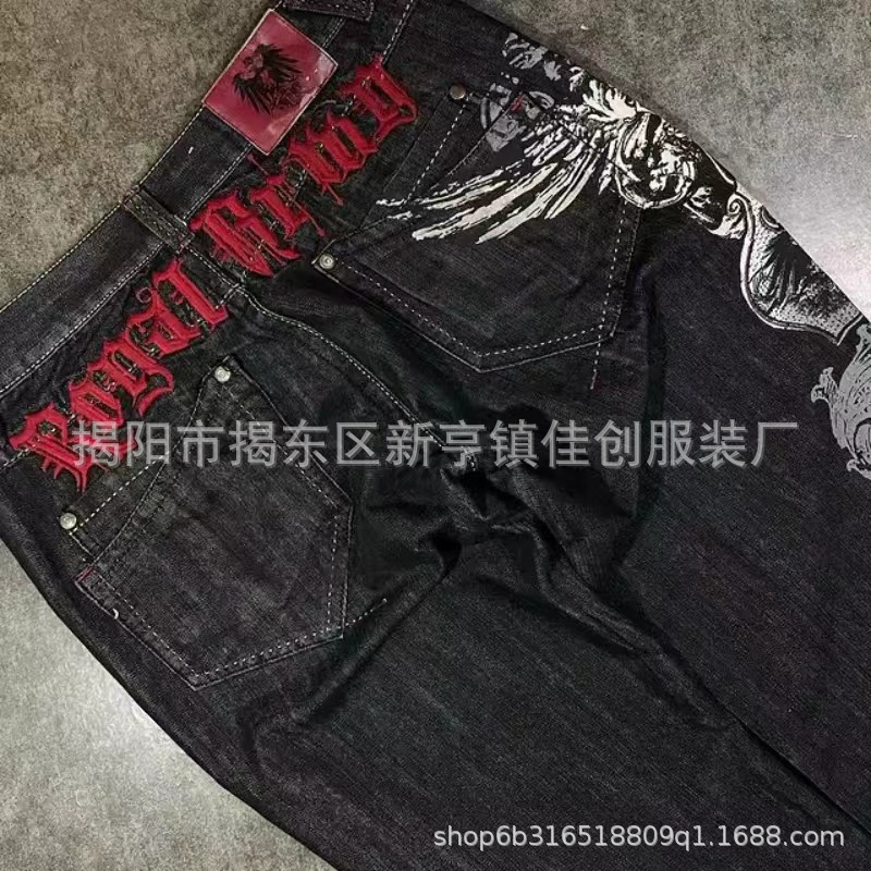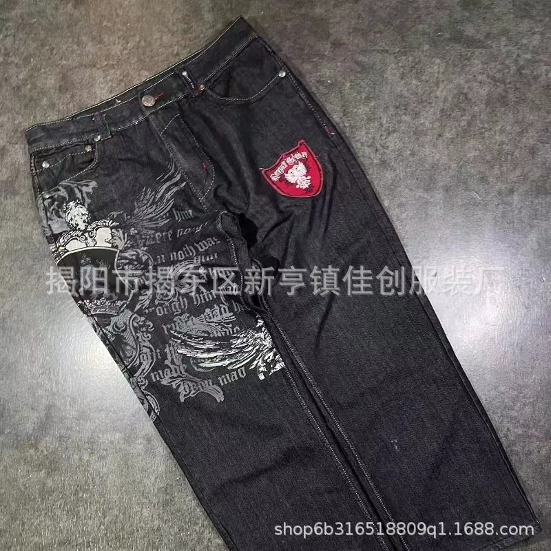 2024 трансграничные новые джинсы с вышитой тканью для мужчин и женщин американский ретро мойки свободные прямые джинсы