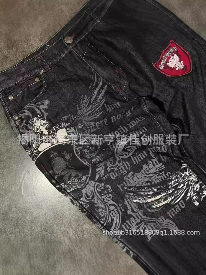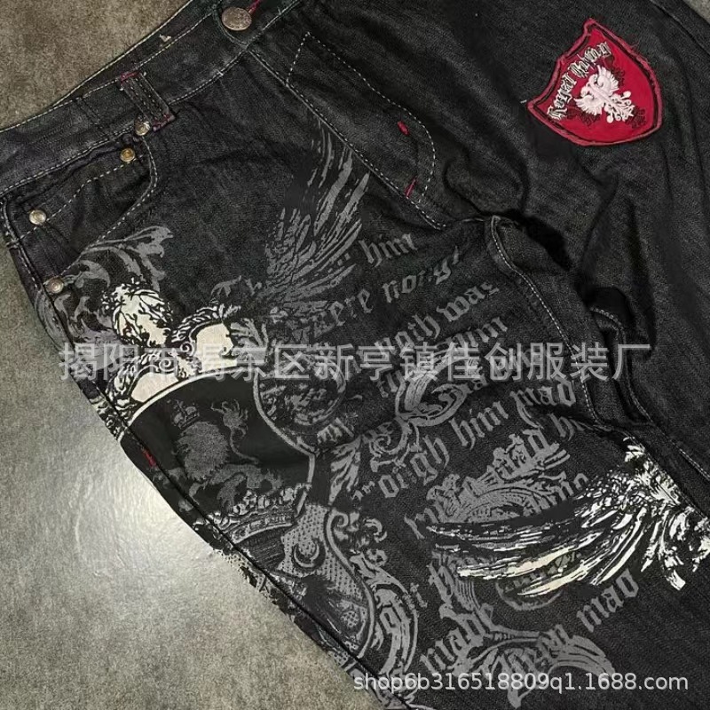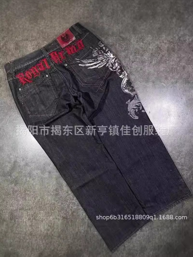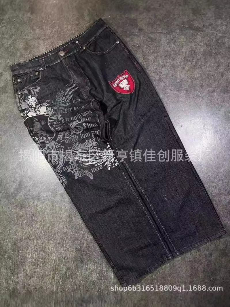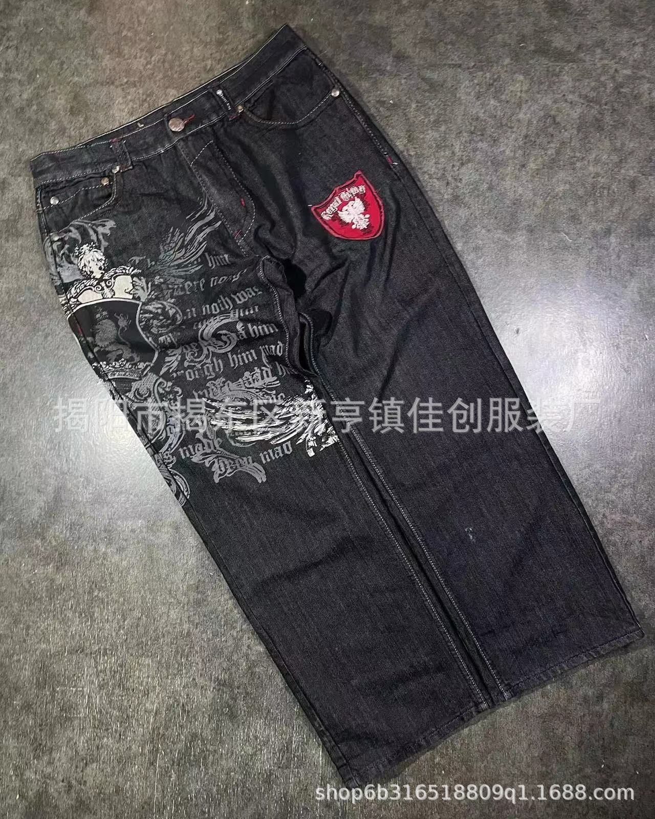 2024 трансграничные новые джинсы с вышитой тканью для мужчин и женщин американский ретро мойки свободные прямые джинсы