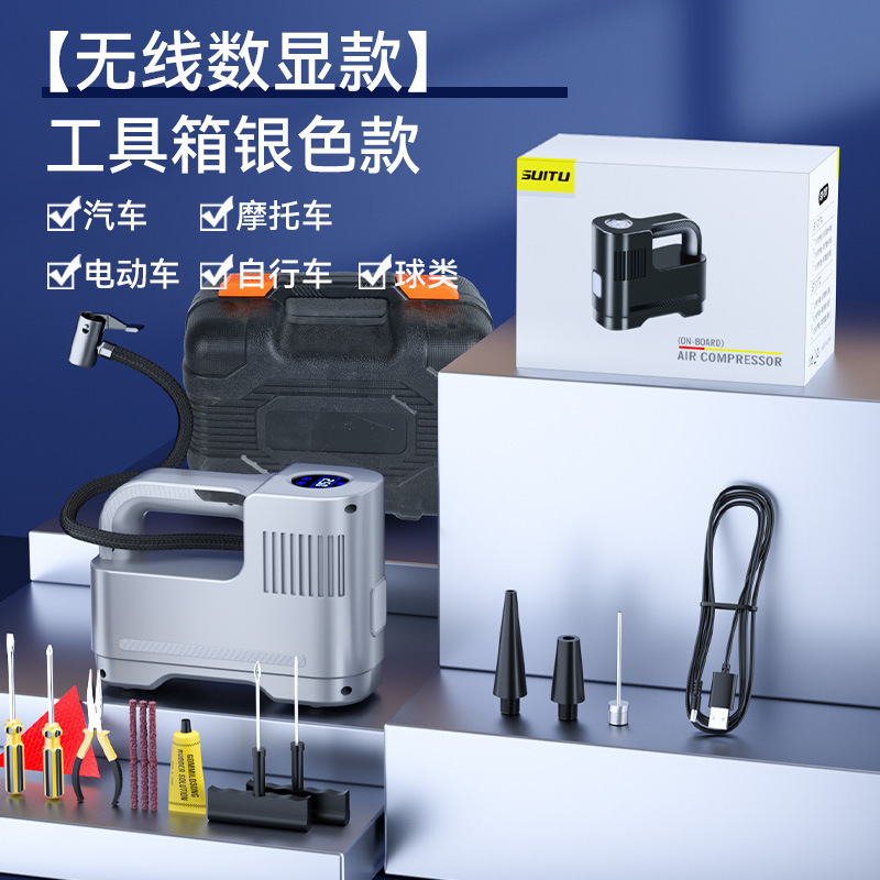 【ST-217D】12V车载充气泵-带灯数显工具箱套装(无线) 8套/箱