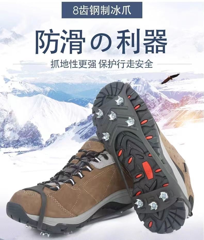 Зимние противоскользящие шипы для обуви с 8 зубцами, накладки на обувь из нержавеющей стали для льда и снега, шипы для обуви для мужчин и женщин, накладки на ноги для пожилых людей, хит продаж для международного рынка