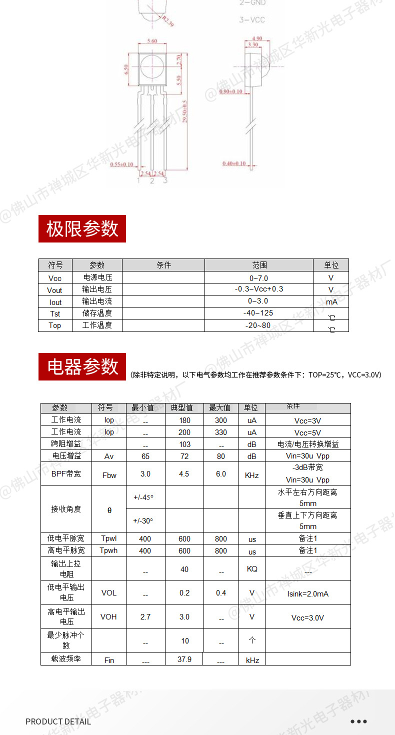 В наличии: инфракрасный приемник 0038 в индивидуальной упаковке, фоточувствительный приемник 940 нм с чувствительным сигналом для пультов ДУ телевизоров и вентиляторов