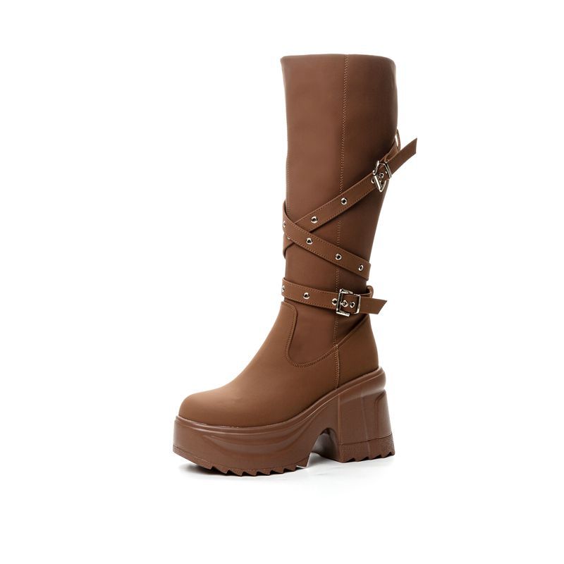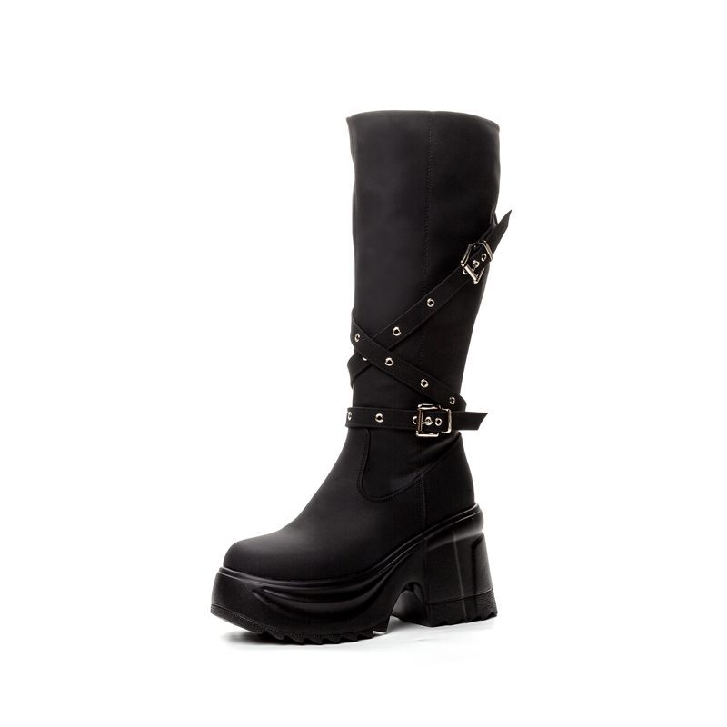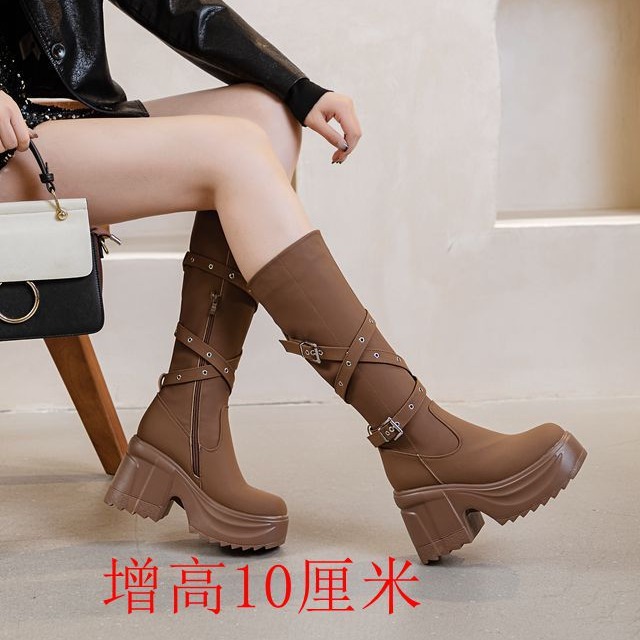 2025 новых женских ботинок на высоком каблуке, высокие сапоги до колена, рыцарские сапоги на высоком каблуке, узкие ботинки на толстой подошве, ботинки на толстом высоком каблуке