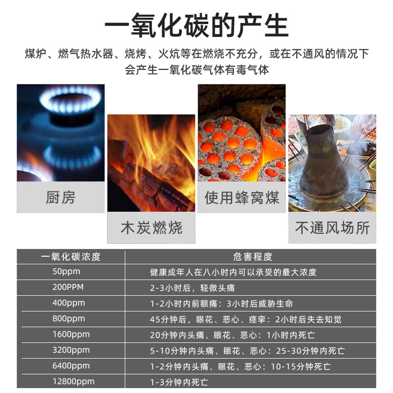 Детектор угарного газа для домашнего использования, для внутреннего отопления, для угольных решеток, для обнаружения сажи и углерода (CO)