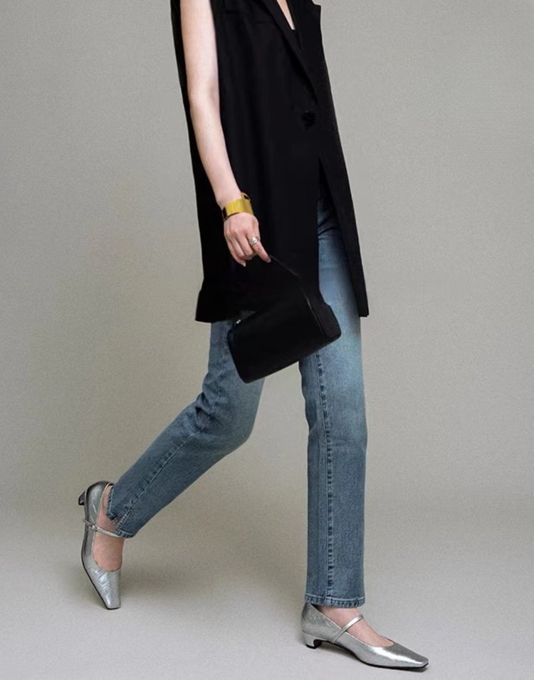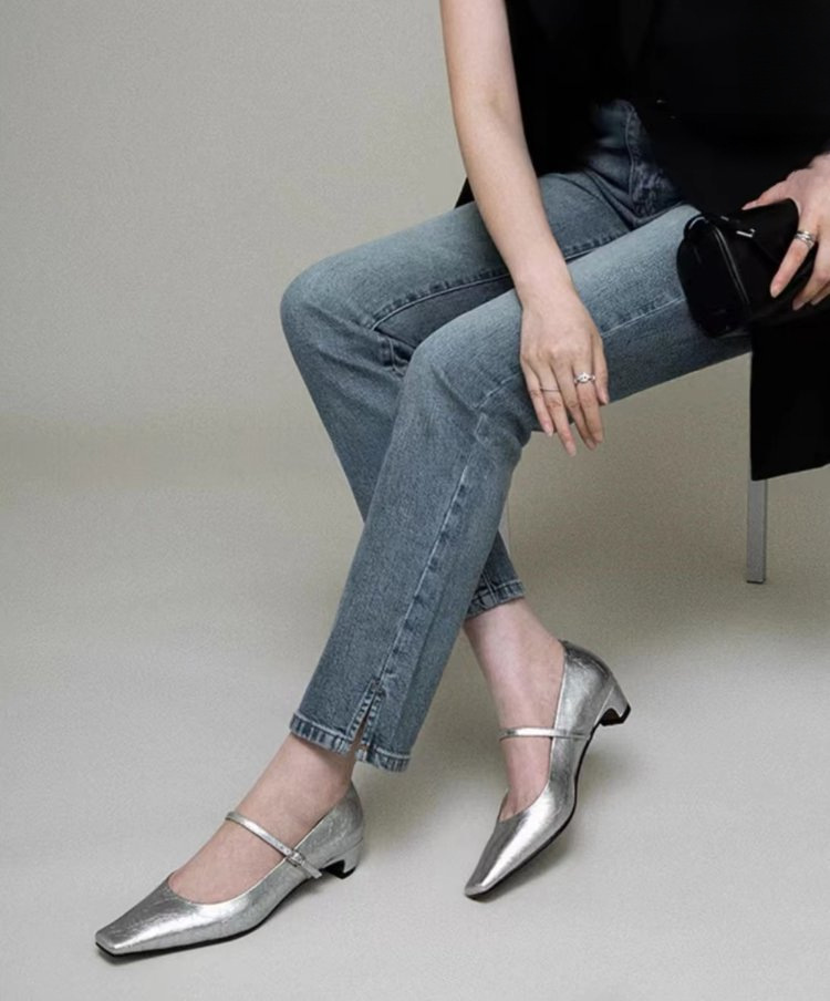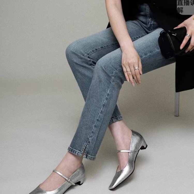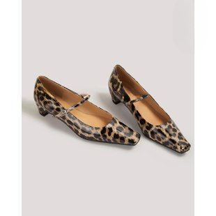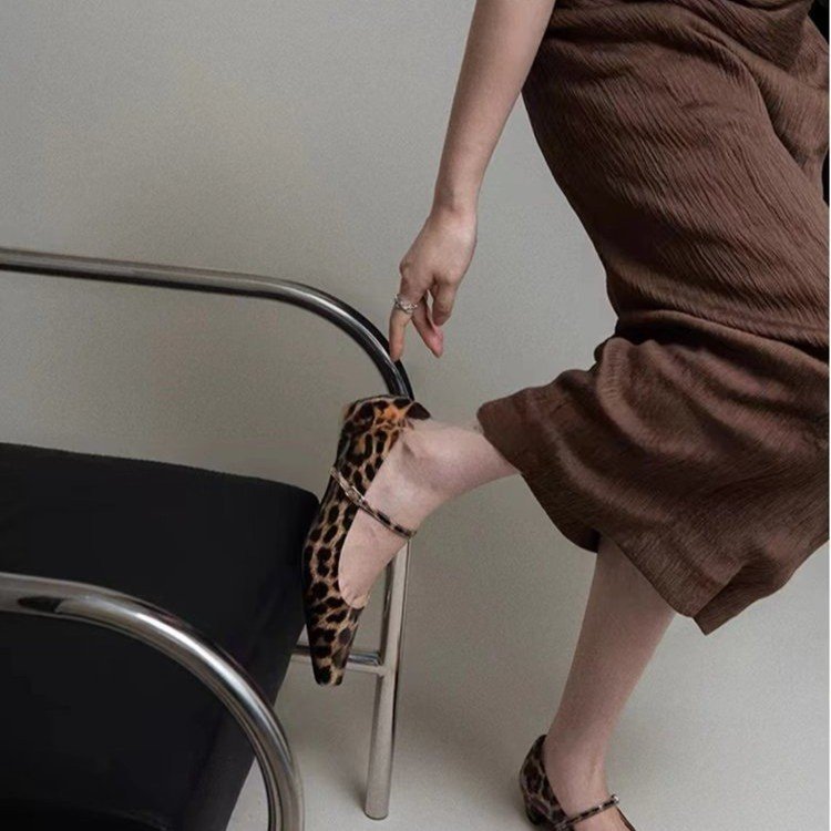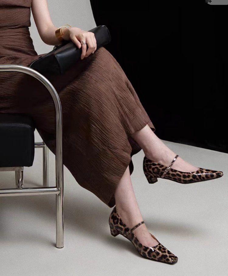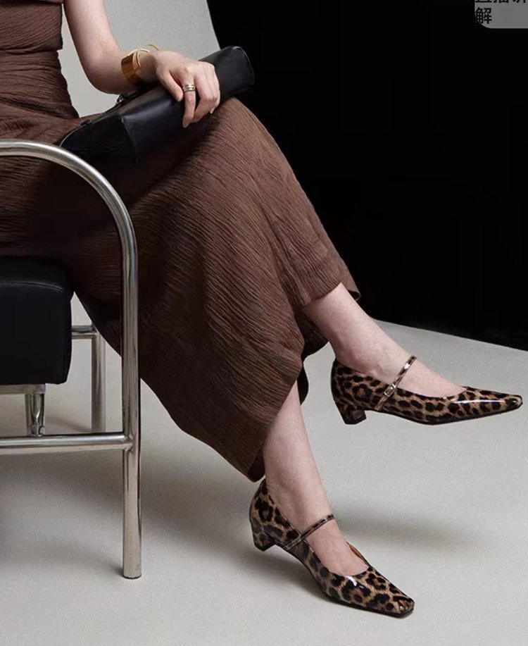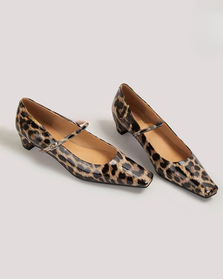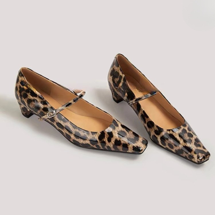 Окрашенные кожаные женские туфли Мэри Джейн 2024 новый леопардовый принт маленькая квадратная голова с низким каблуком и неглубоким ртом