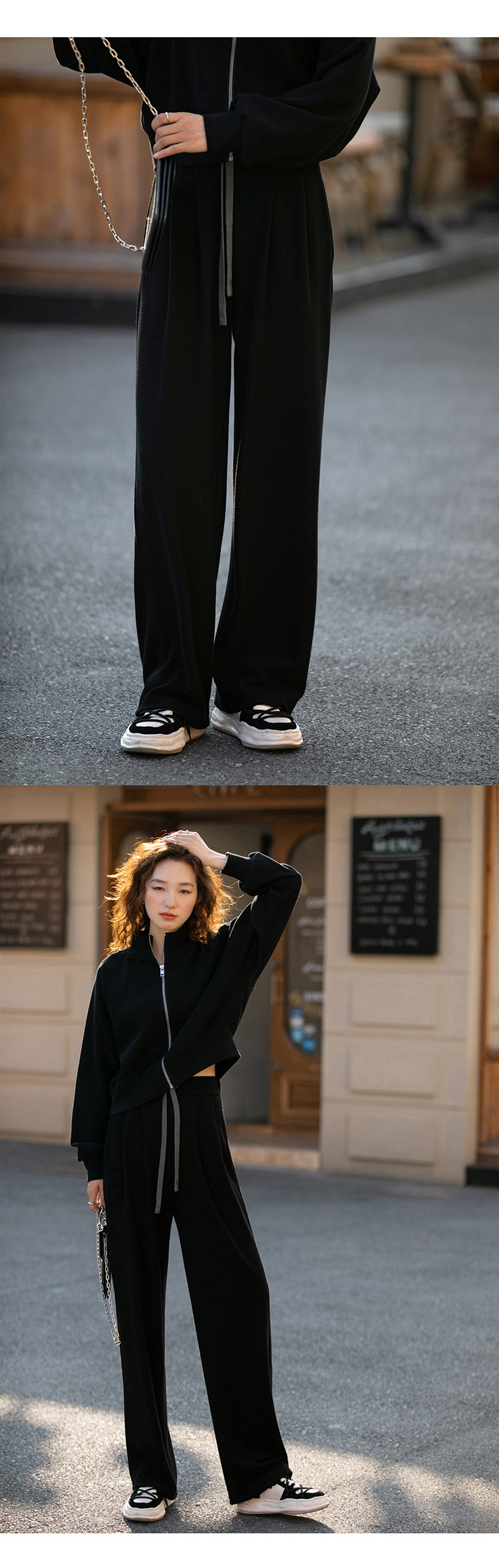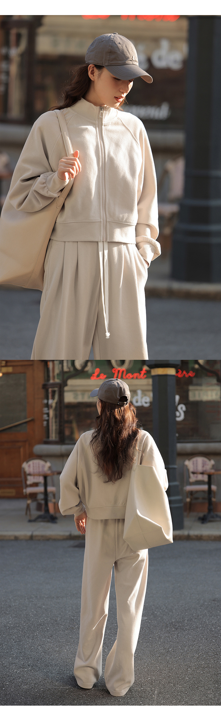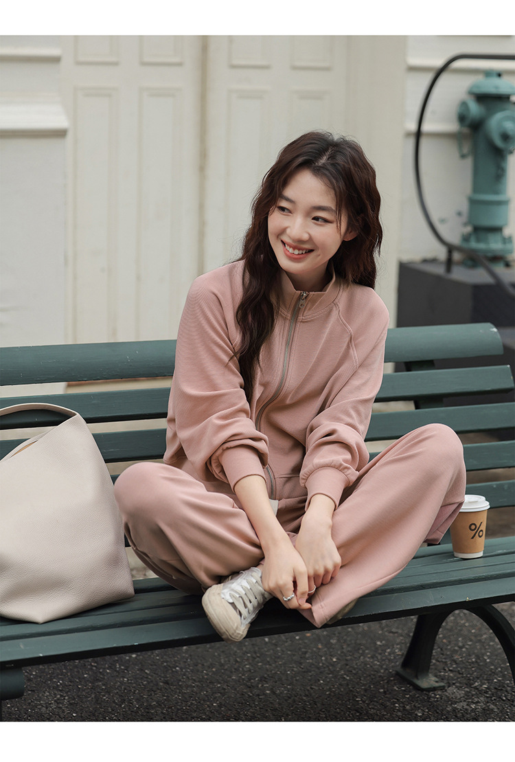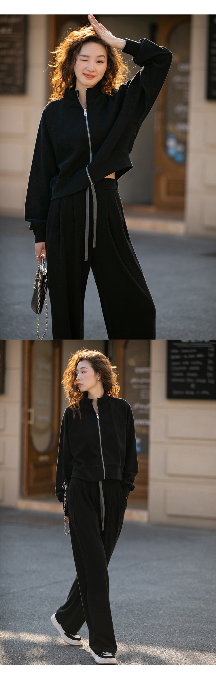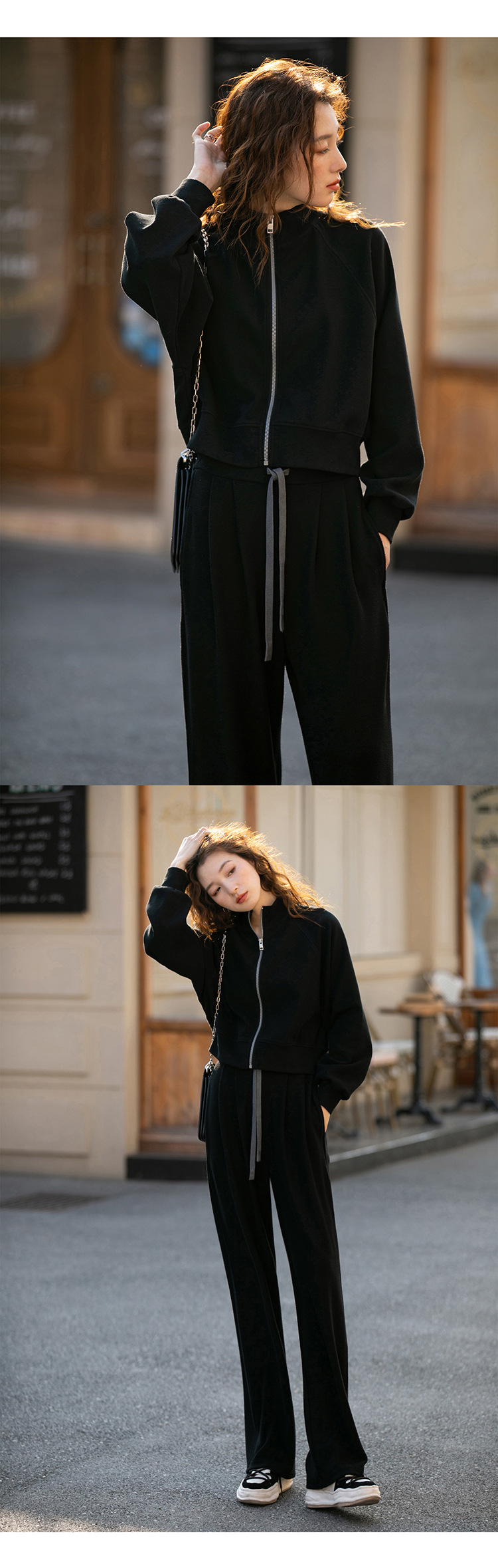 Жемчужная ткань повседневная спортивная одежда из двух частей тонкая куртка на молнии свитер мода высокого уровня чувство брюки костюм женский