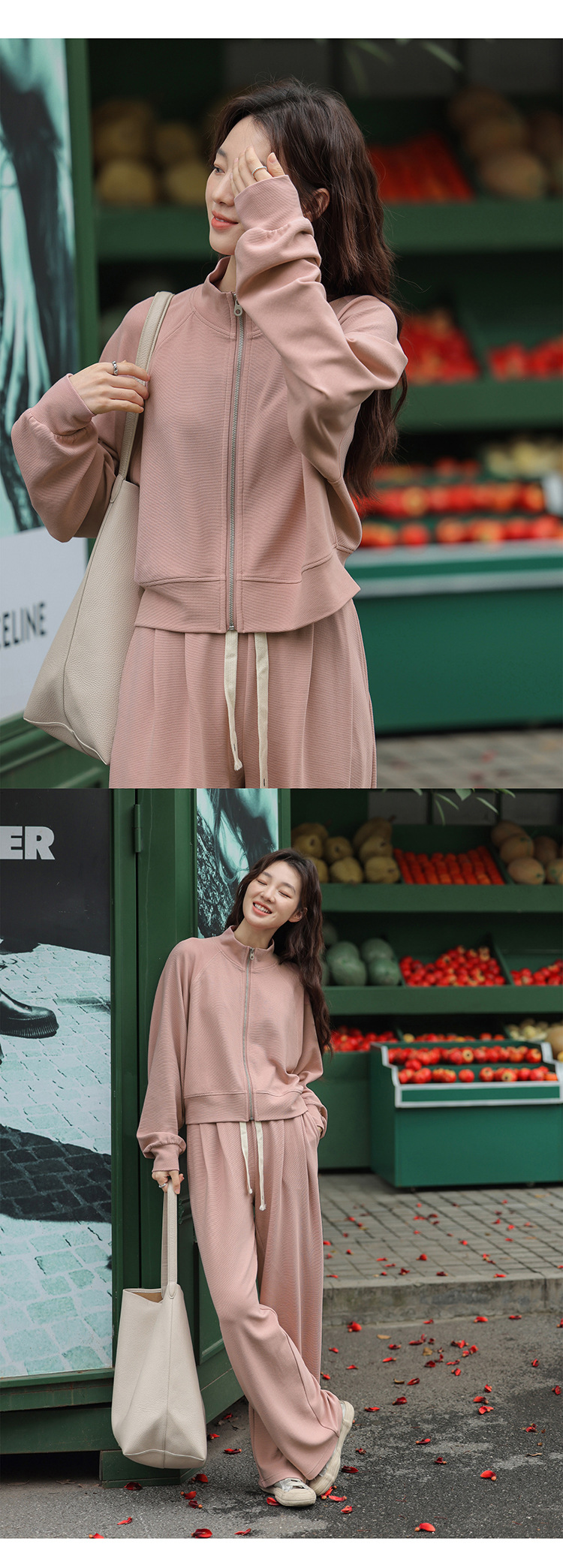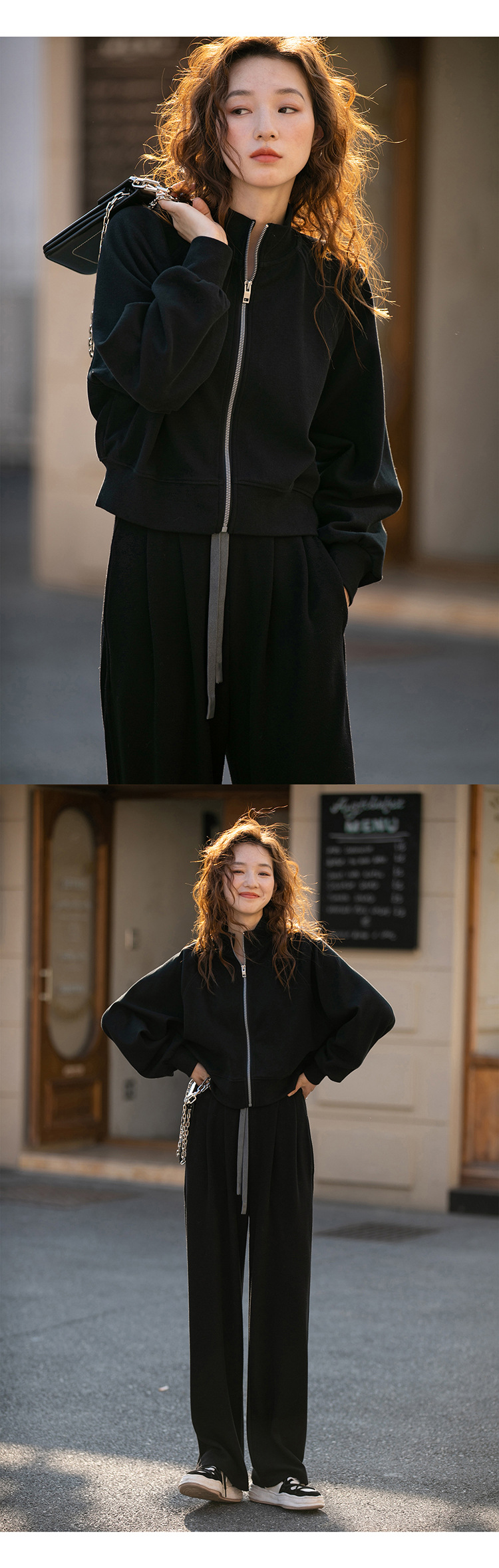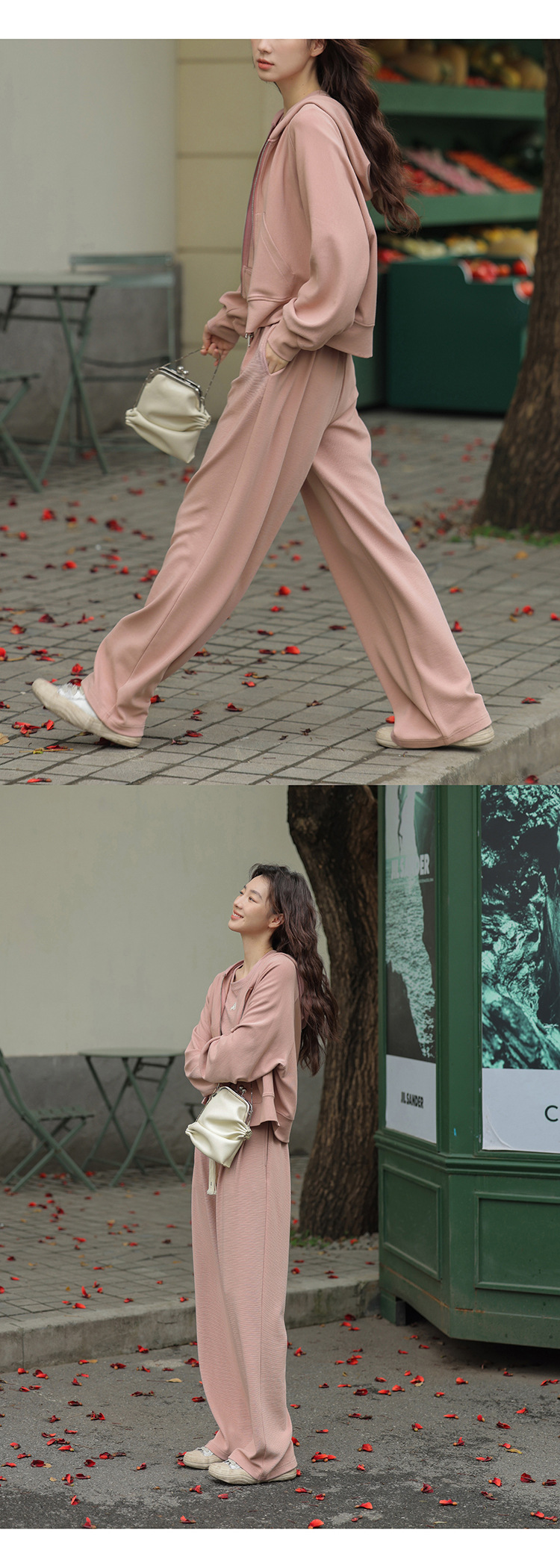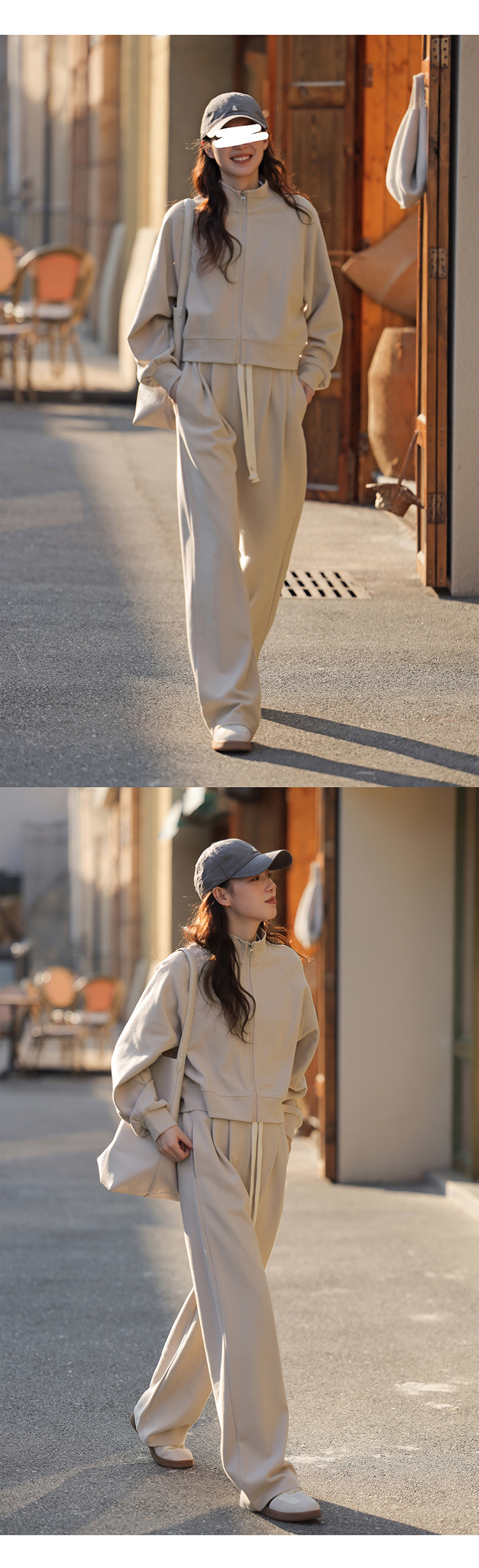 Жемчужная ткань повседневная спортивная одежда из двух частей тонкая куртка на молнии свитер мода высокого уровня чувство брюки костюм женский