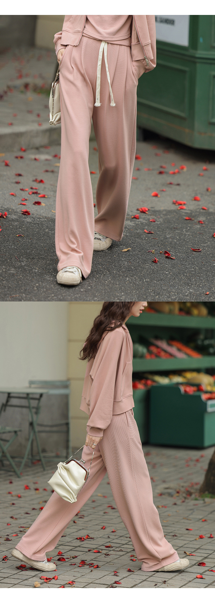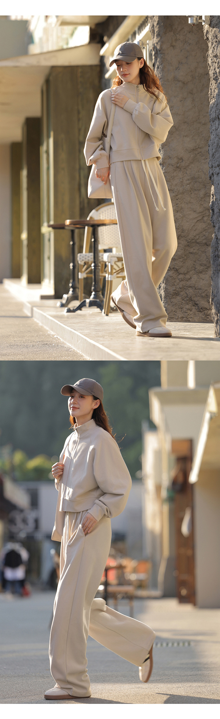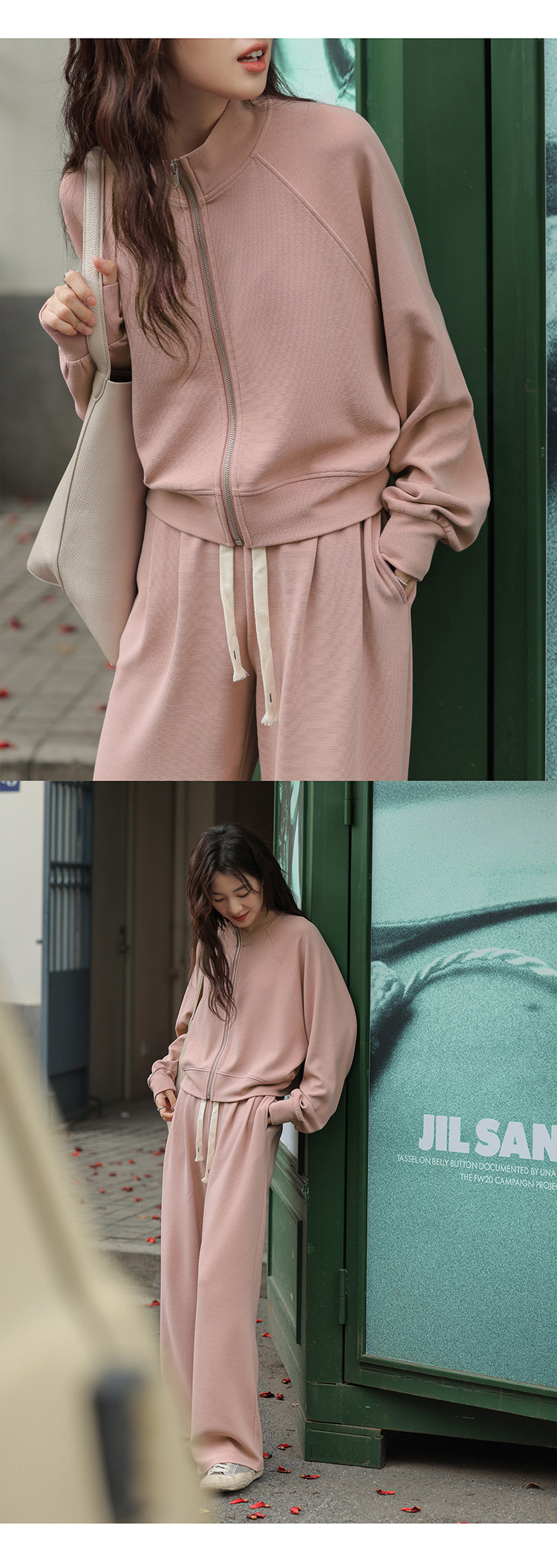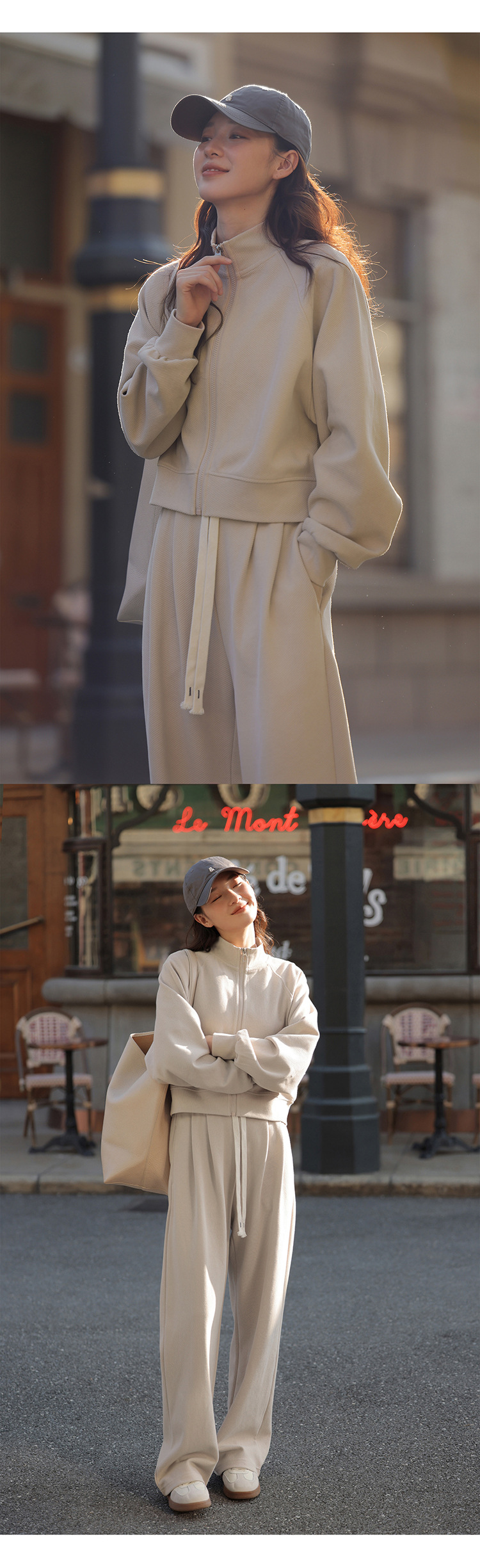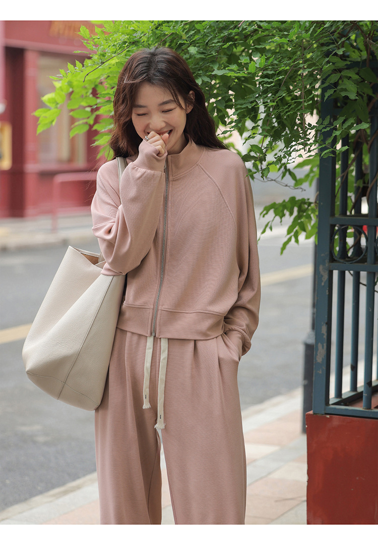 Жемчужная ткань повседневная спортивная одежда из двух частей тонкая куртка на молнии свитер мода высокого уровня чувство брюки костюм женский