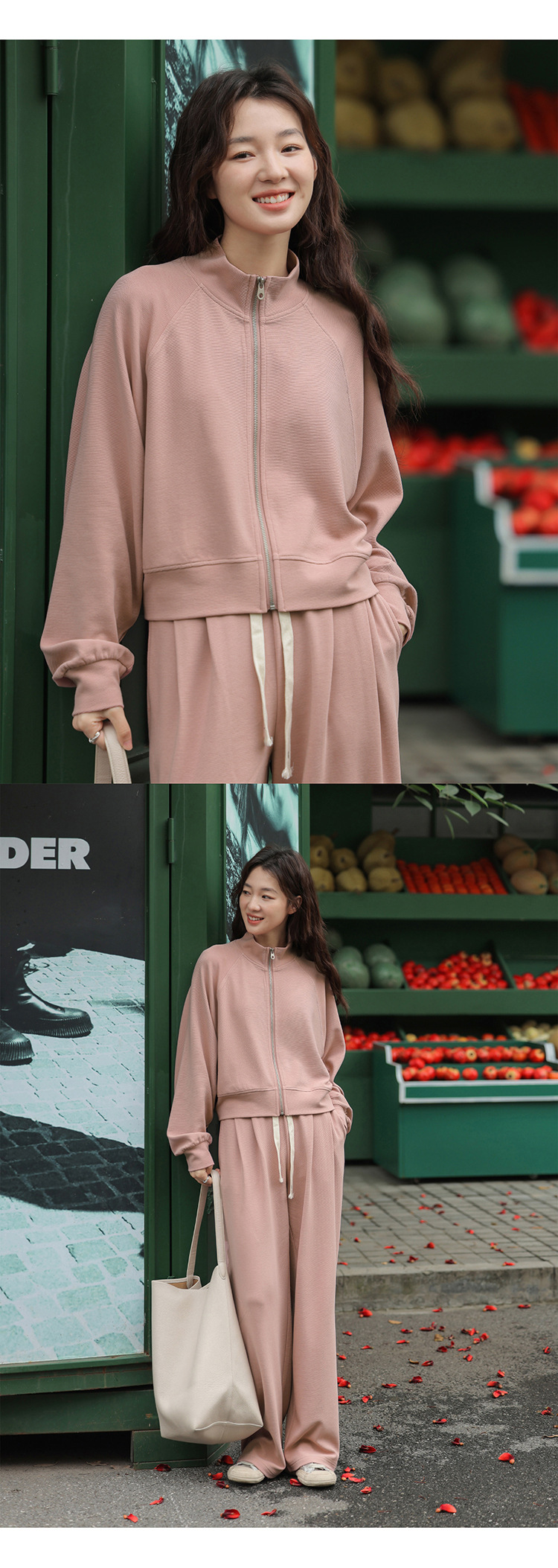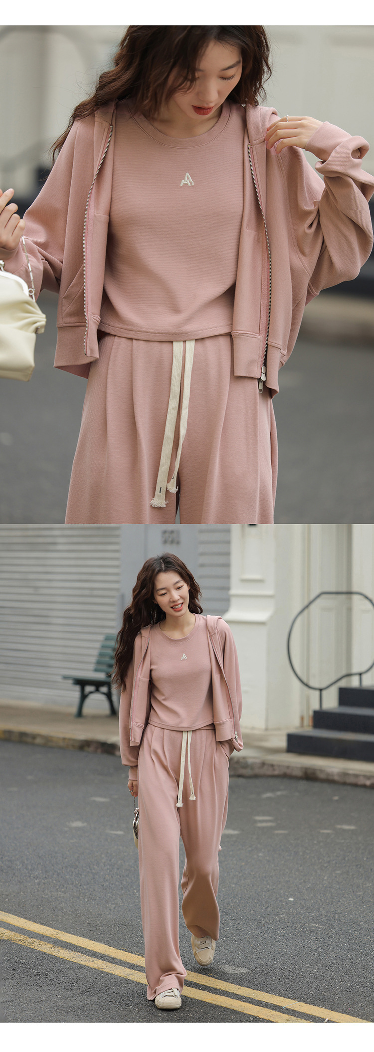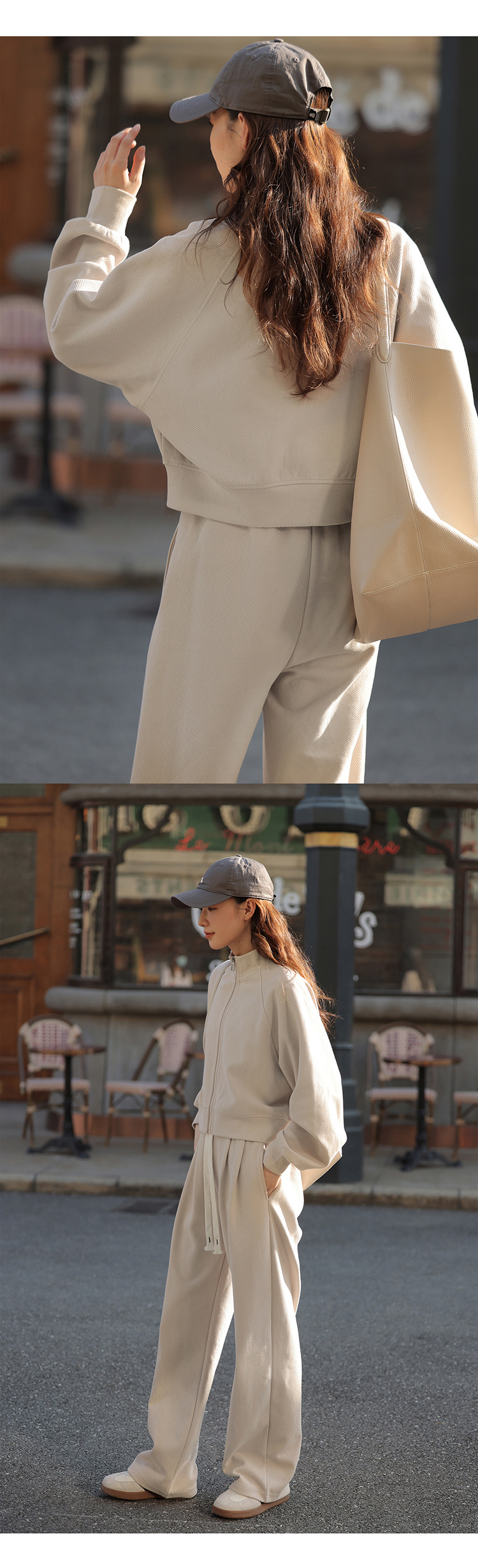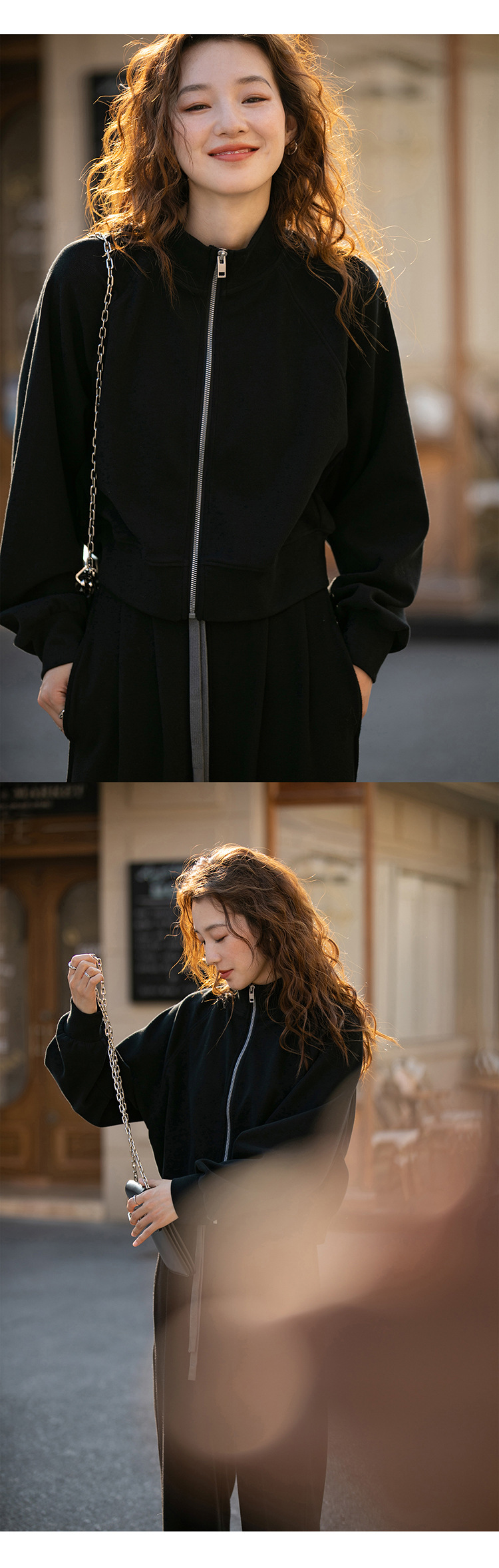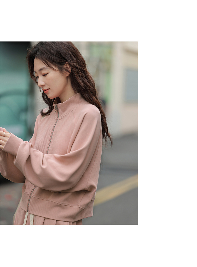 Жемчужная ткань повседневная спортивная одежда из двух частей тонкая куртка на молнии свитер мода высокого уровня чувство брюки костюм женский