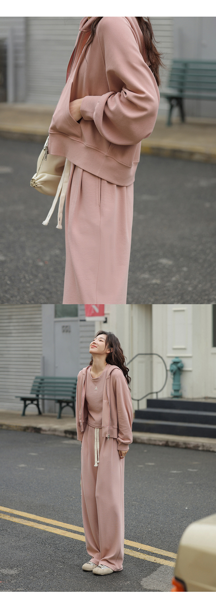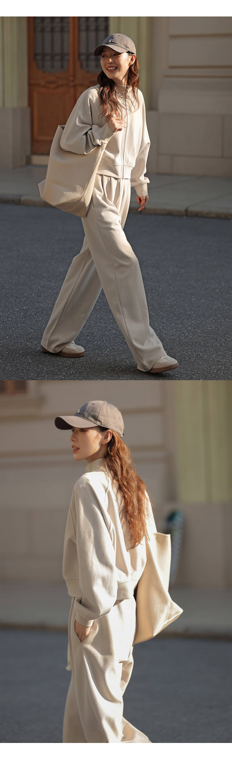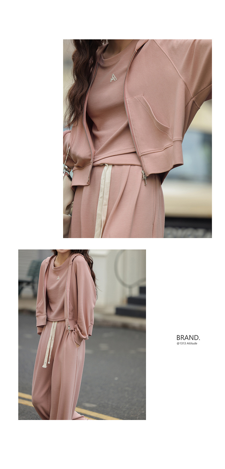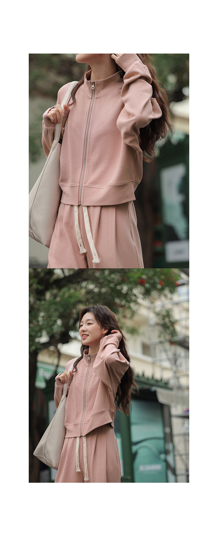 Жемчужная ткань повседневная спортивная одежда из двух частей тонкая куртка на молнии свитер мода высокого уровня чувство брюки костюм женский