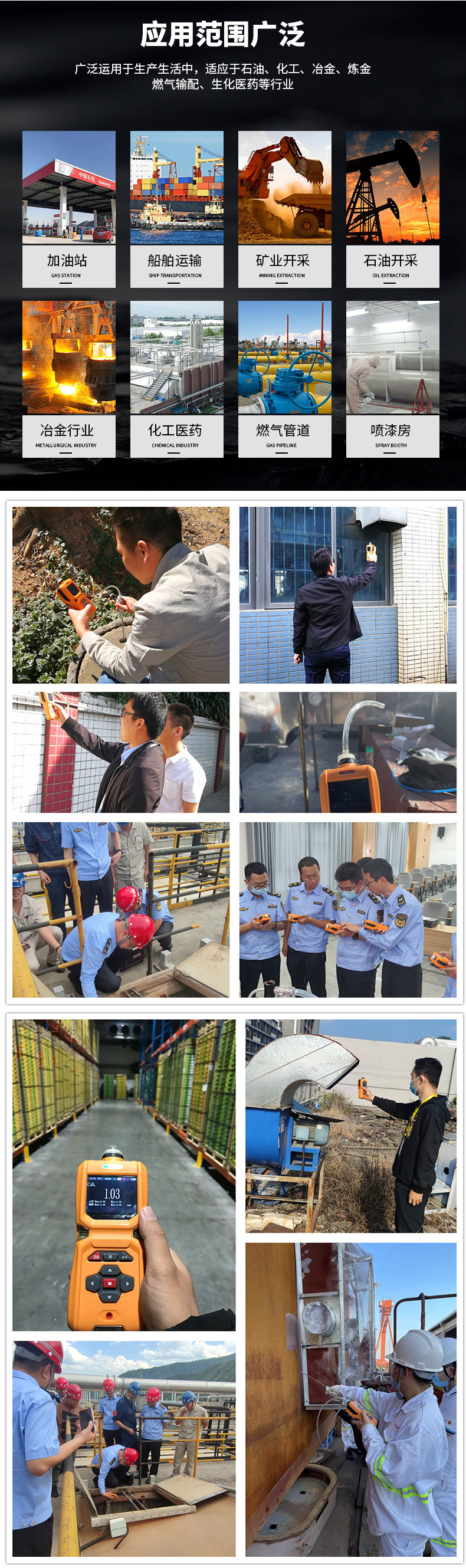 Нефтяная, химическая промышленность, фармацевтическая, экологически чистая, складская, анализ дыма и газа, управление воздухом и другие случаи, требующие обнаружения концентрации газа.