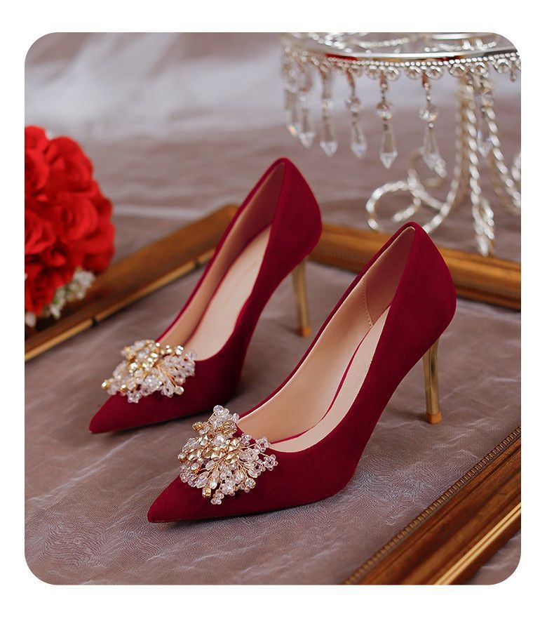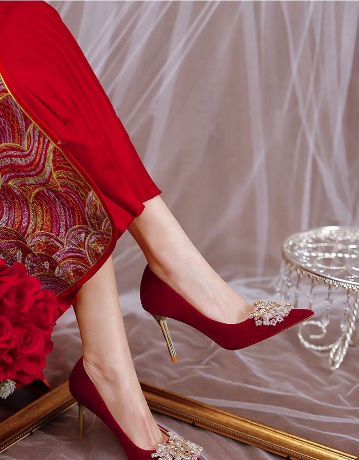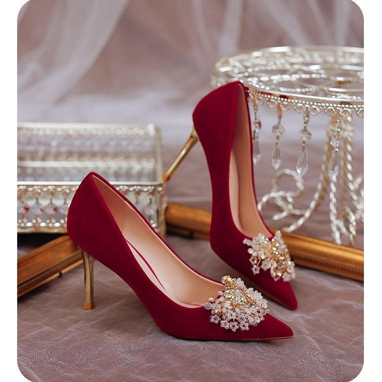 Французский каблук китайский стиль шоу Hhe свадебная обувь женская 2024 новая элегантность свадебные туфли красные туфли на высоком каблуке