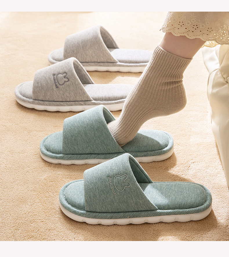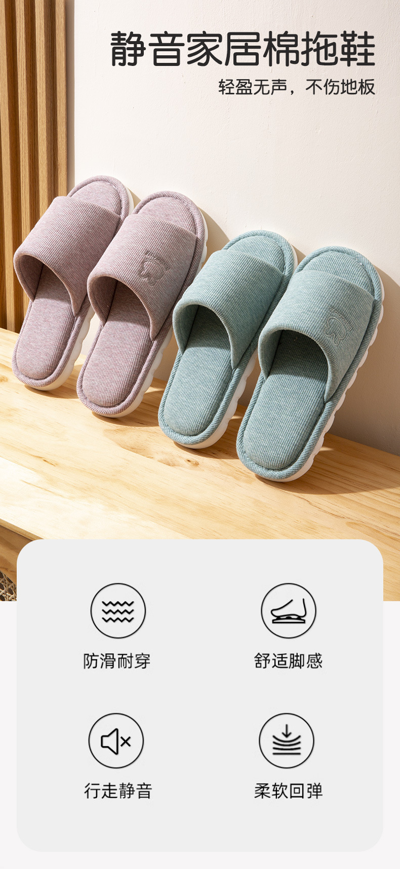 Льняные тапочки женские осенние и зимние новые интерьерные дома тихие домашние четыре сезона хлопчатобумажные тапочки мужская весна и лето