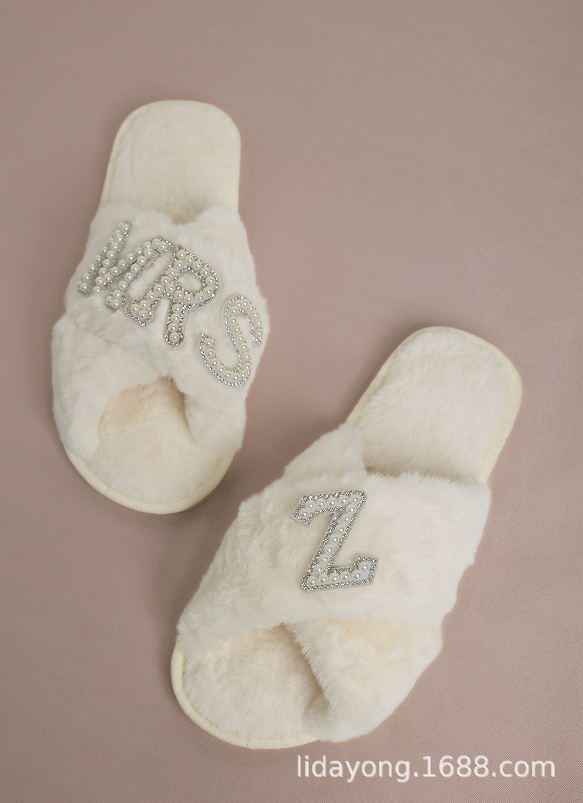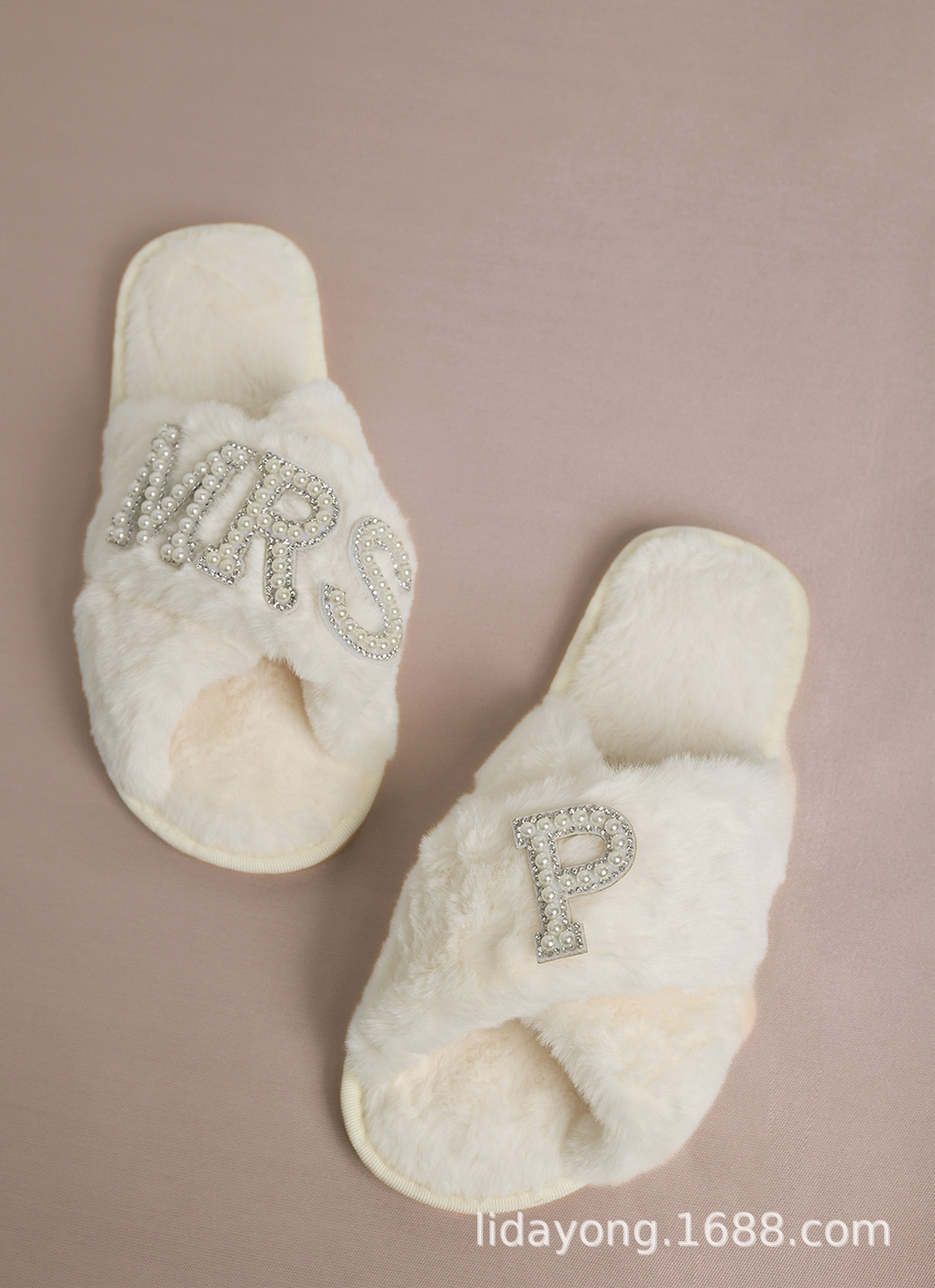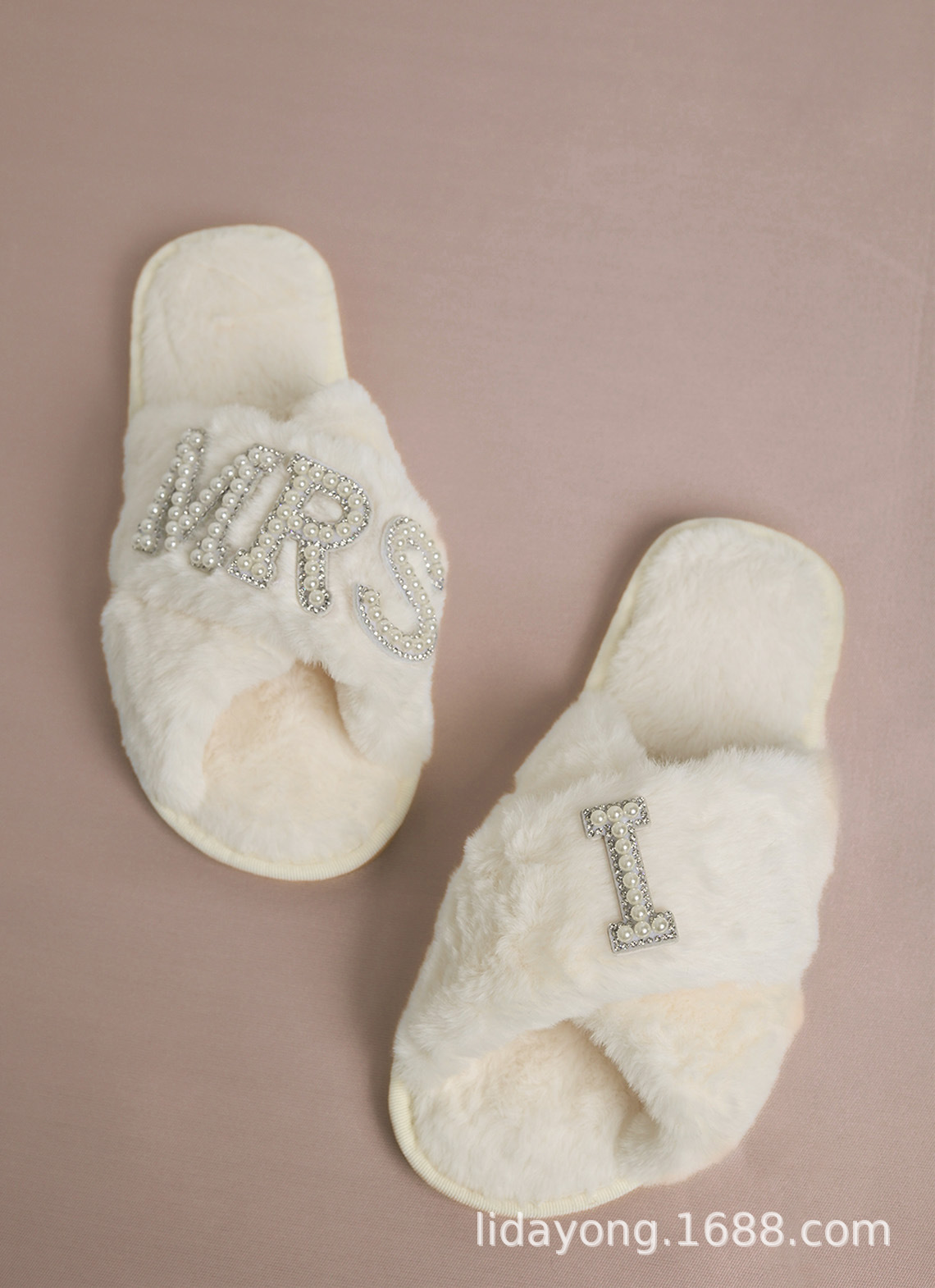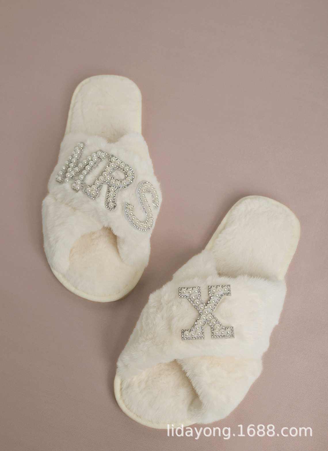 MRS Трансграничный взрыв Bride жемчужные буквы крестообразные плюшевые тапочки свадебный подарок для девичника