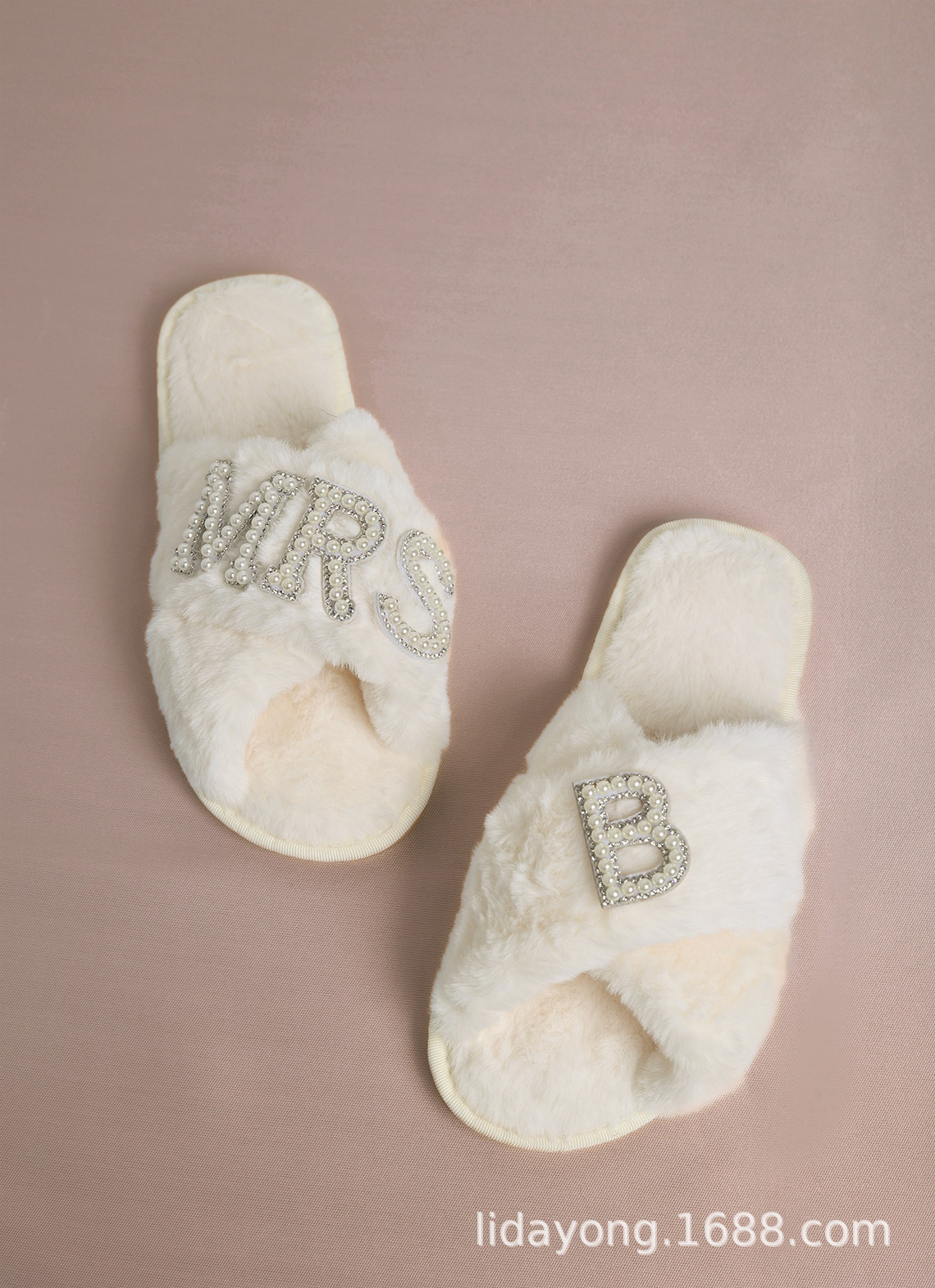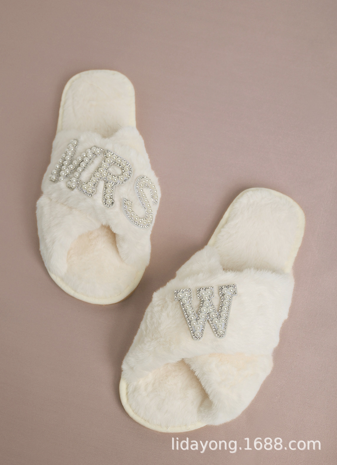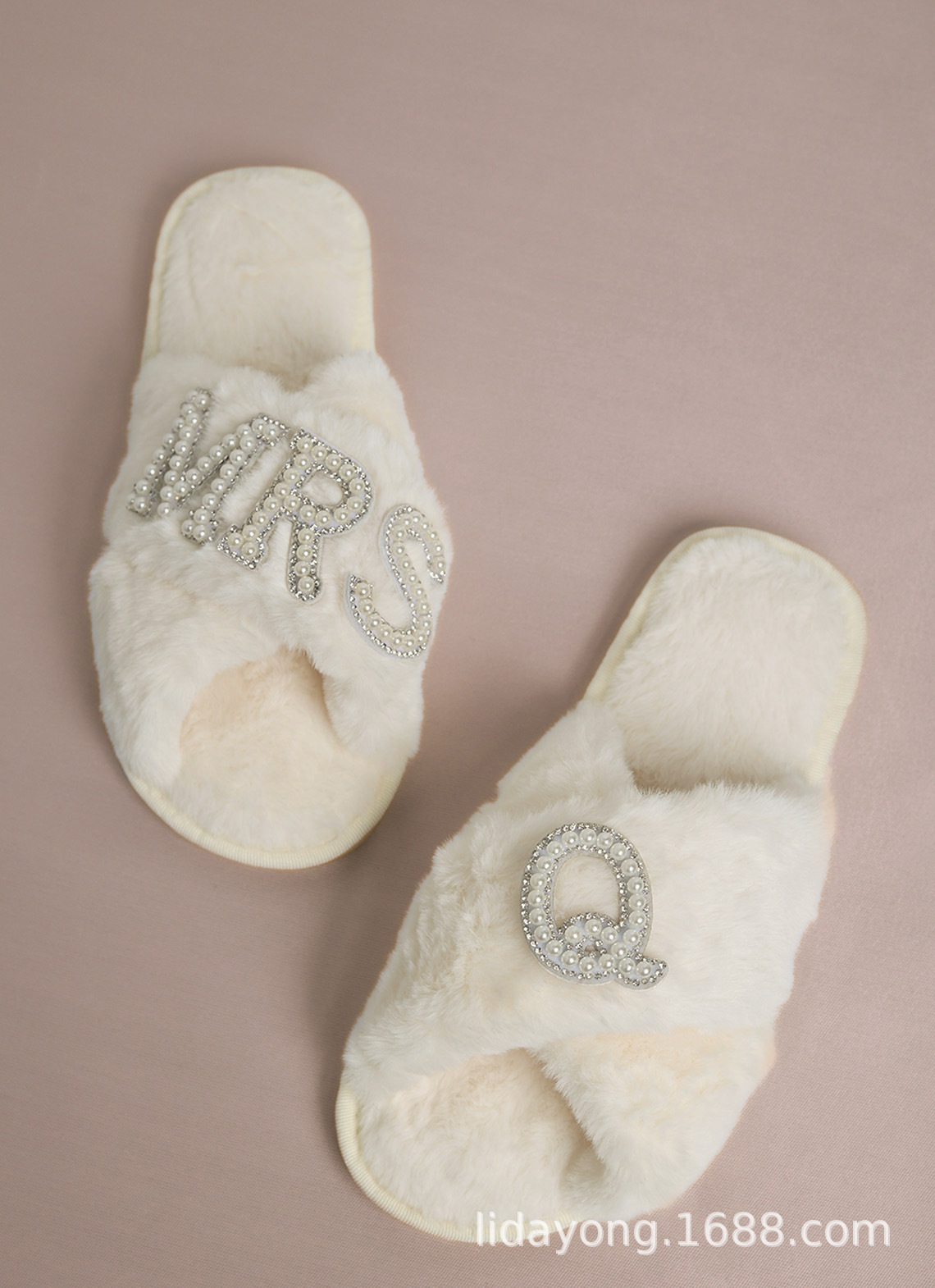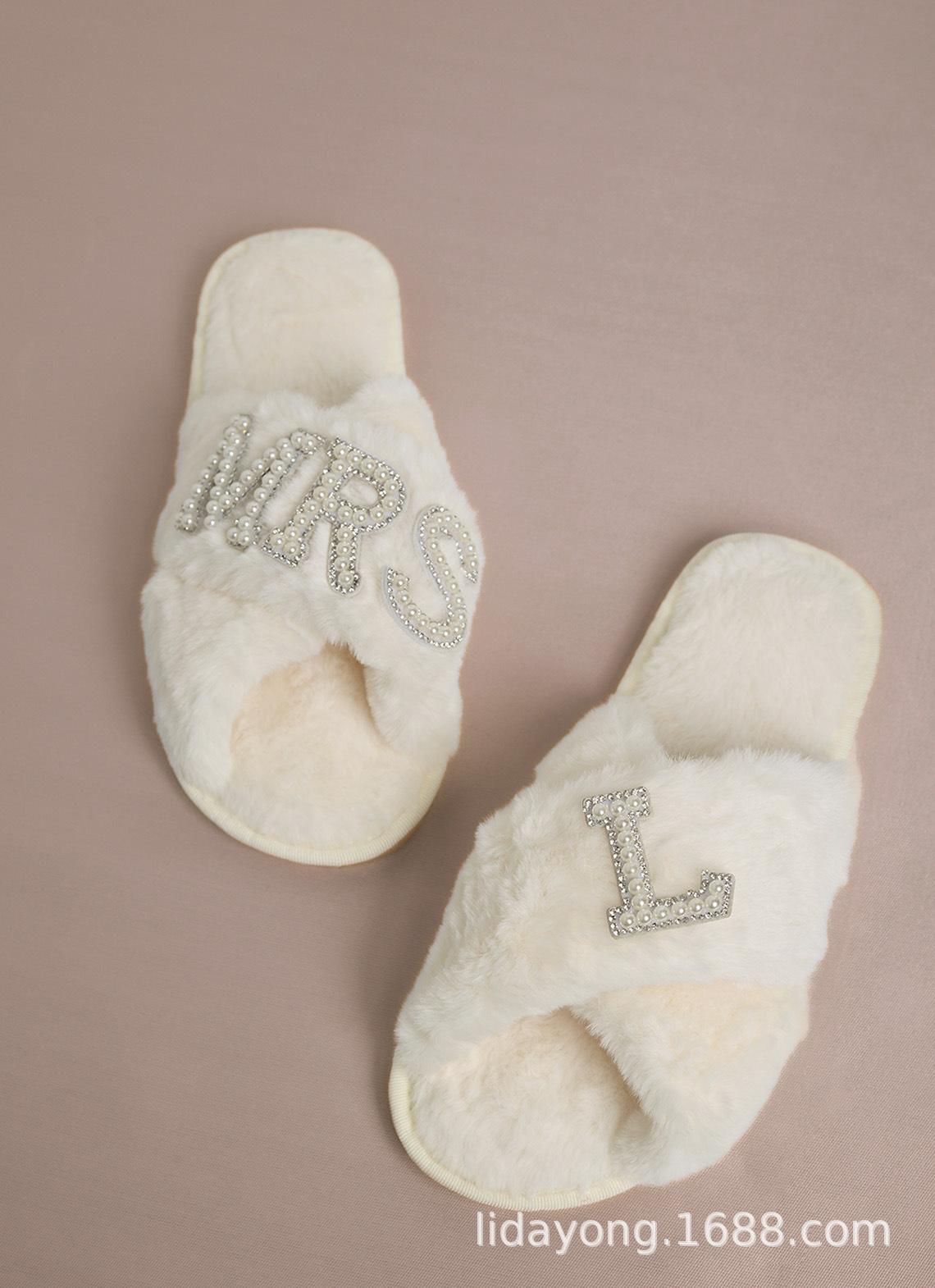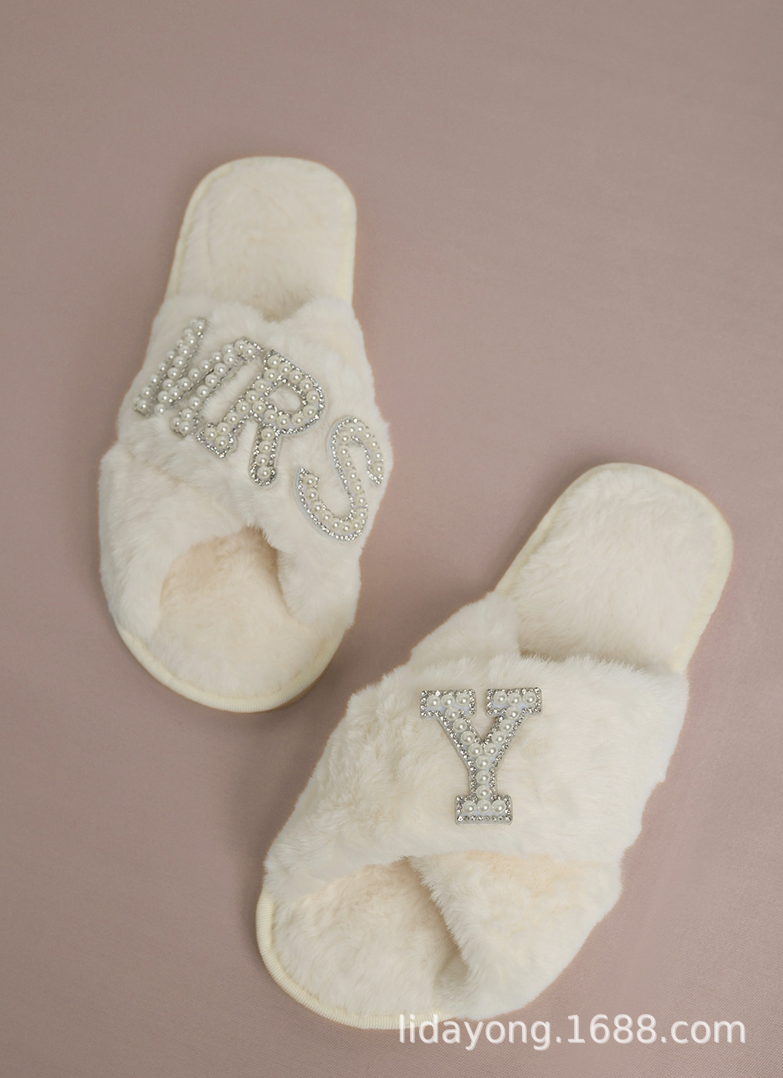 MRS Трансграничный взрыв Bride жемчужные буквы крестообразные плюшевые тапочки свадебный подарок для девичника