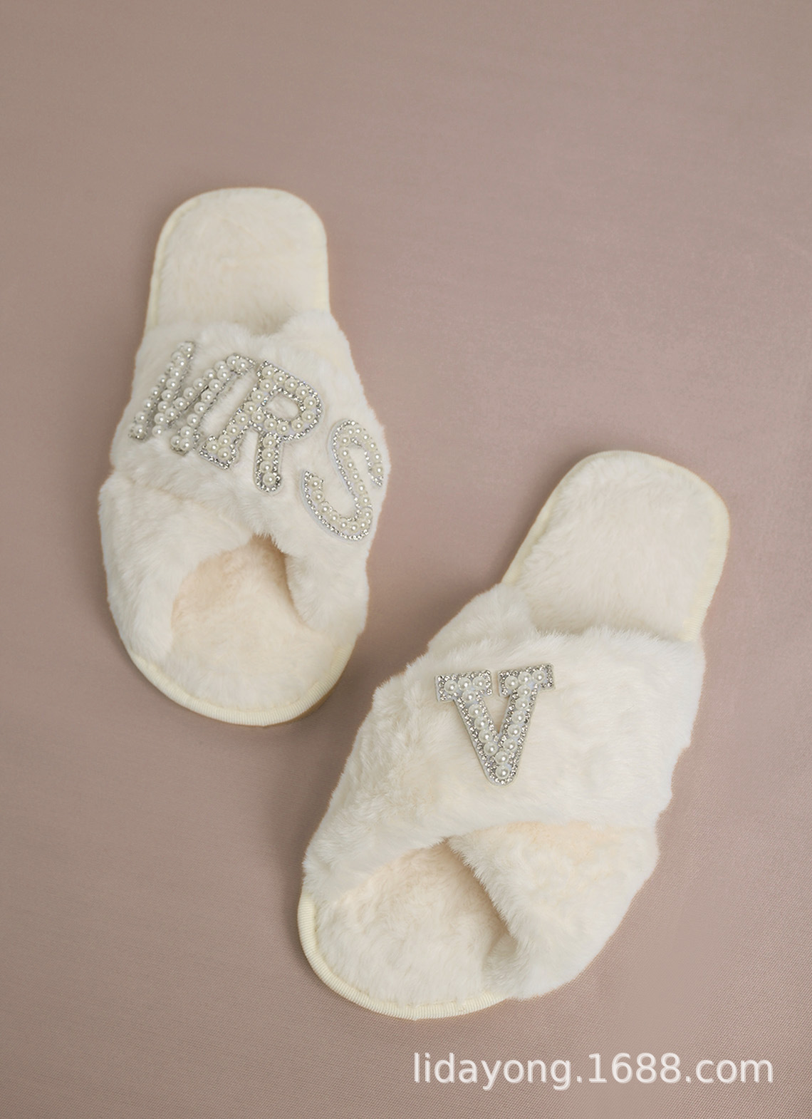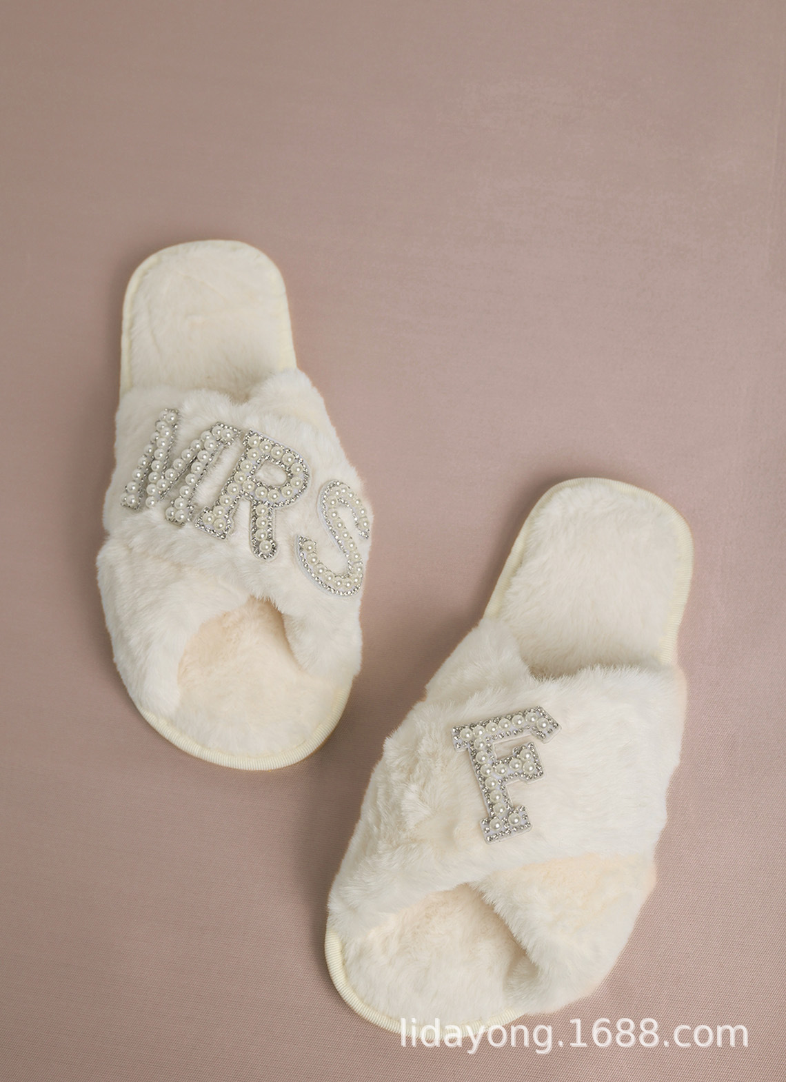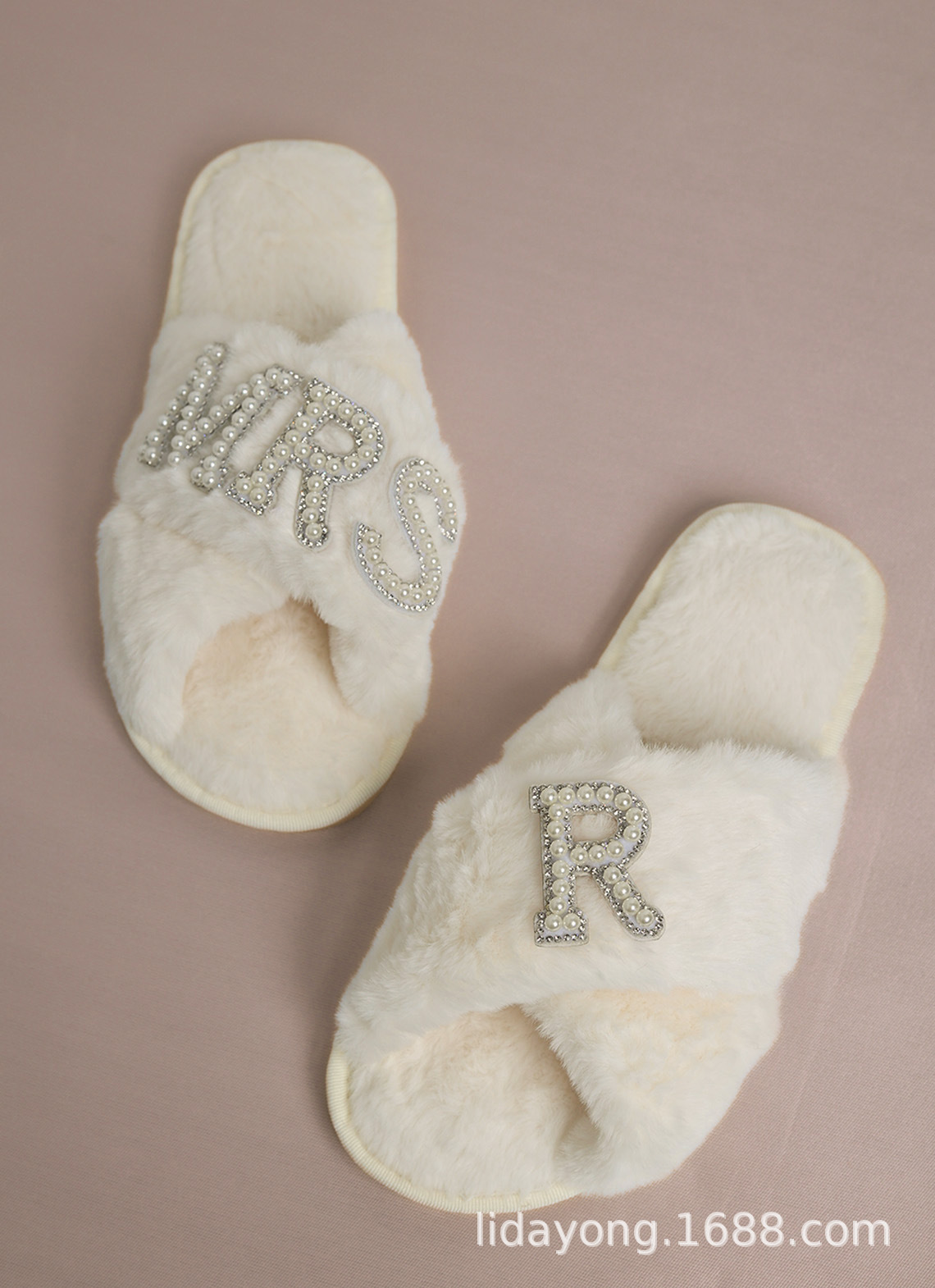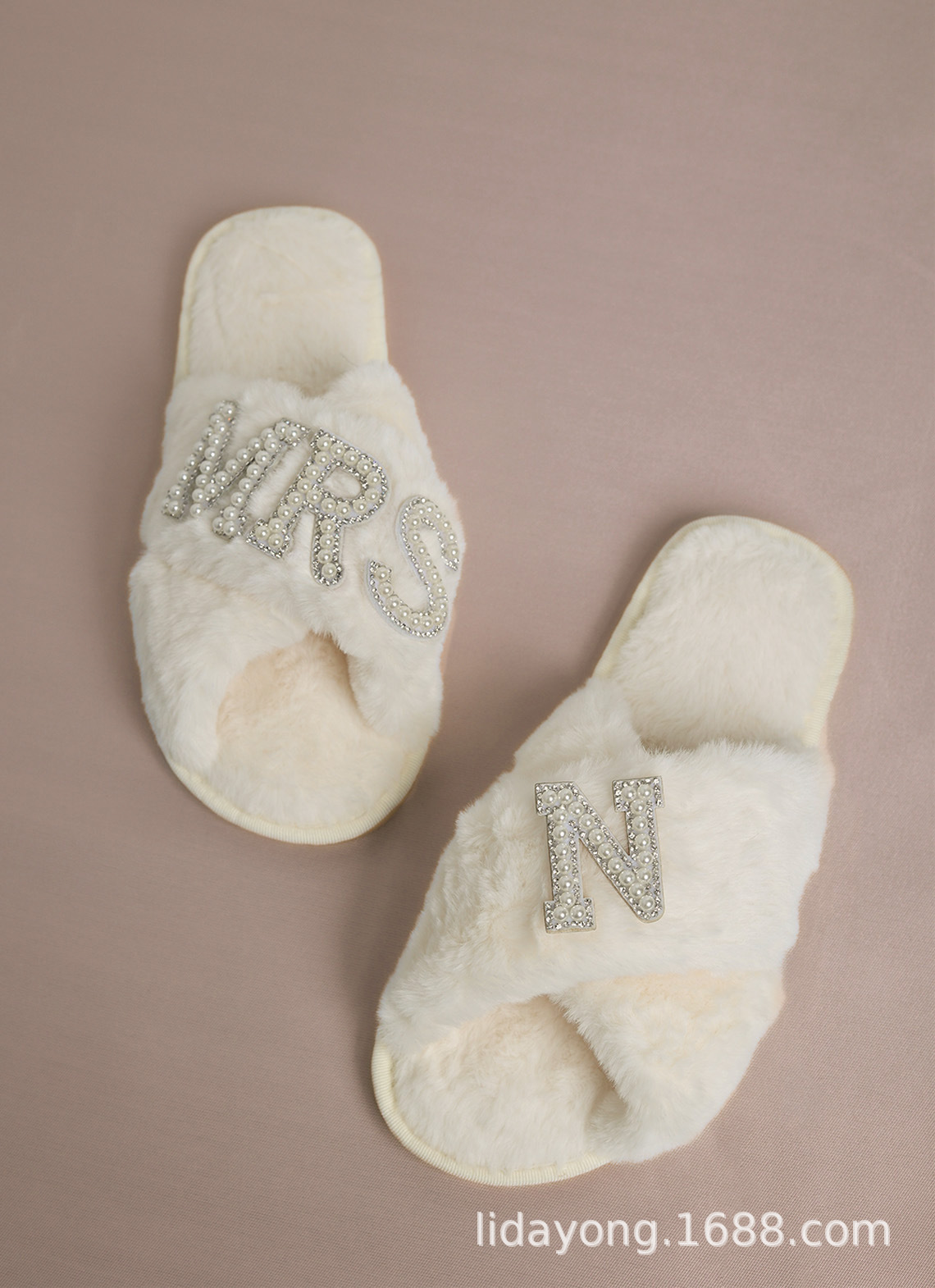 MRS Трансграничный взрыв Bride жемчужные буквы крестообразные плюшевые тапочки свадебный подарок для девичника