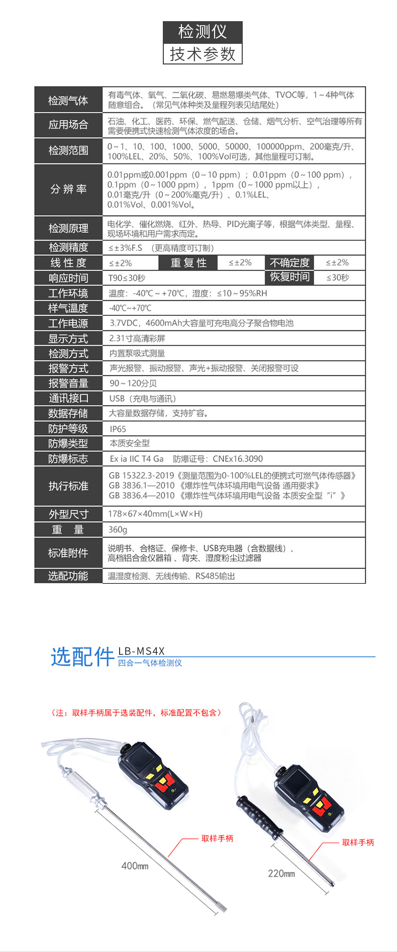 Детектор газа 4-в-1; пылевой фильтр; Выдвижная ручка для отбора проб