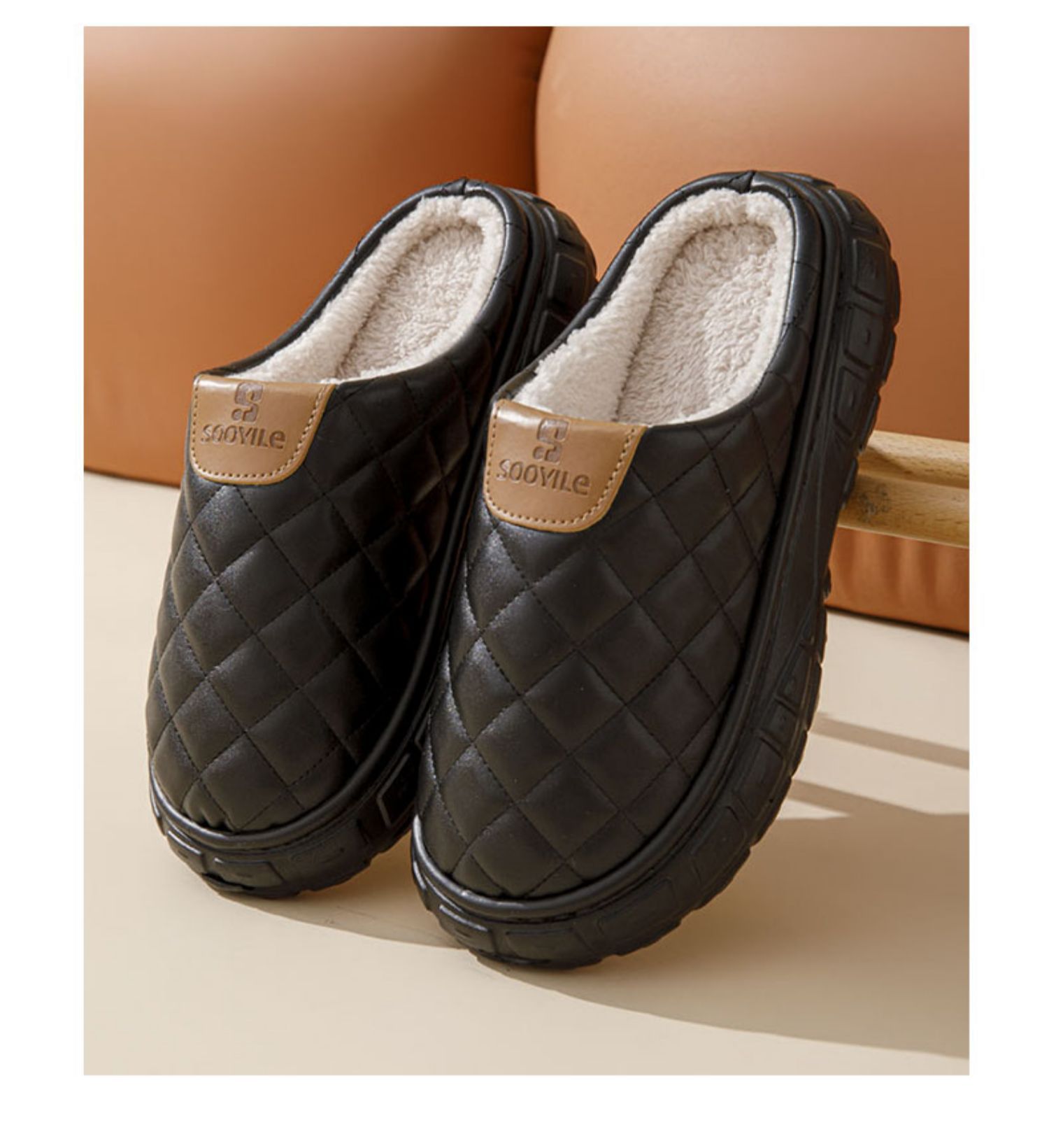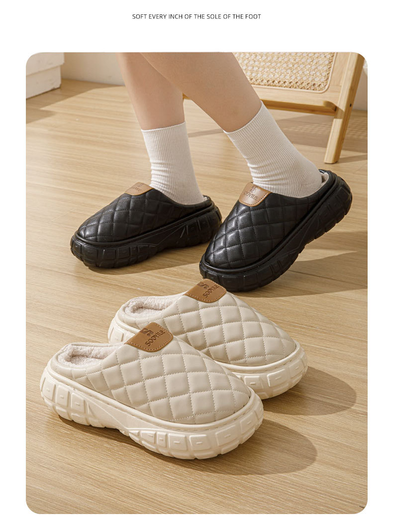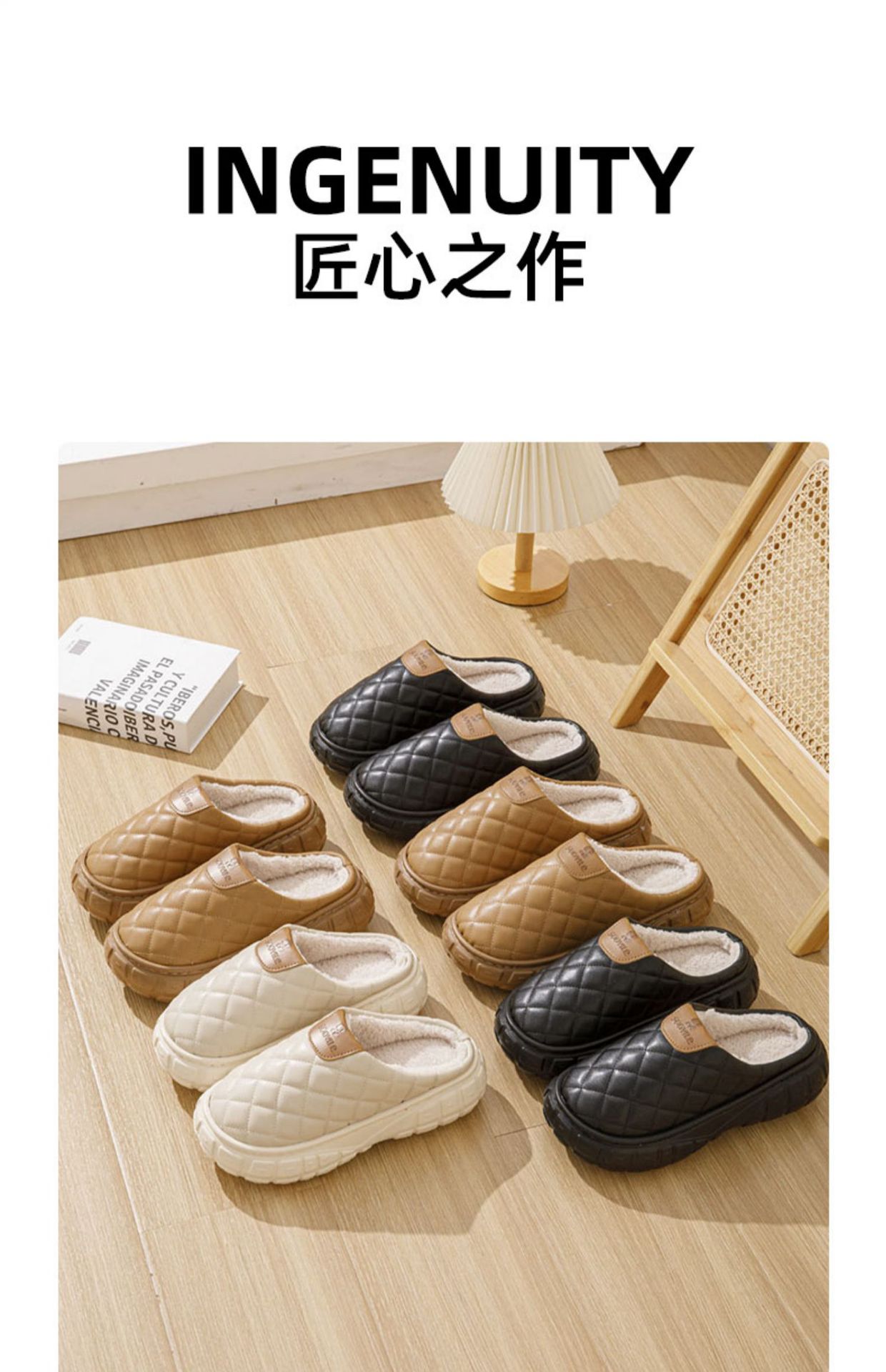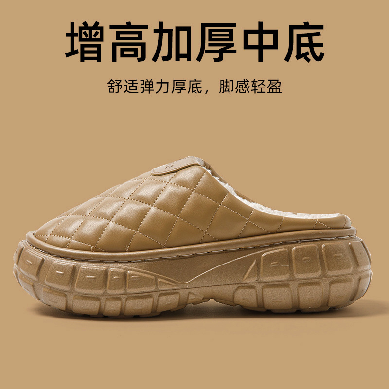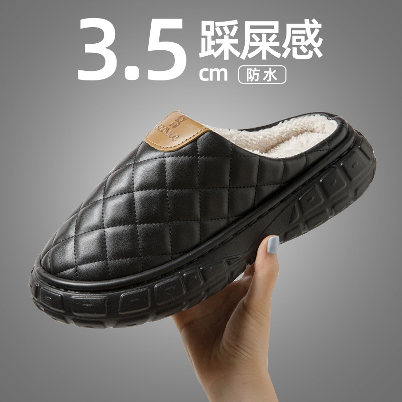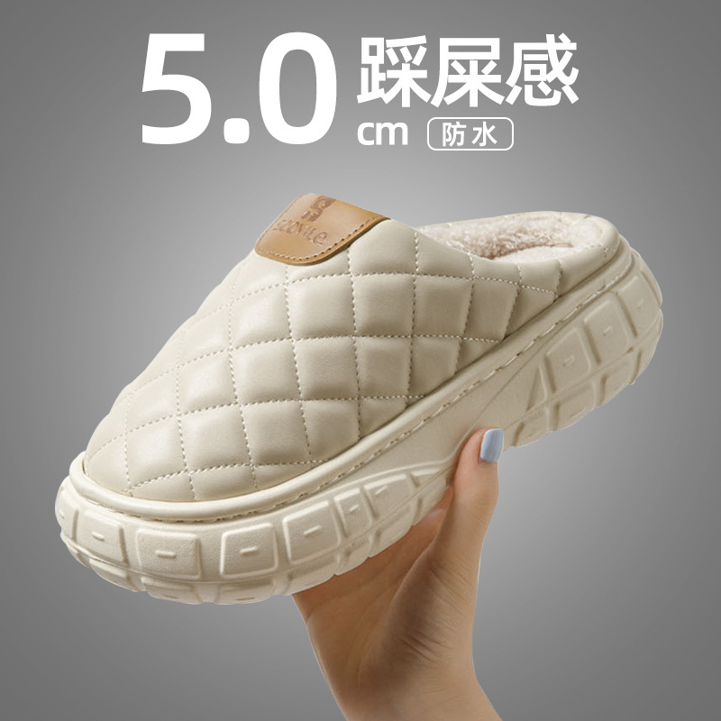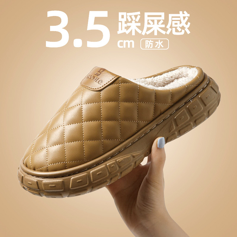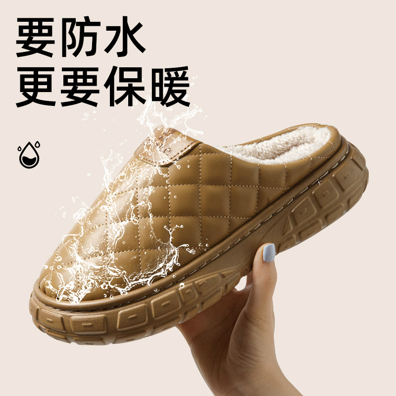 Водонепроницаемые хлопчатобумажные тапочки толстой подошвы женский зимний 2024 новый интерьер дома теплая и нескользящая передний вид