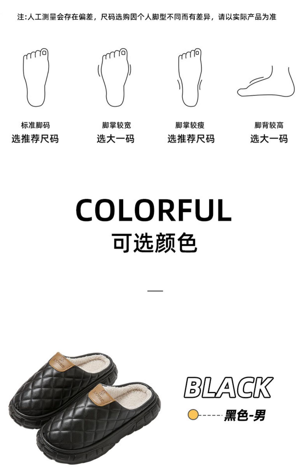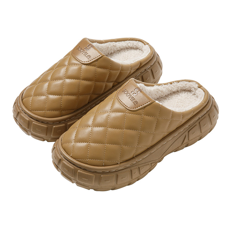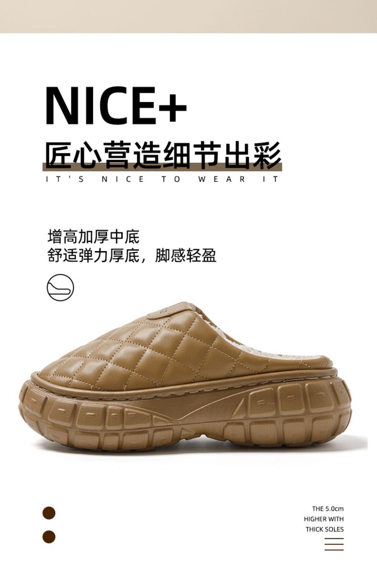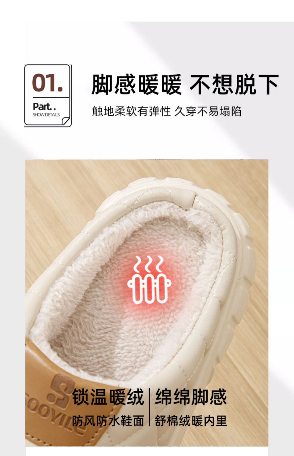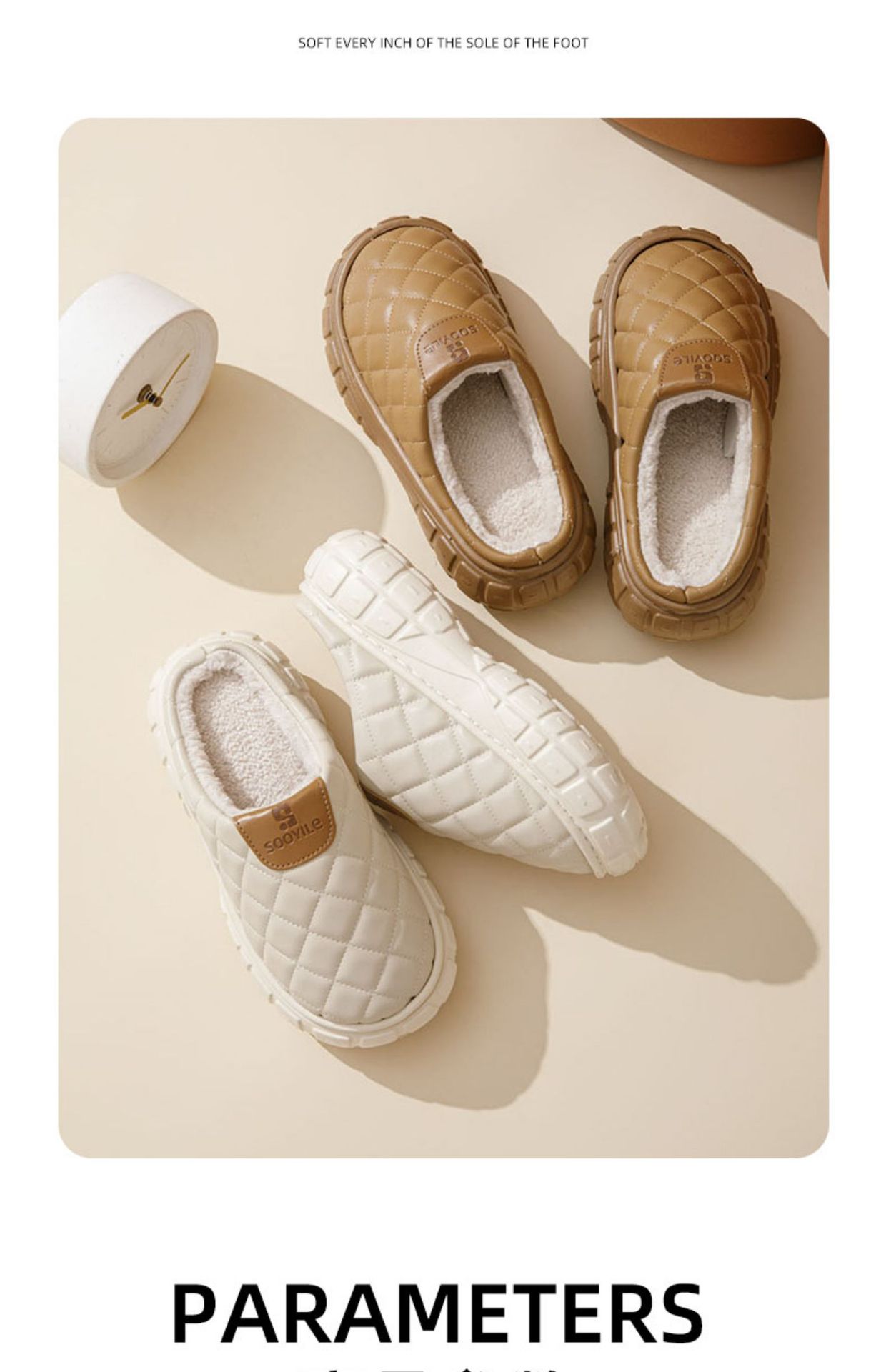 Водонепроницаемые хлопчатобумажные тапочки толстой подошвы женский зимний 2024 новый интерьер дома теплая и нескользящая передний вид