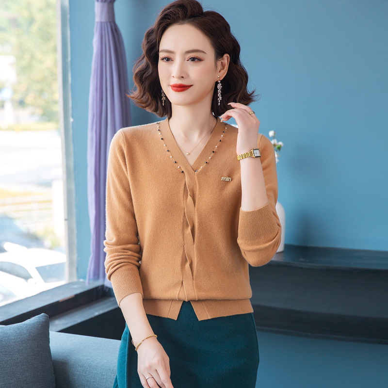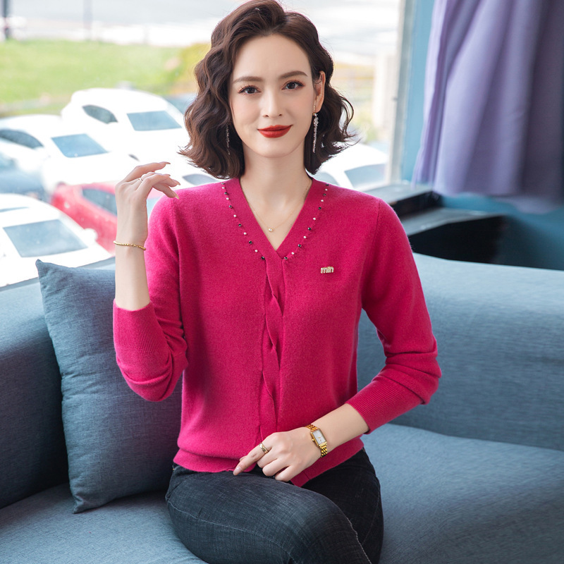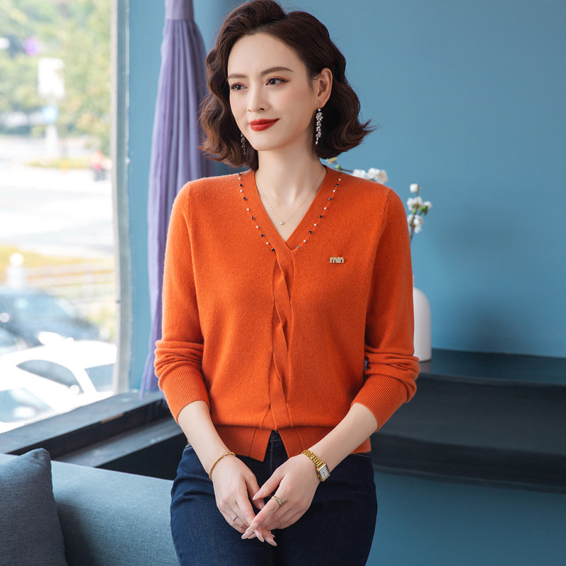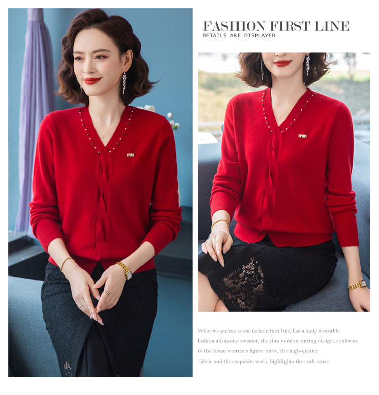 2024 новый 100 чистый шерстяной трикотажный нижний свитер женская ранняя осень внутри топ vi-образный дизайн
