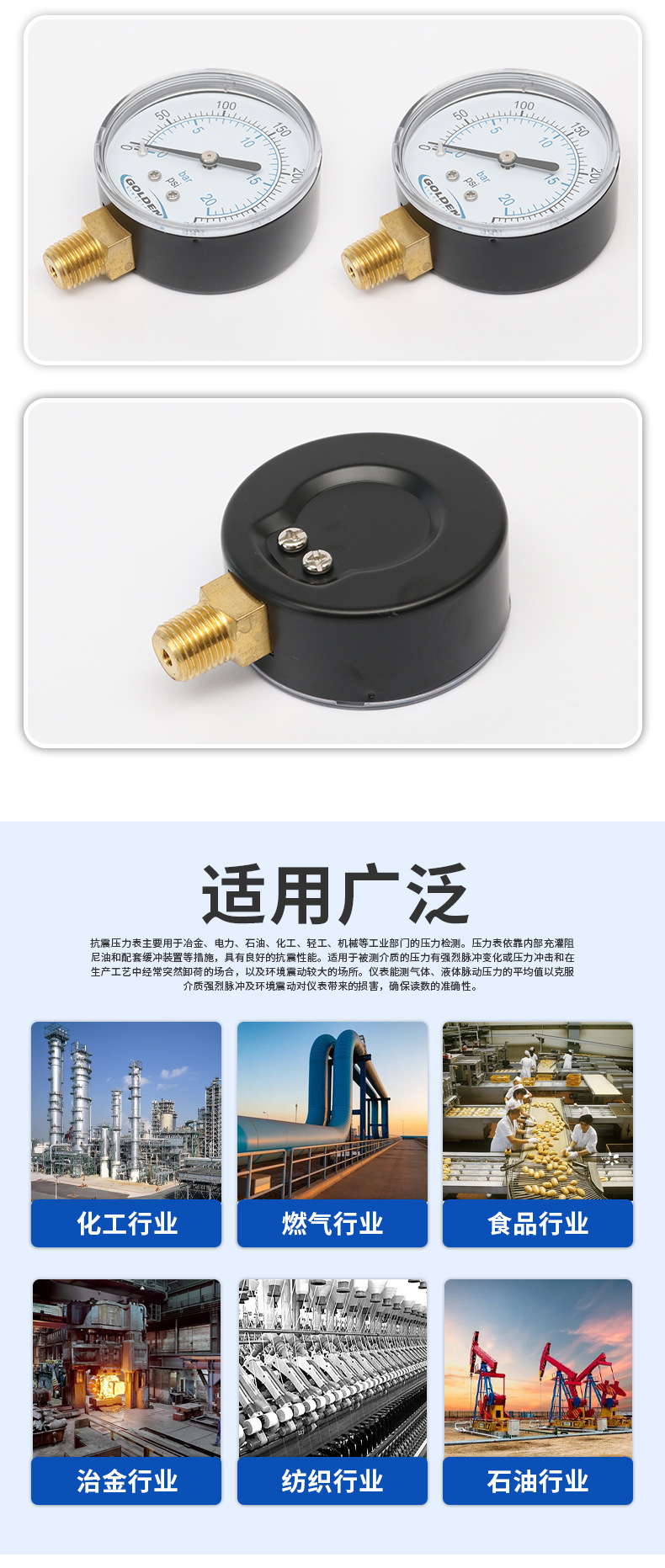 我公司专业生产不锈钢充油压力表。适用于被测介质具有强烈脉冲或环境