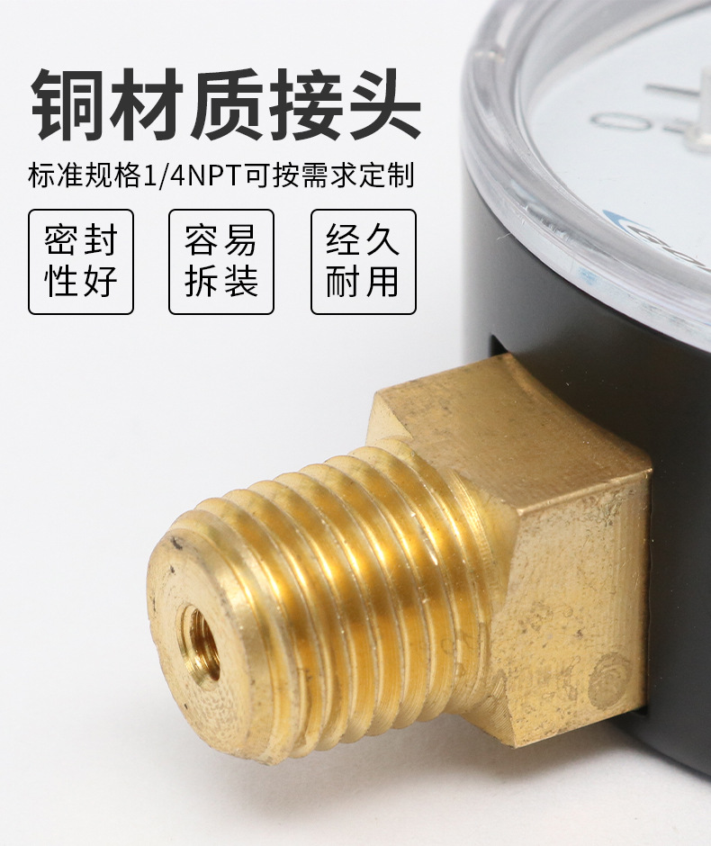 304不锈钢压力表阀门轴向连接真空表高精度空调机压表1/4NPT
