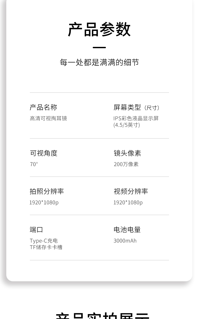 Визуальная ложка для выемки ушей Эндоскоп 5 дюймов HD с экранным отоскопом