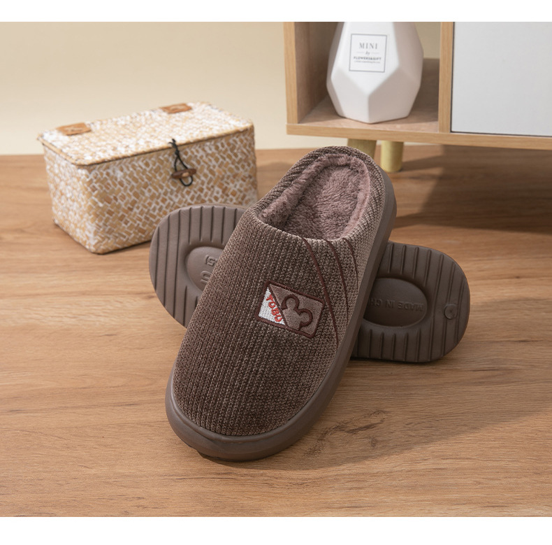Трансграничные новые мужские хлопчатобумажные тапочки осенью и зимой теплые толстые подошвы нескользящие дома