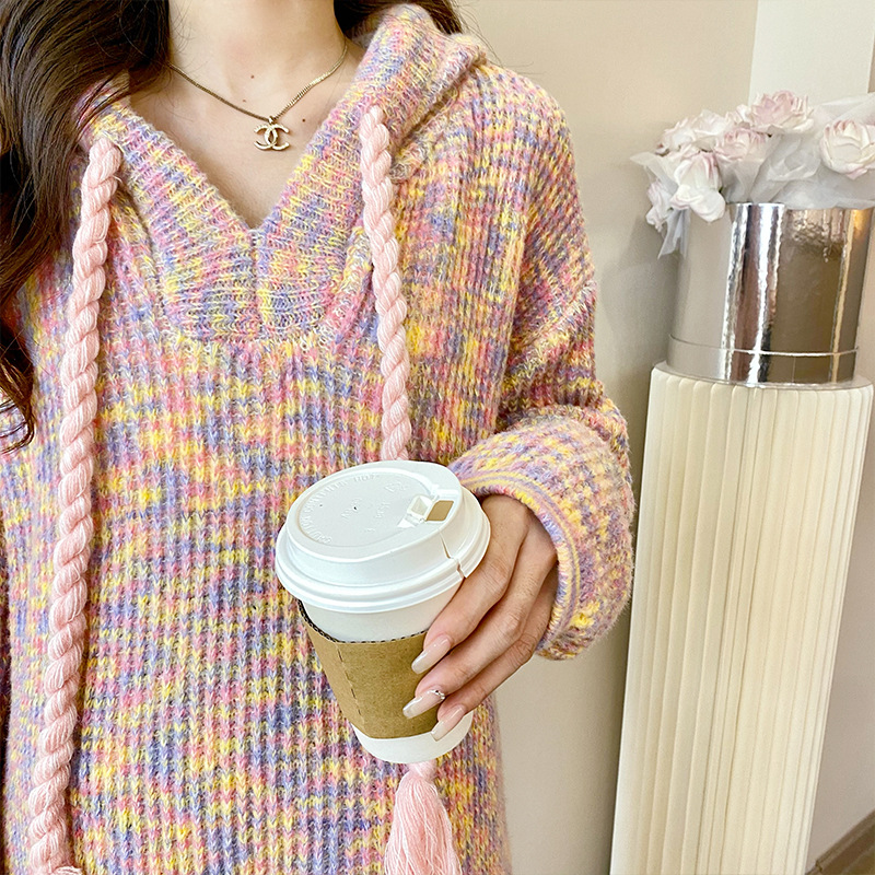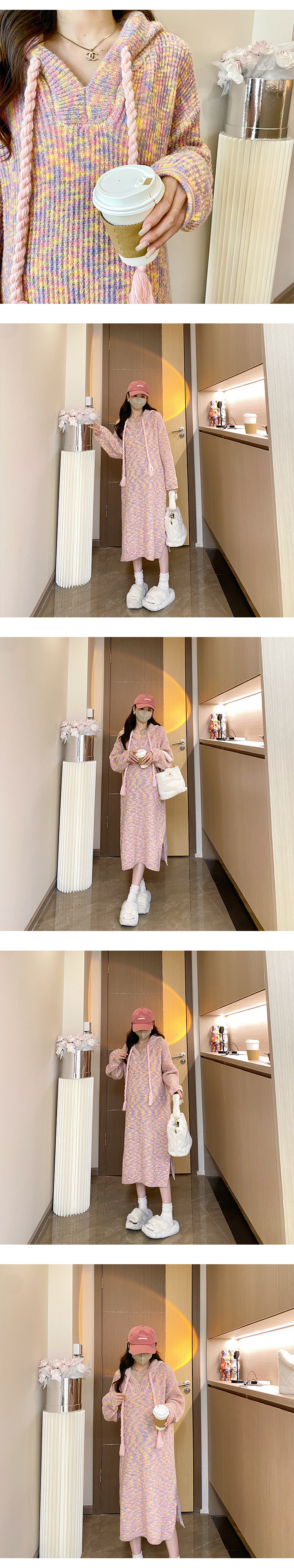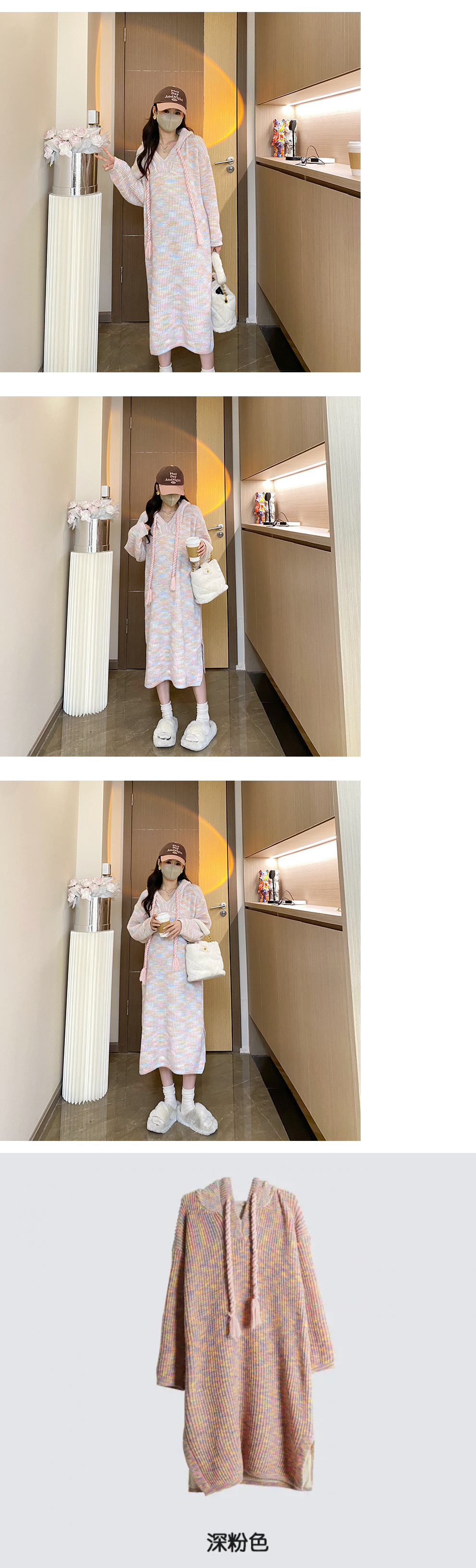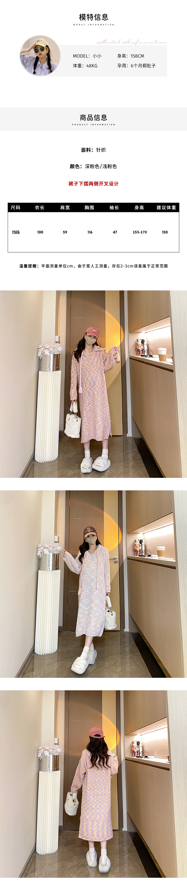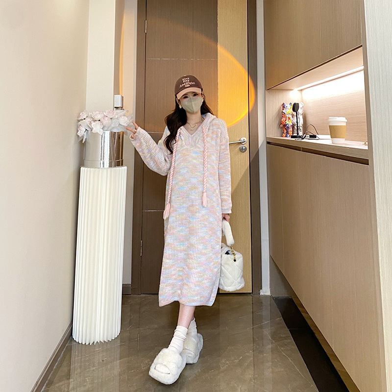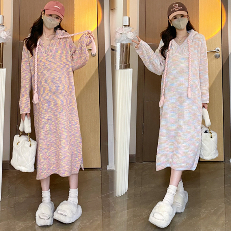 2024 беременная мама окрашена осенью и зимой повседневная капюшона свободная ленивая цветная трикотажная длинная юбка