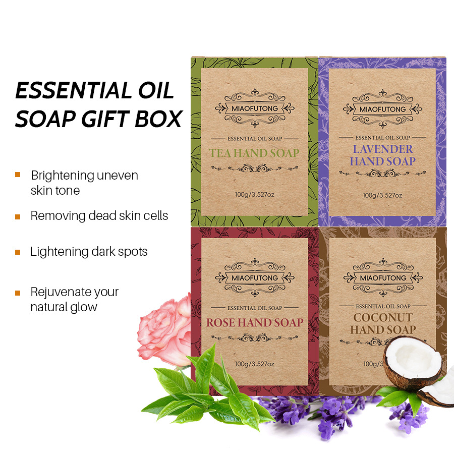 Подарочная коробка 100 г*4 [английская упаковка поставляется за границей]; Гранулированное мыло розового матового цвета 100 г [английская упаковка поставляется за границу]; Лавандовое матовое зернистое мыло 100 г [английская упаковка поставляется за границу]; Матовое зернистое мыло чайного дерева 100 г [английская упаковка поставляется за границу]; Кокосовое матовое зернистое мыло 100 г [английская упаковка поставляется за рубежом]
