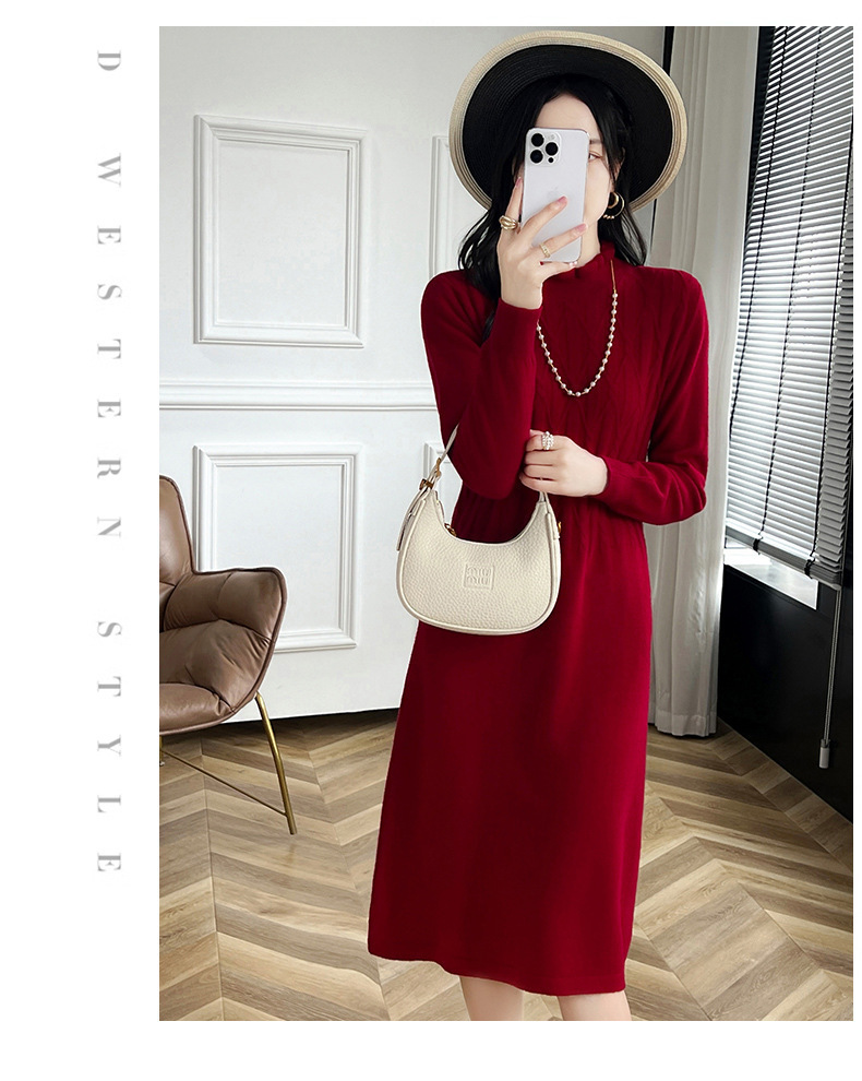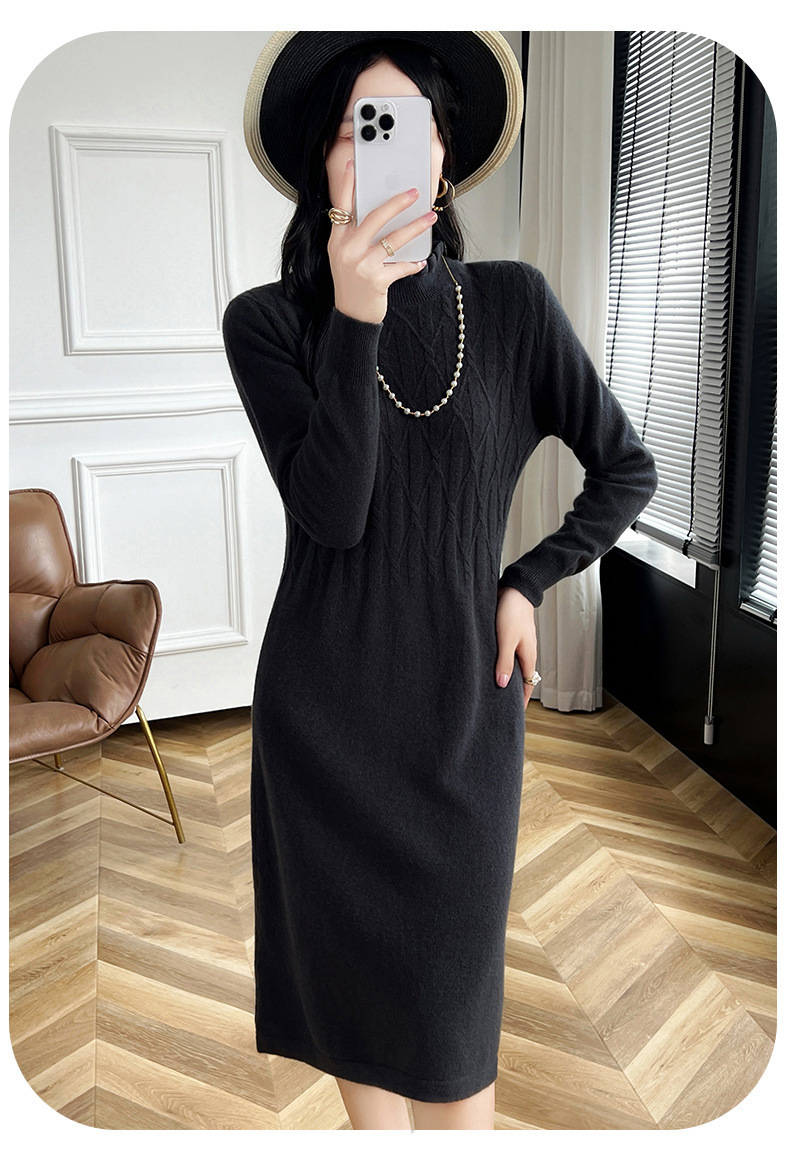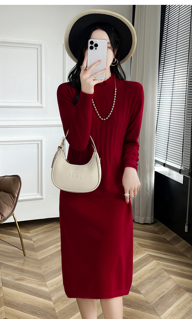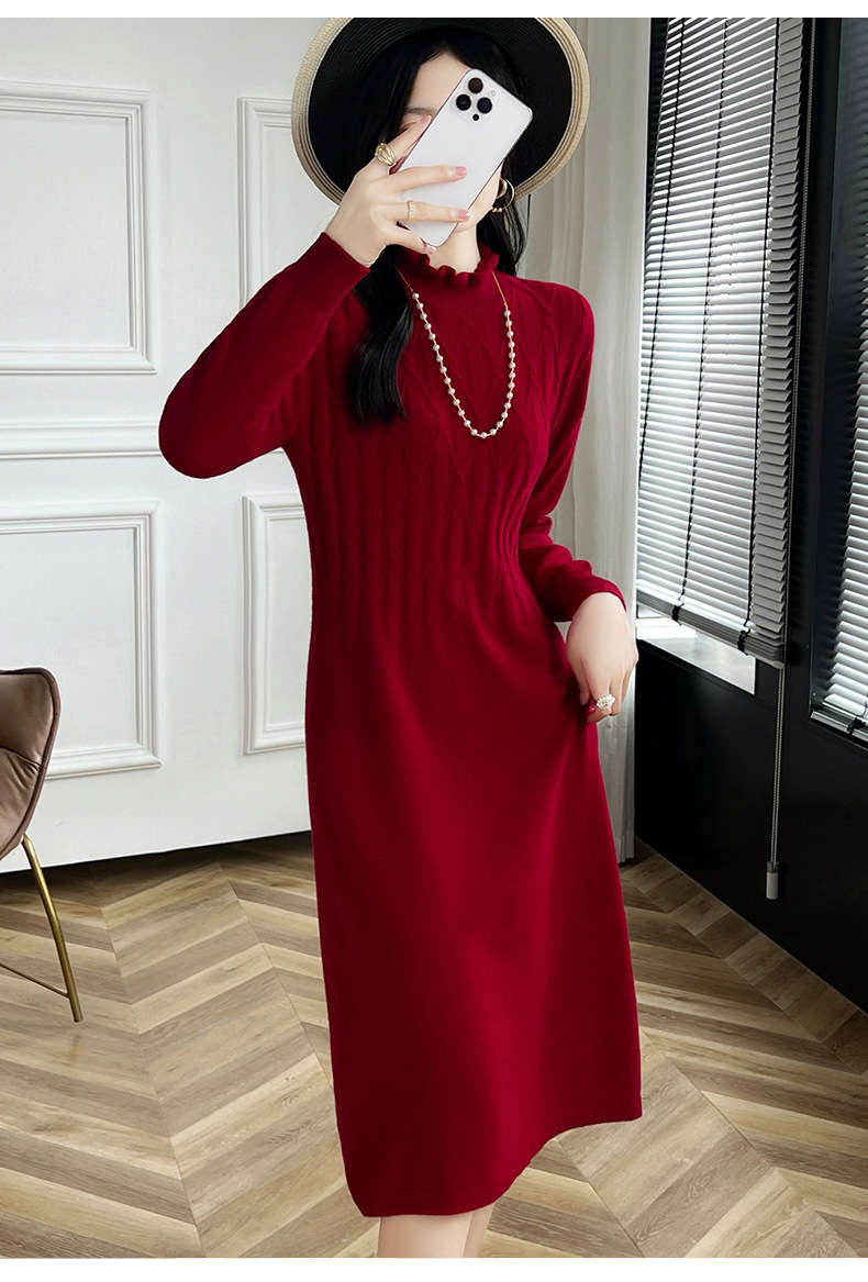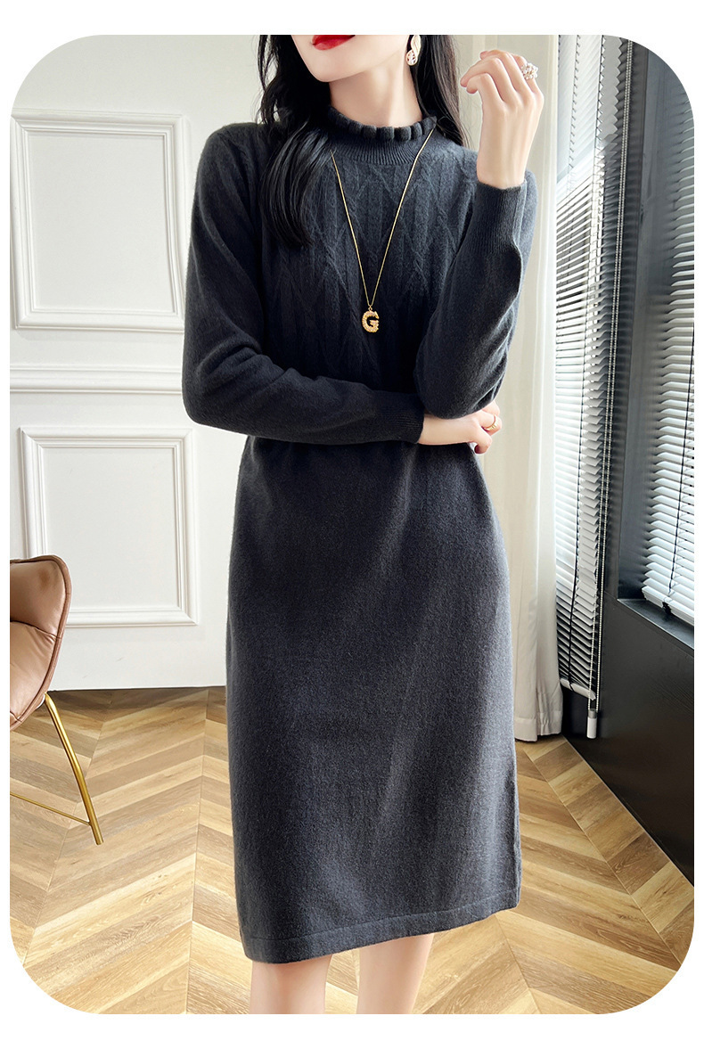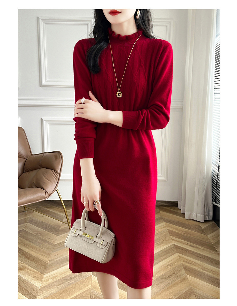 2024 Новое трикотажное платье осенне-зимний темперамент деревянный ушной воротник женский с тонким внутренним пальто